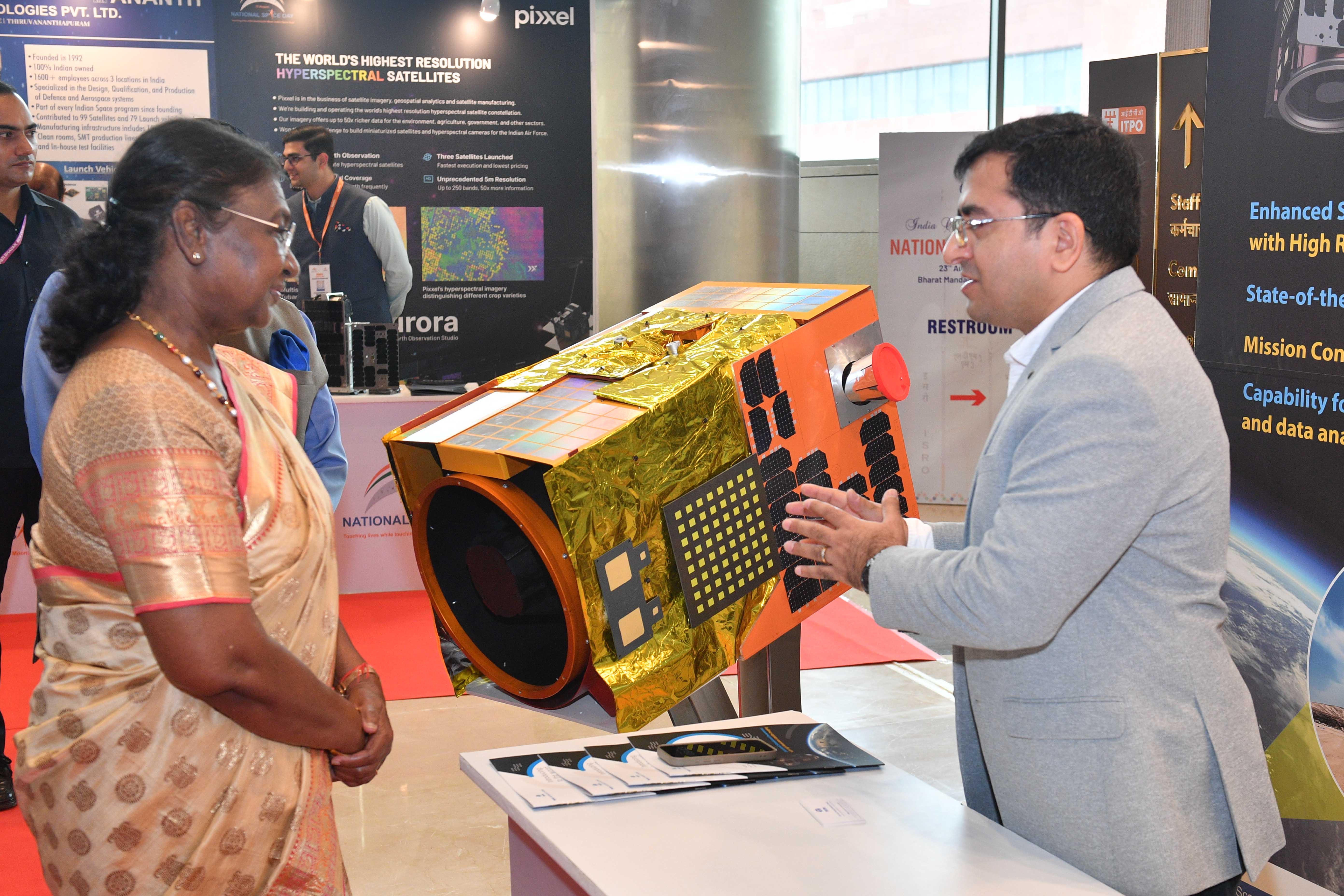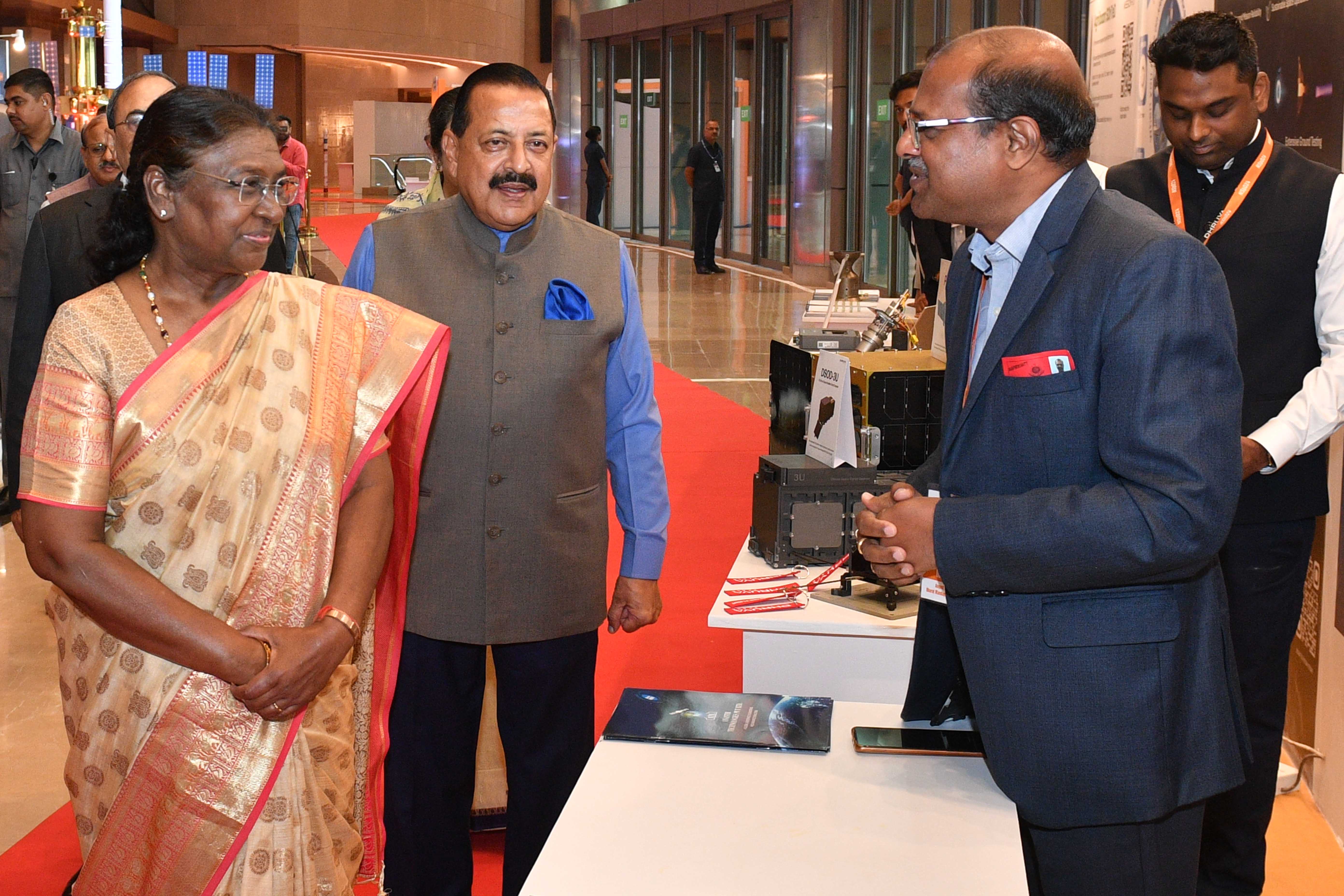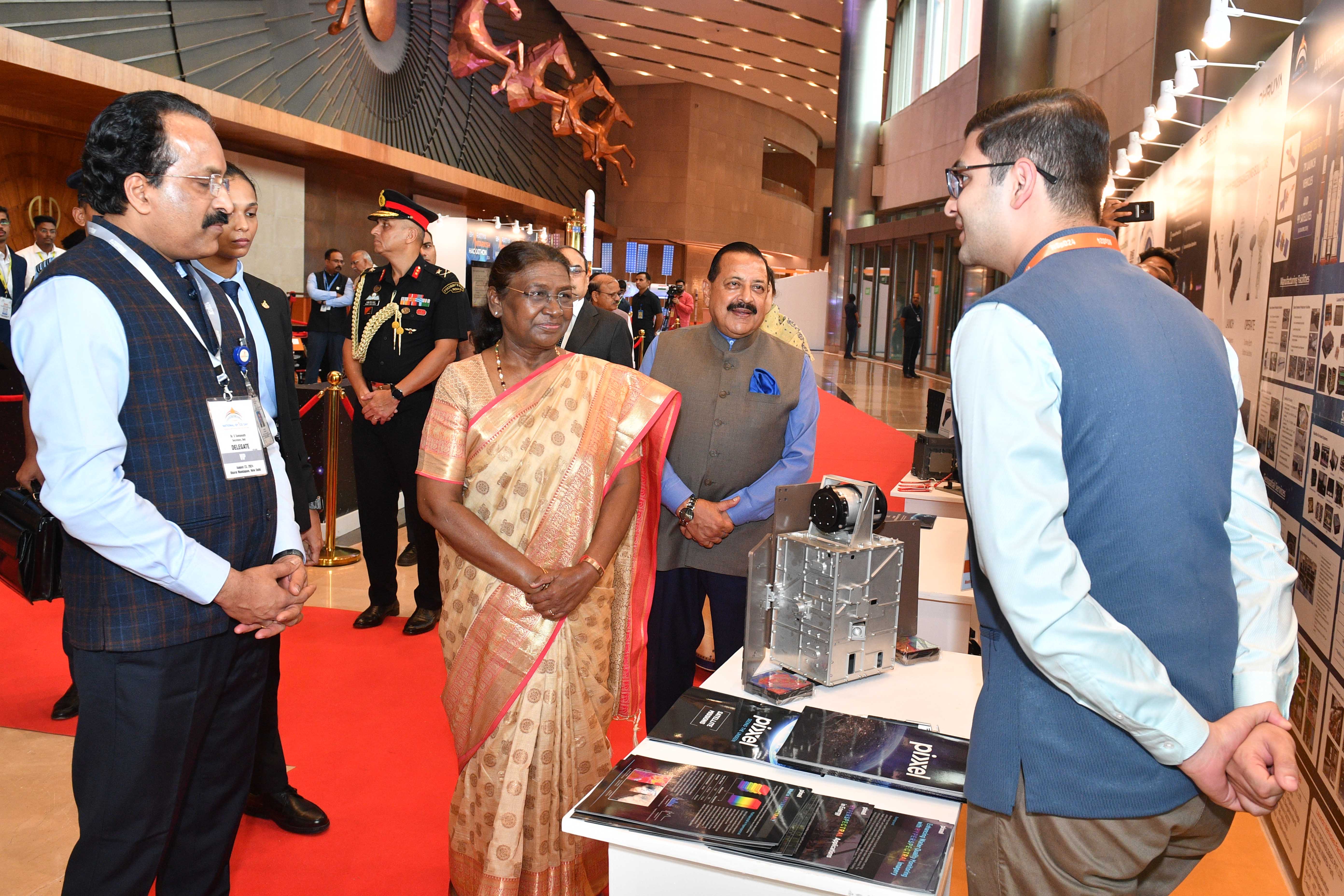 | Caption: | The President of India, Smt. Droupadi Murmu graced the first National Space Day Celebration at Bharat Mandapam in New Delhi on August 23, 2024. |