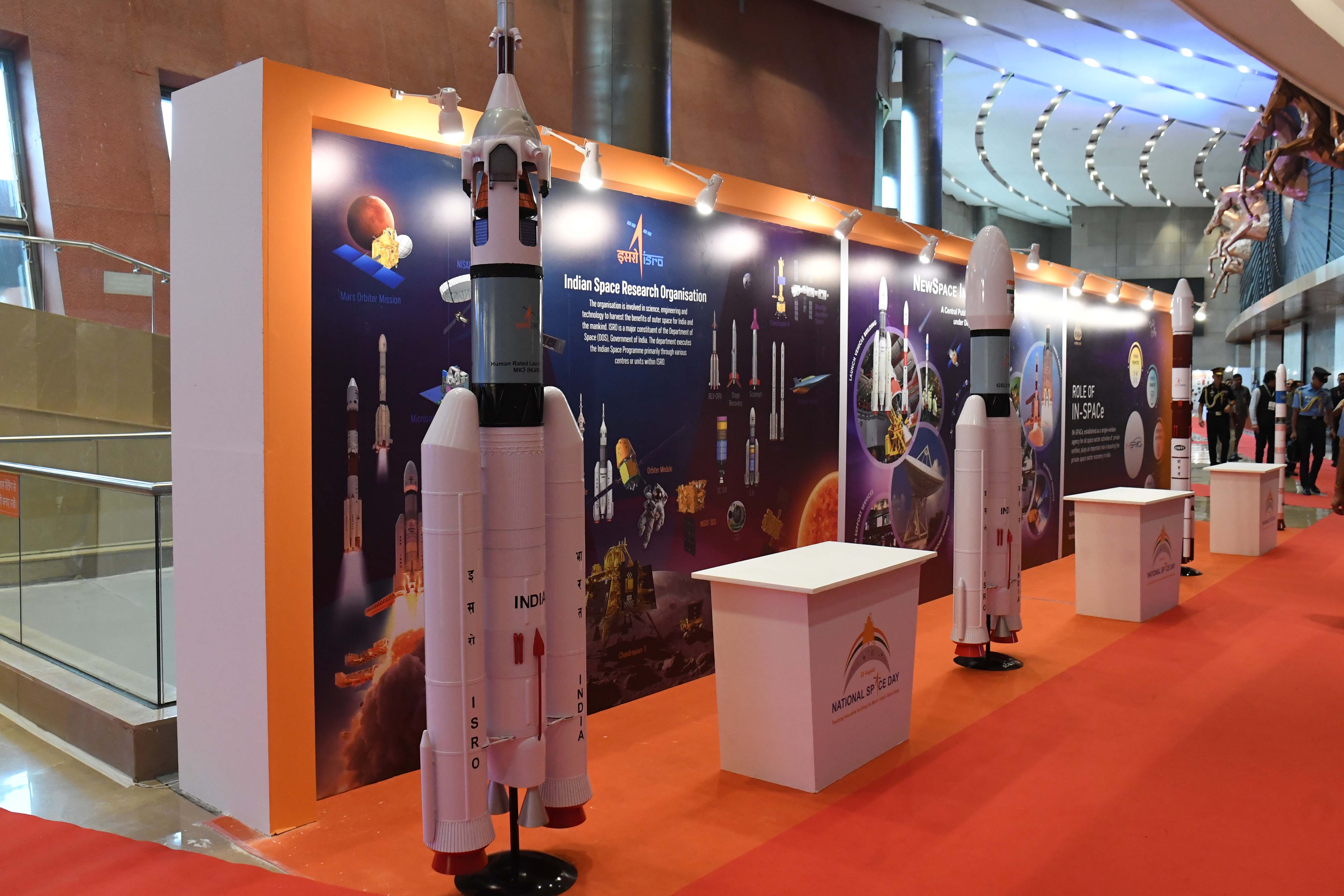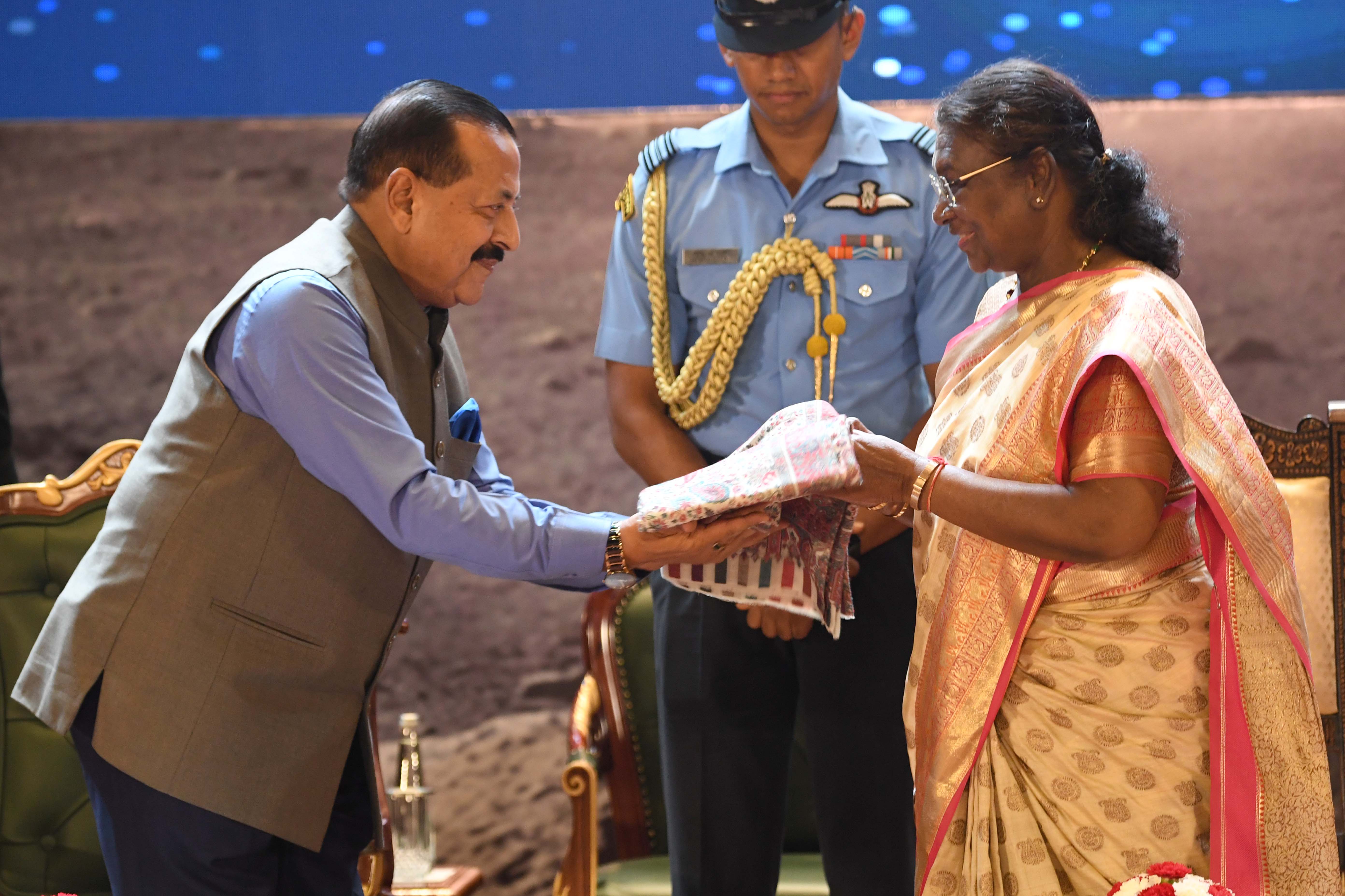 | Caption: | The President of India, Smt. Droupadi Murmu graced the first National Space Day Celebration at Bharat Mandapam in New Delhi on August 23, 2024. |