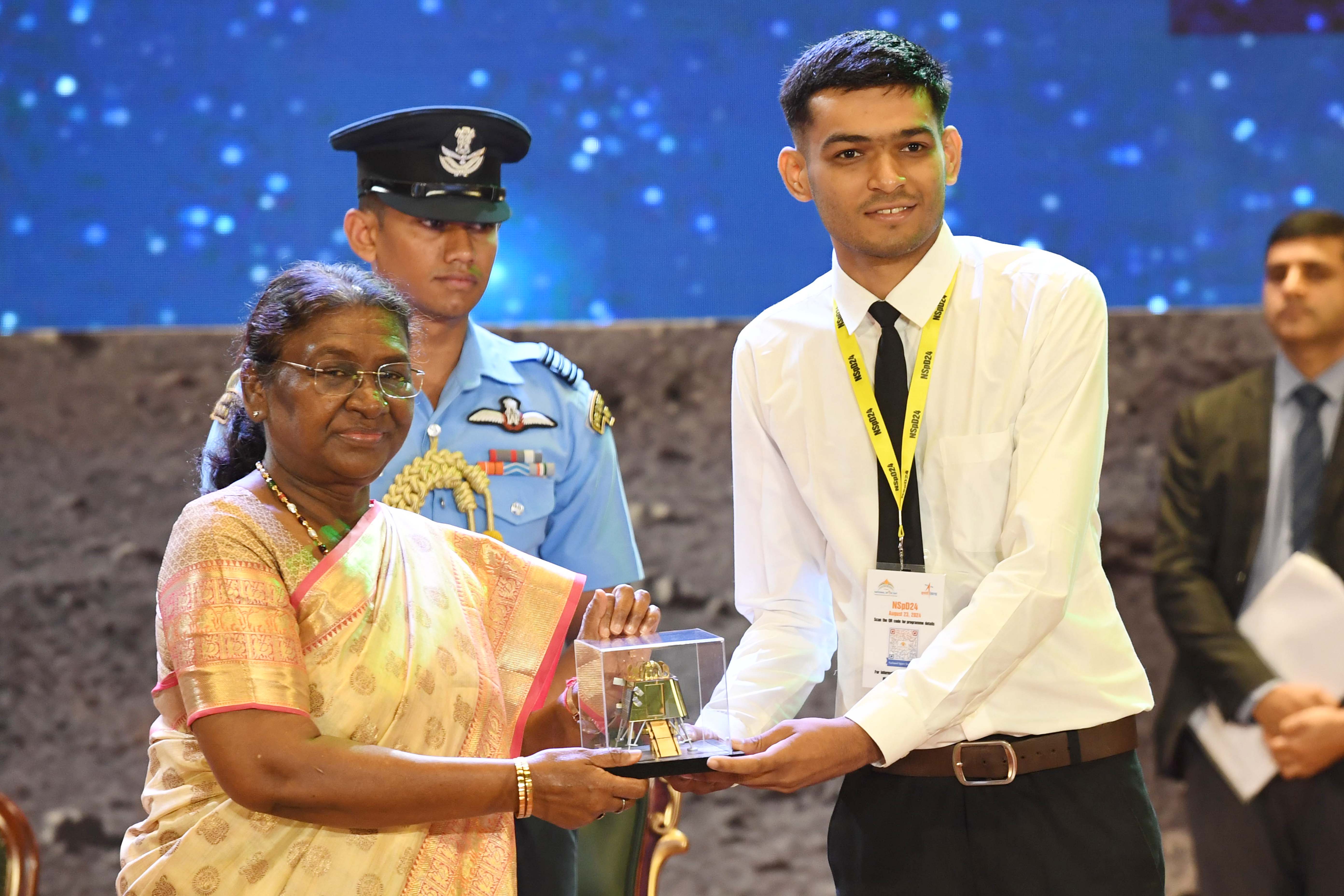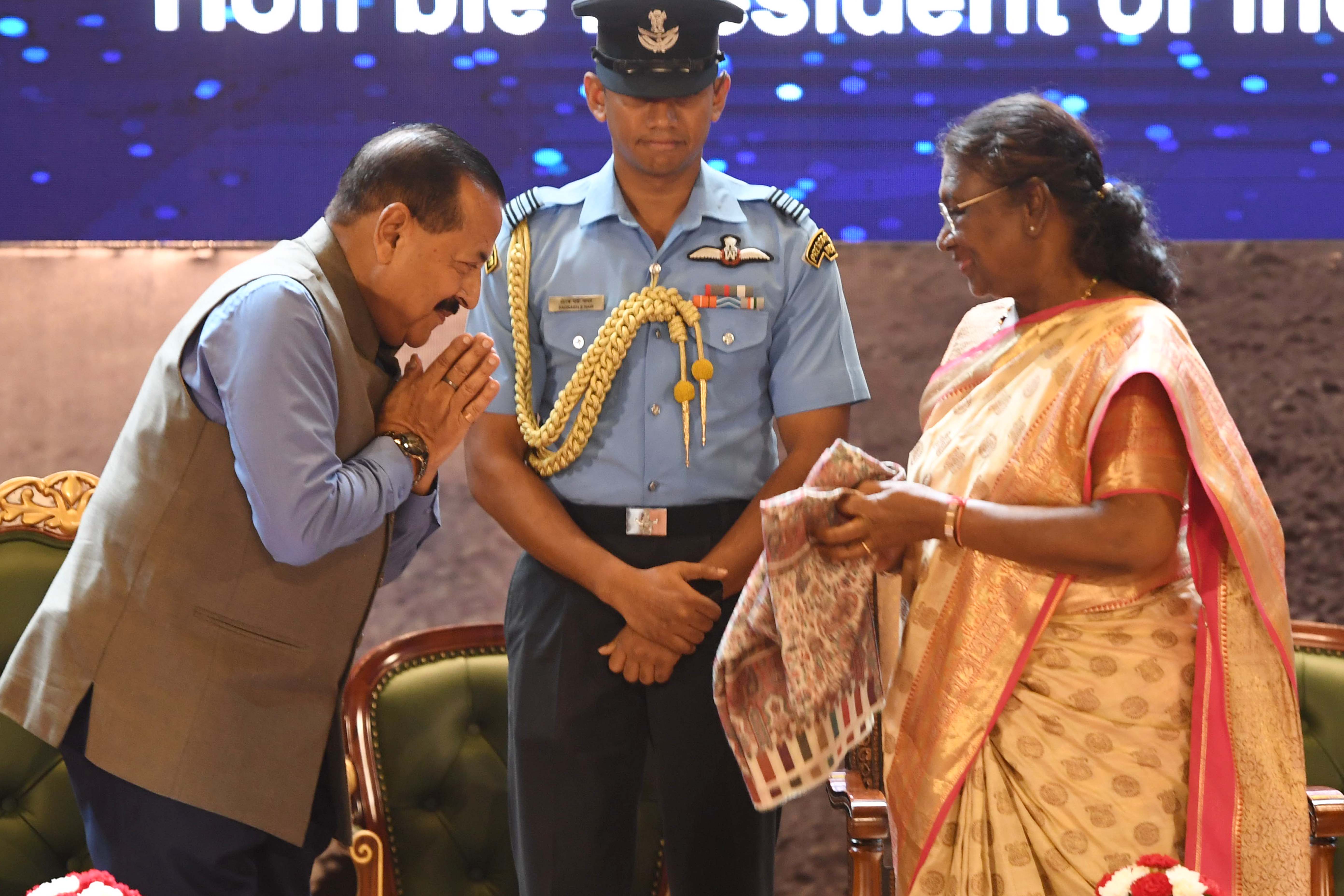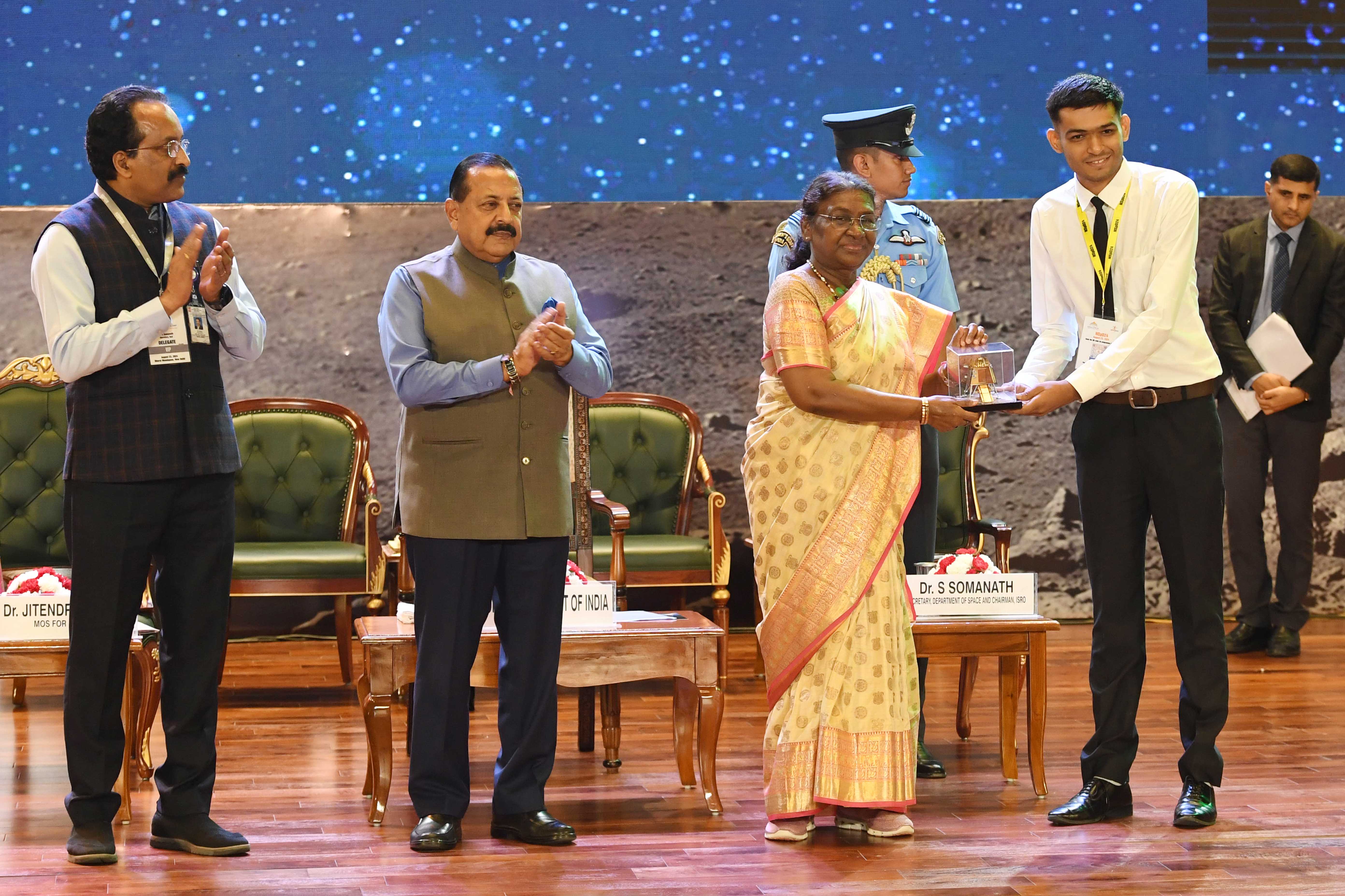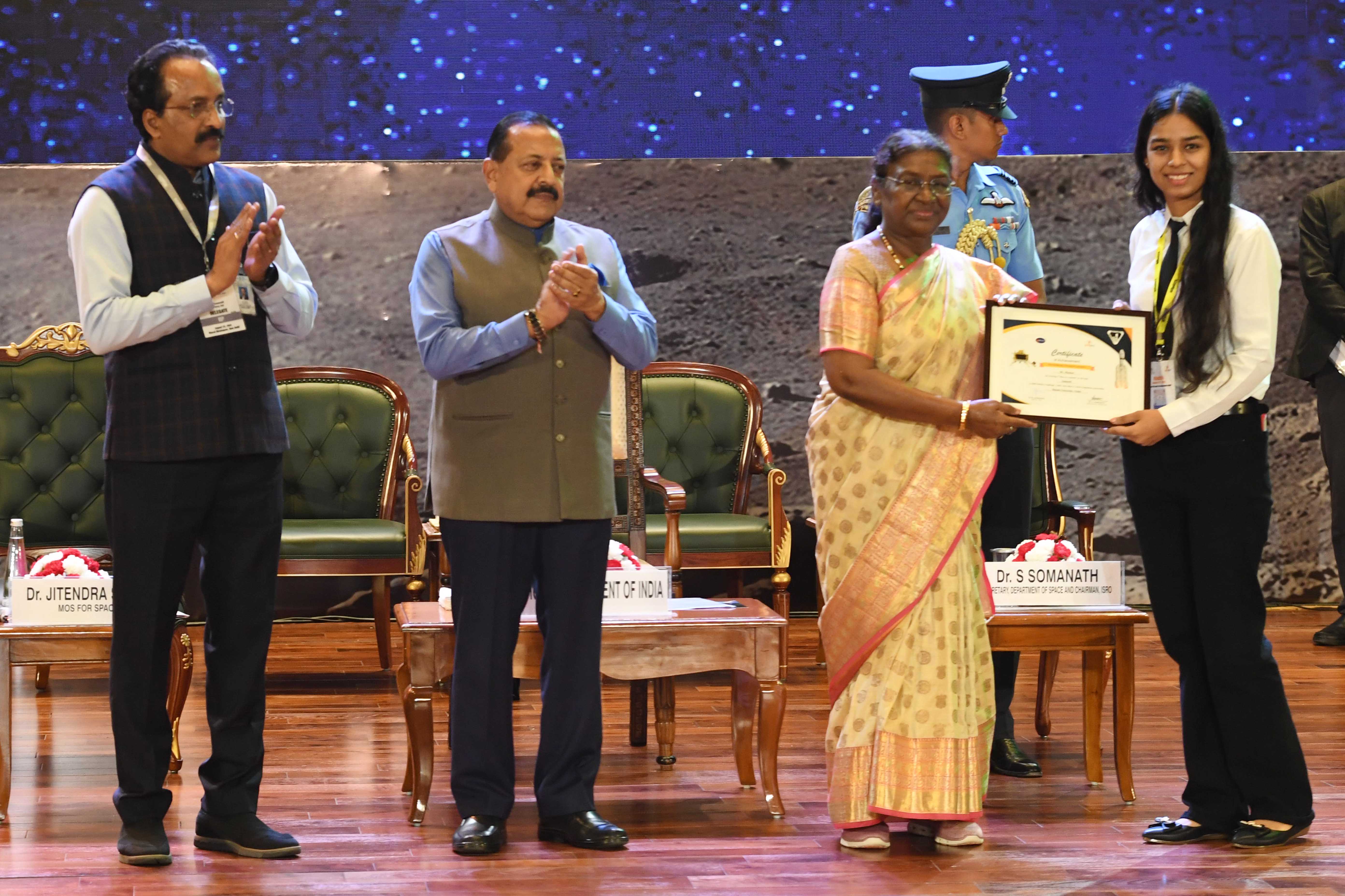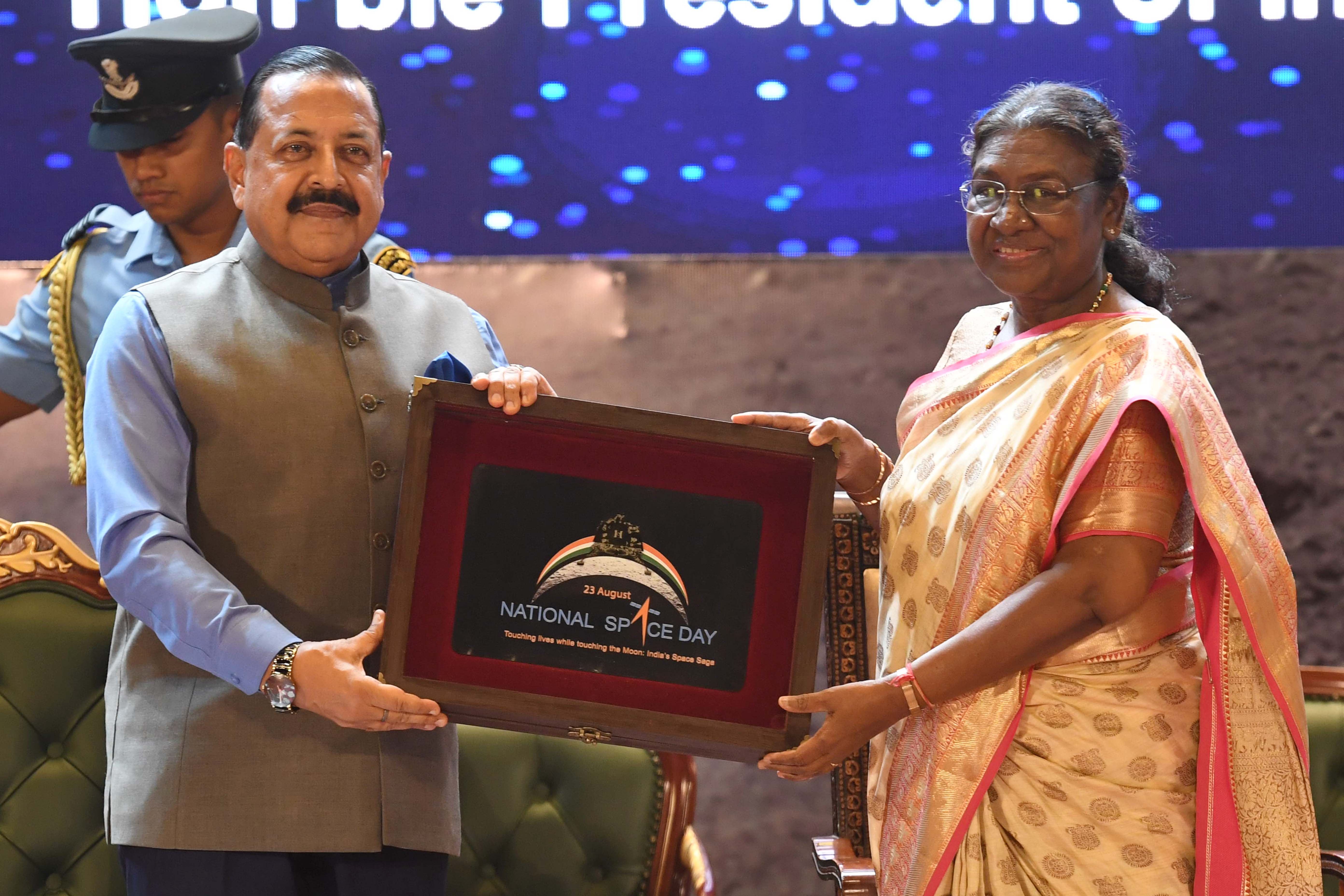 | Caption: | The President of India, Smt. Droupadi Murmu graced the first National Space Day Celebration at Bharat Mandapam in New Delhi on August 23, 2024. |
