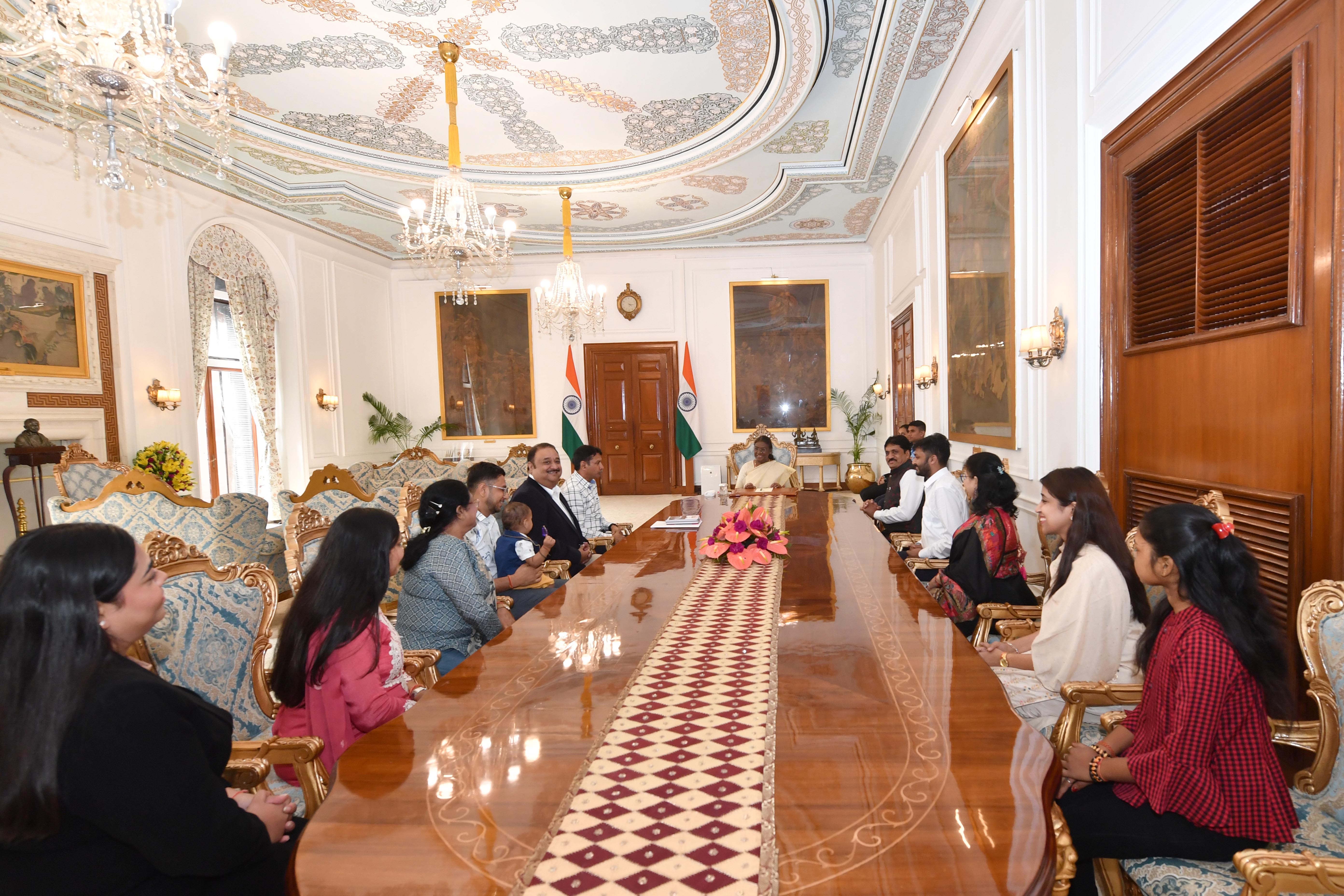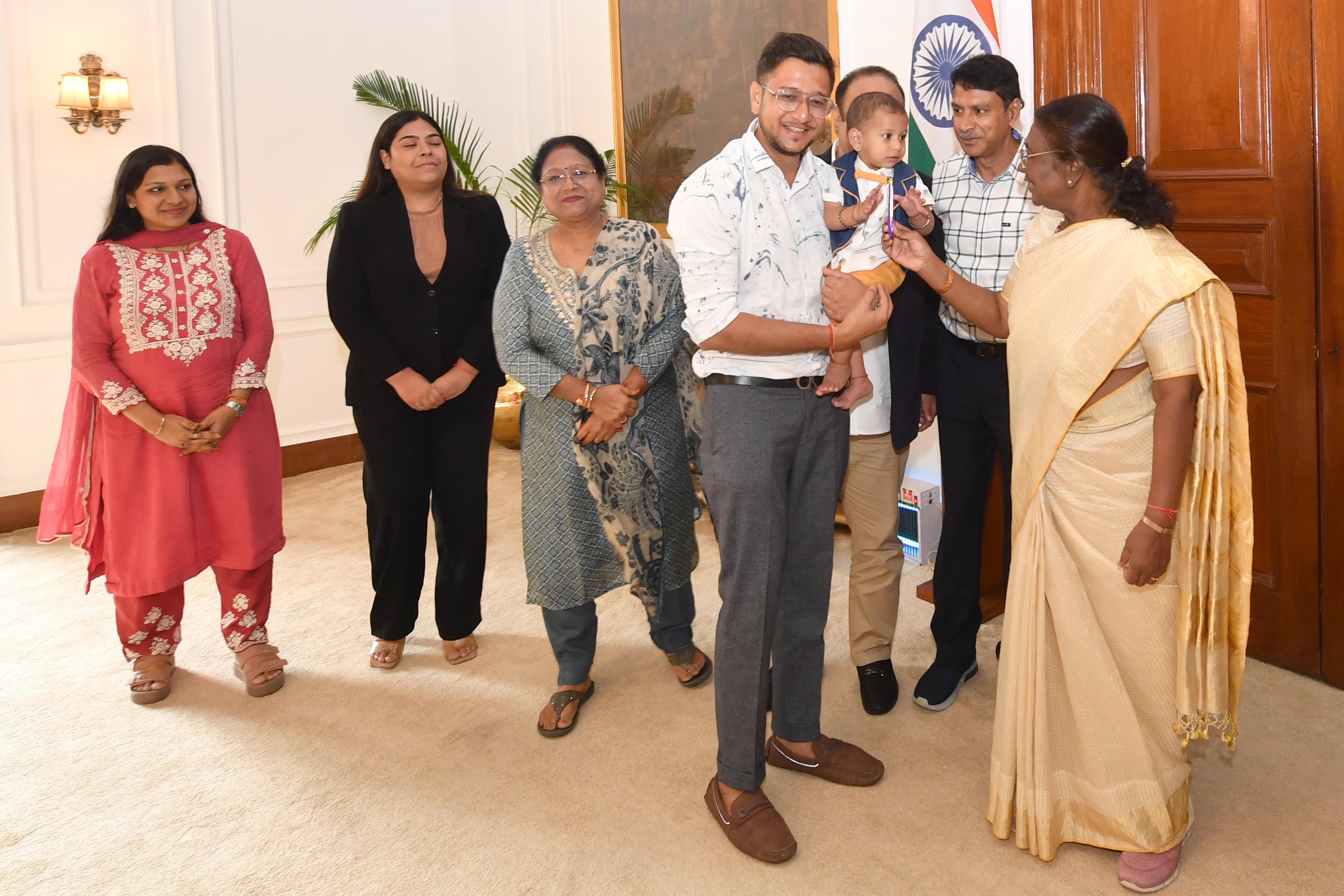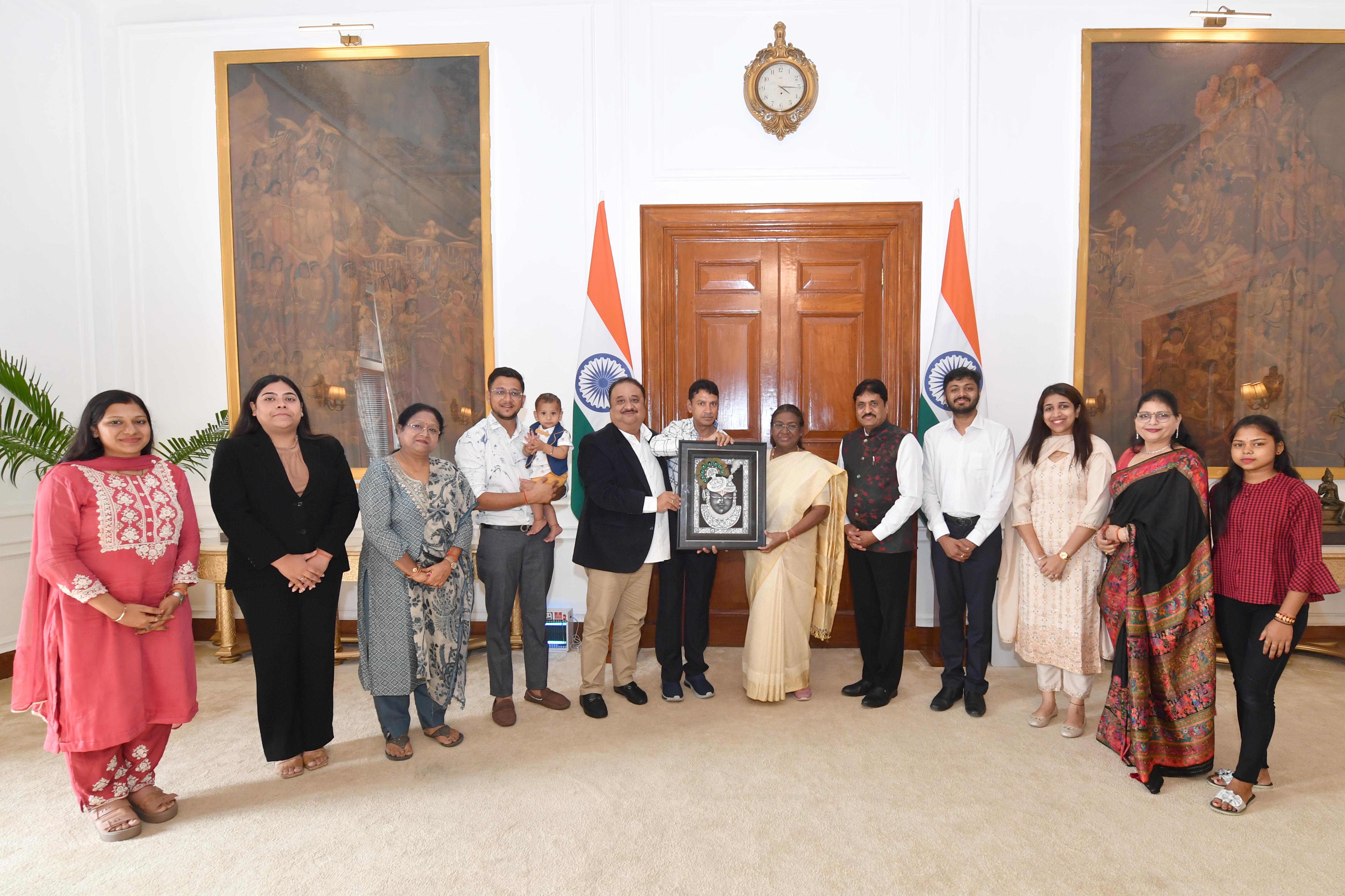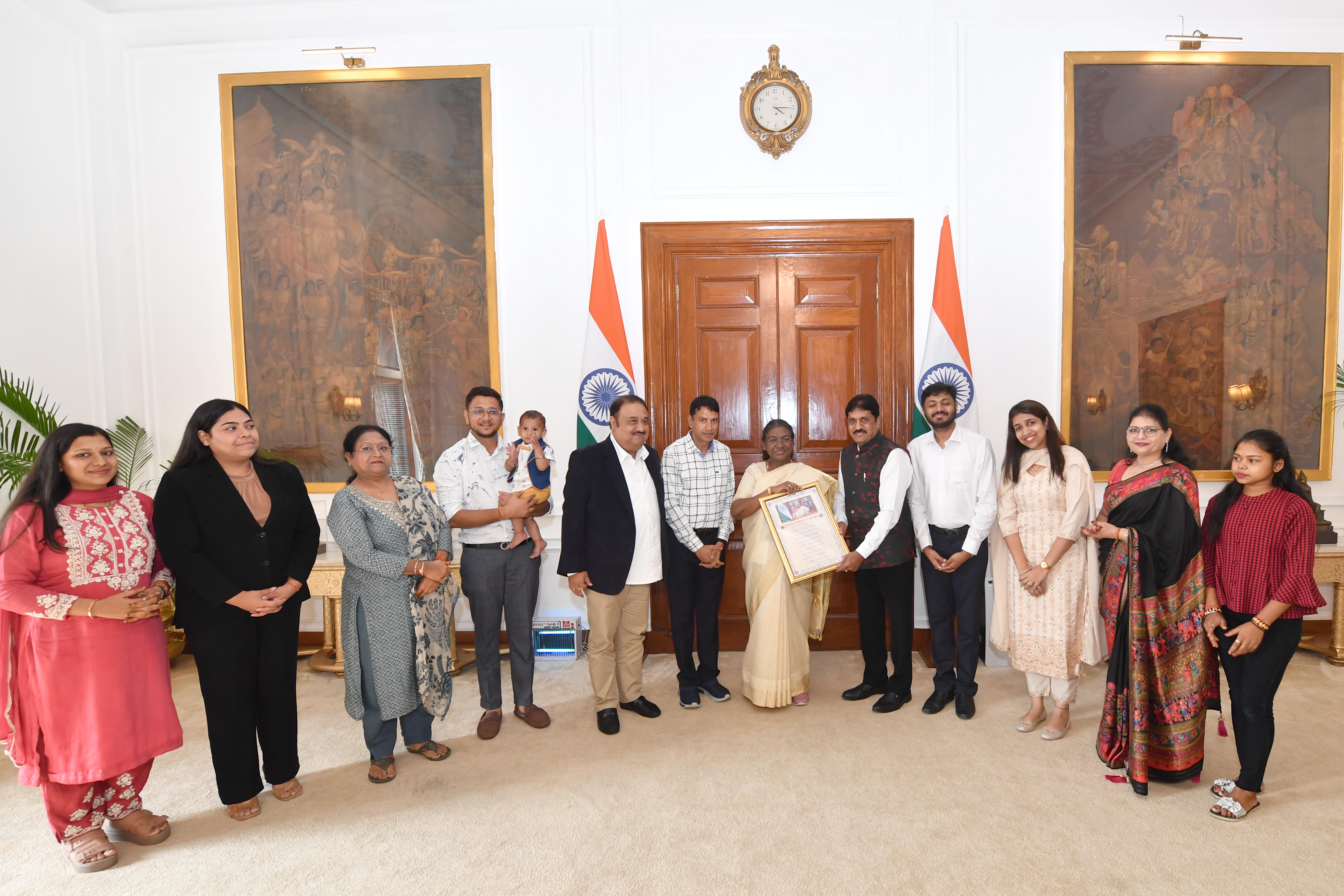 | Caption: | Shri Anup Kumar Chandgotia from Rairangpur along with others meeting with the President of India Smt. Droupadi Murmu at Rashtrapati Bhavan on August 23, 2024. |
