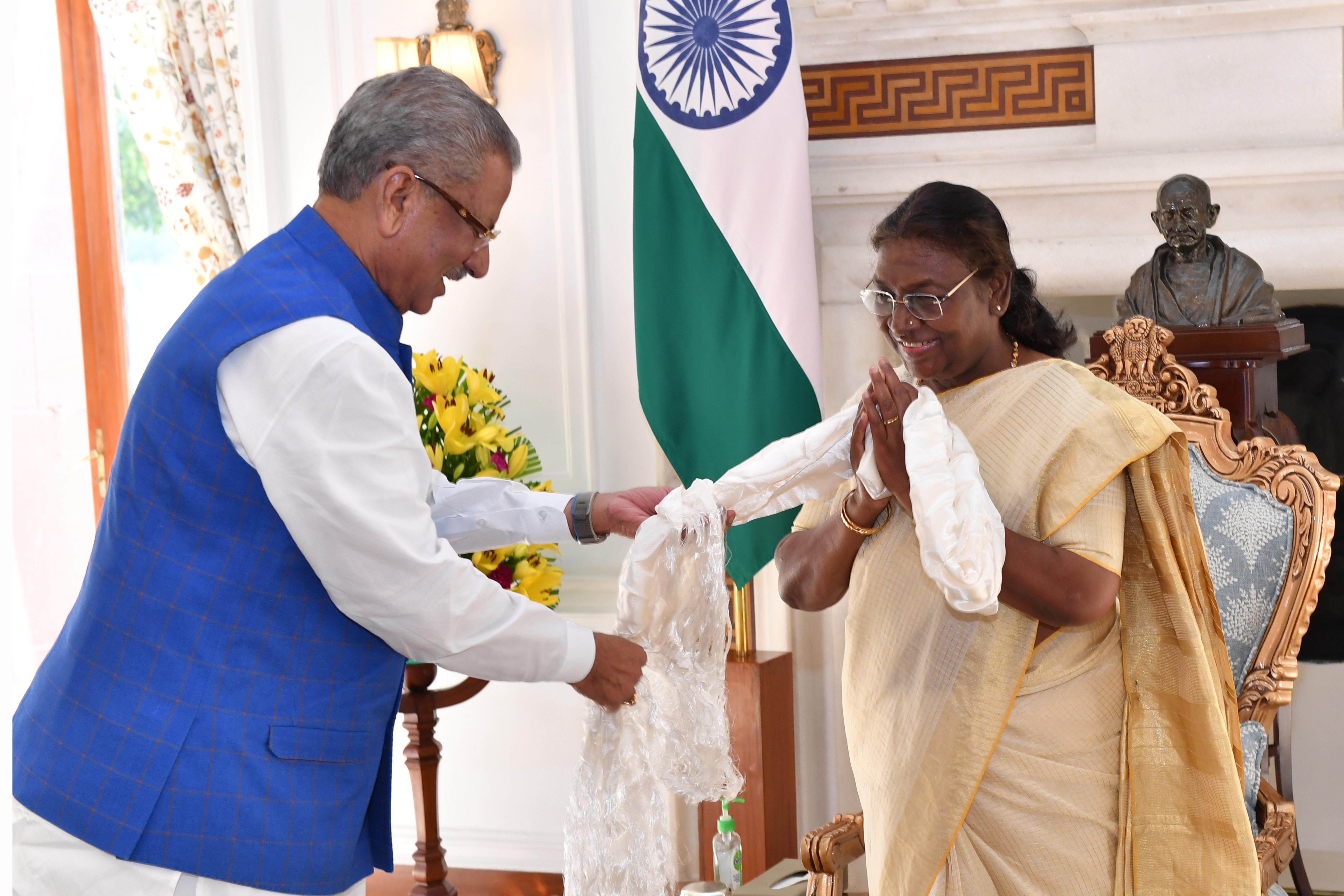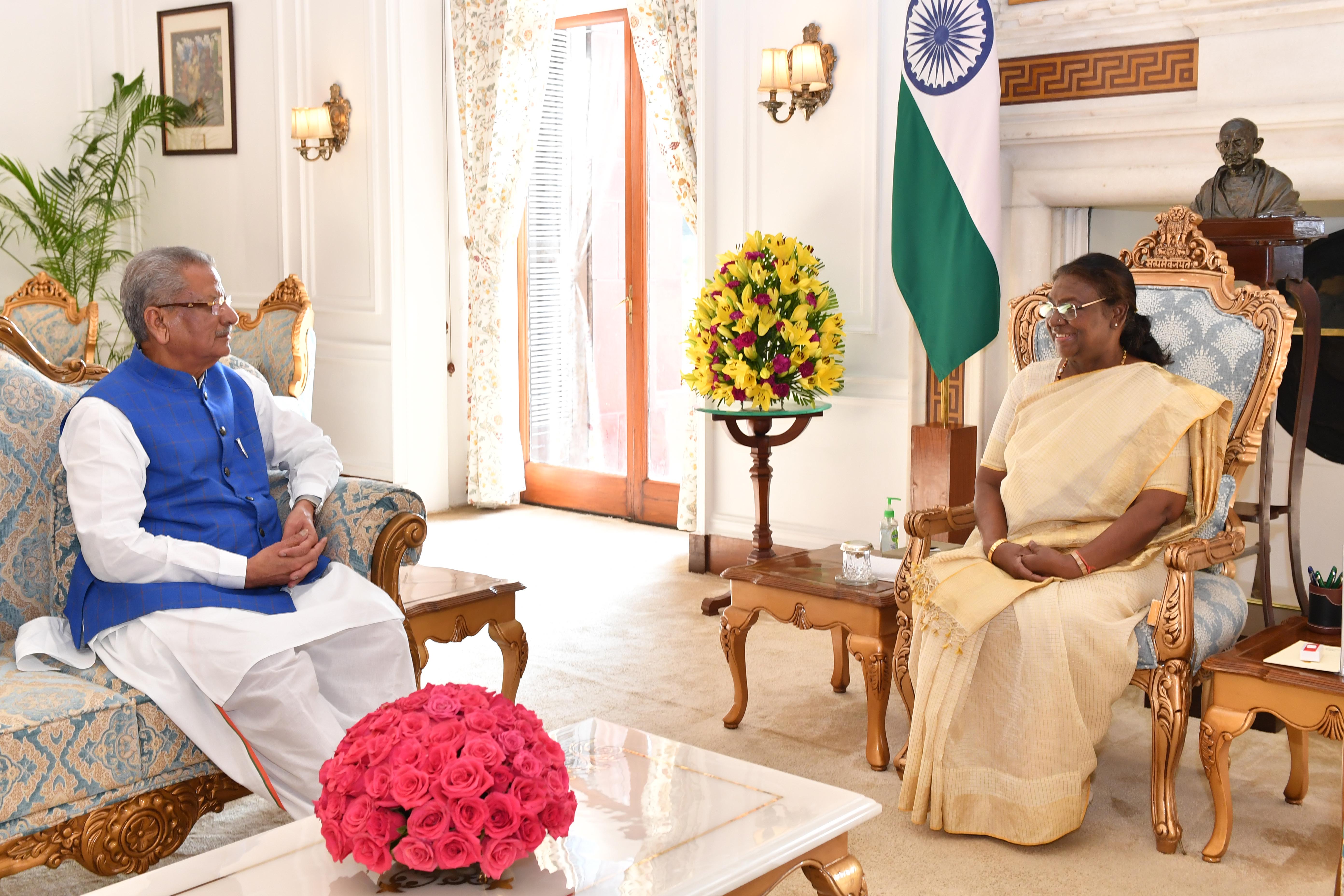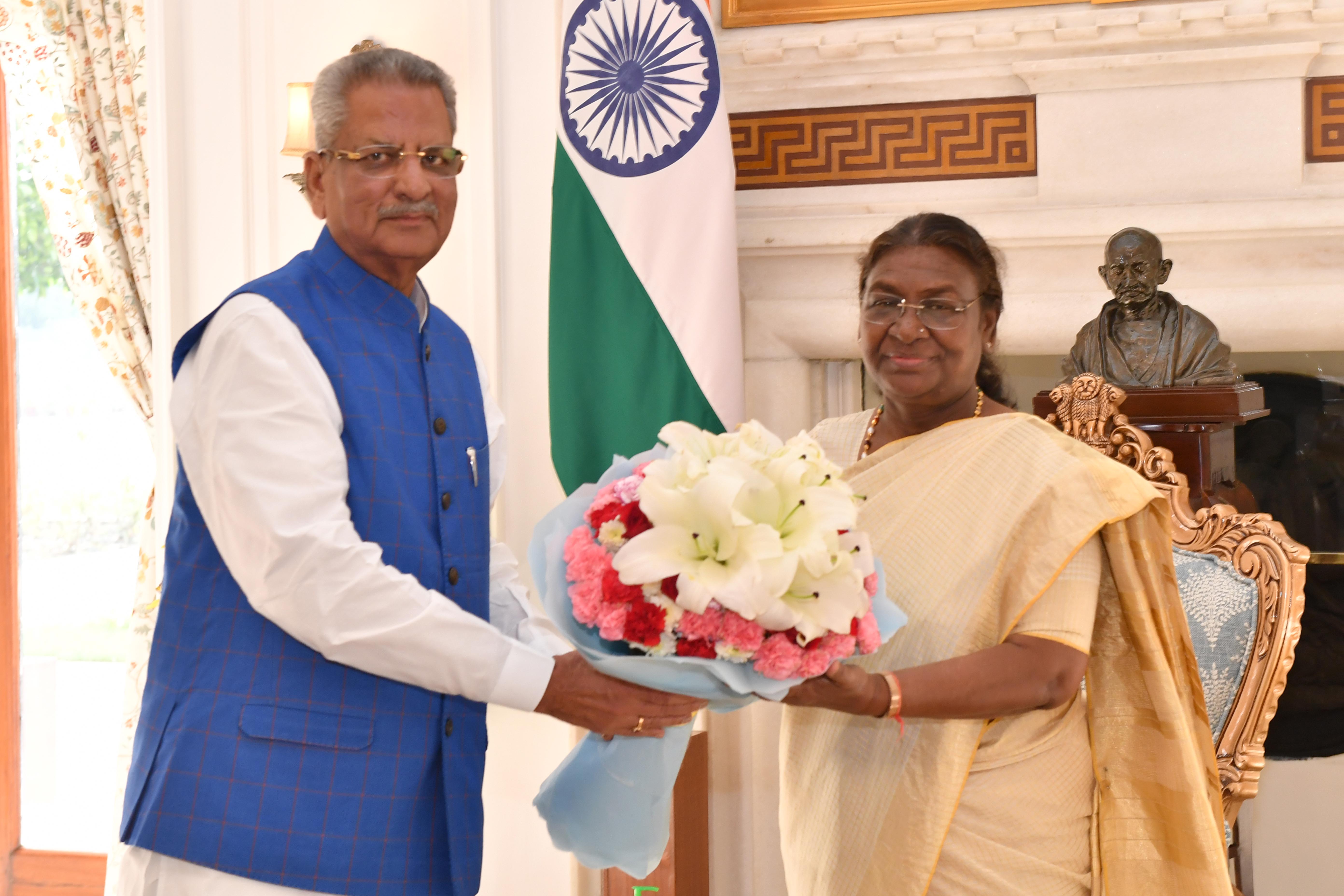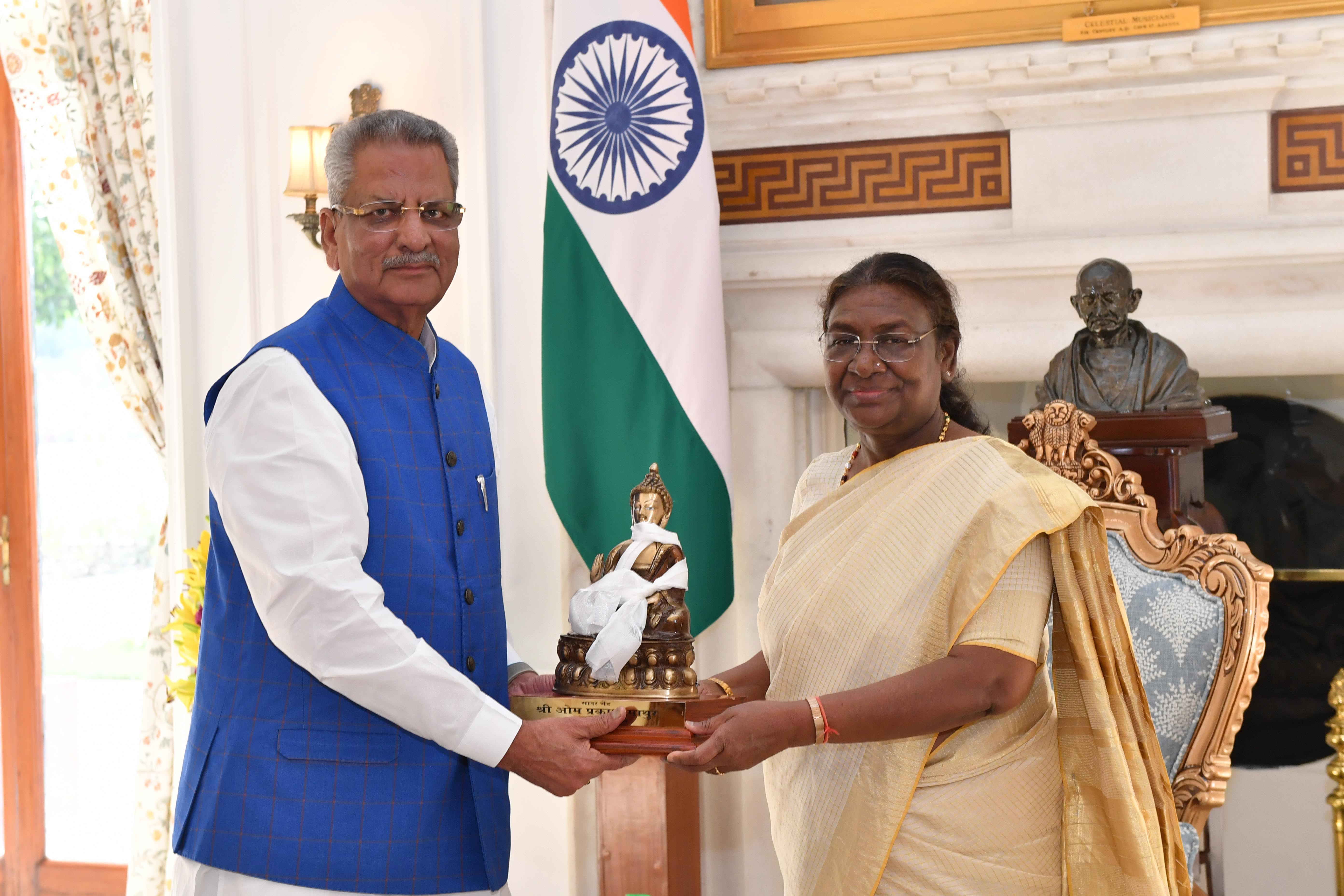 | Caption: | The Governor of Sikkim, Shri Om Prakash Mathur called on the President of India Smt. Droupadi Murmu at Rashtrapati Bhavan on August 23, 2024. |