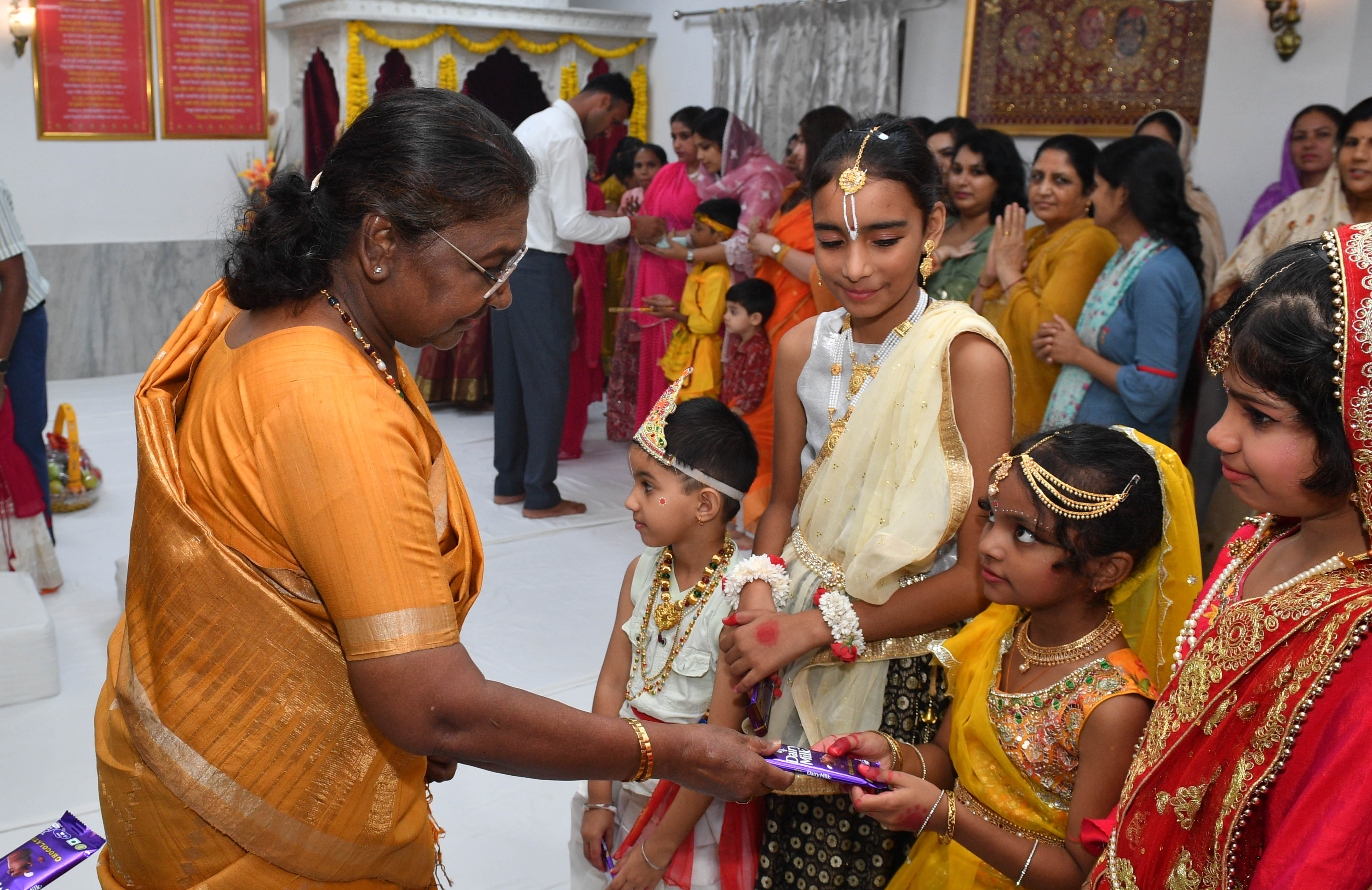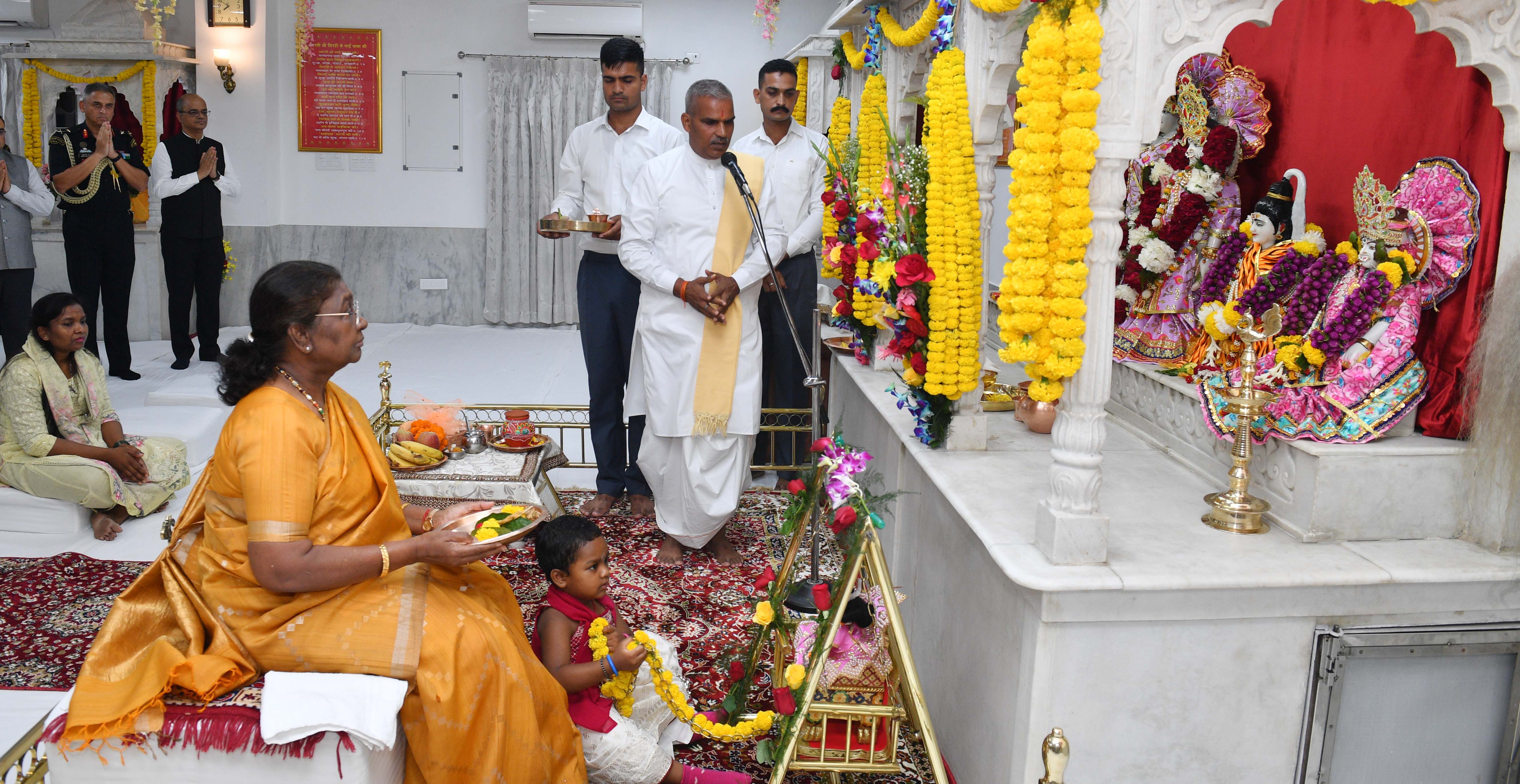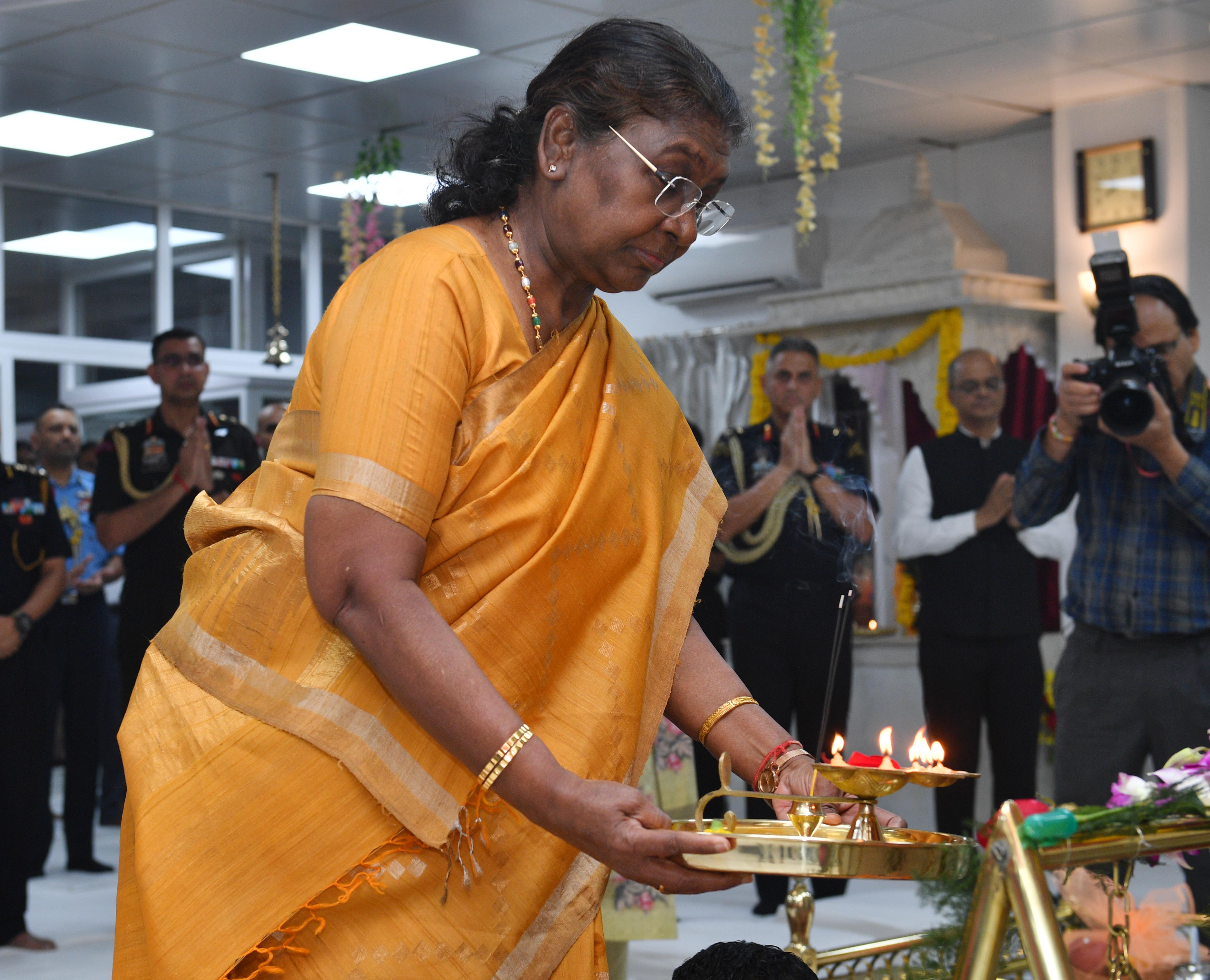 | Caption: | The President of India Smt. Droupadi Murmu visited Regimental Mandir PBG, Sch 'A', President's Estate at Rashtrapati Bhavan on August 26, 2024. |