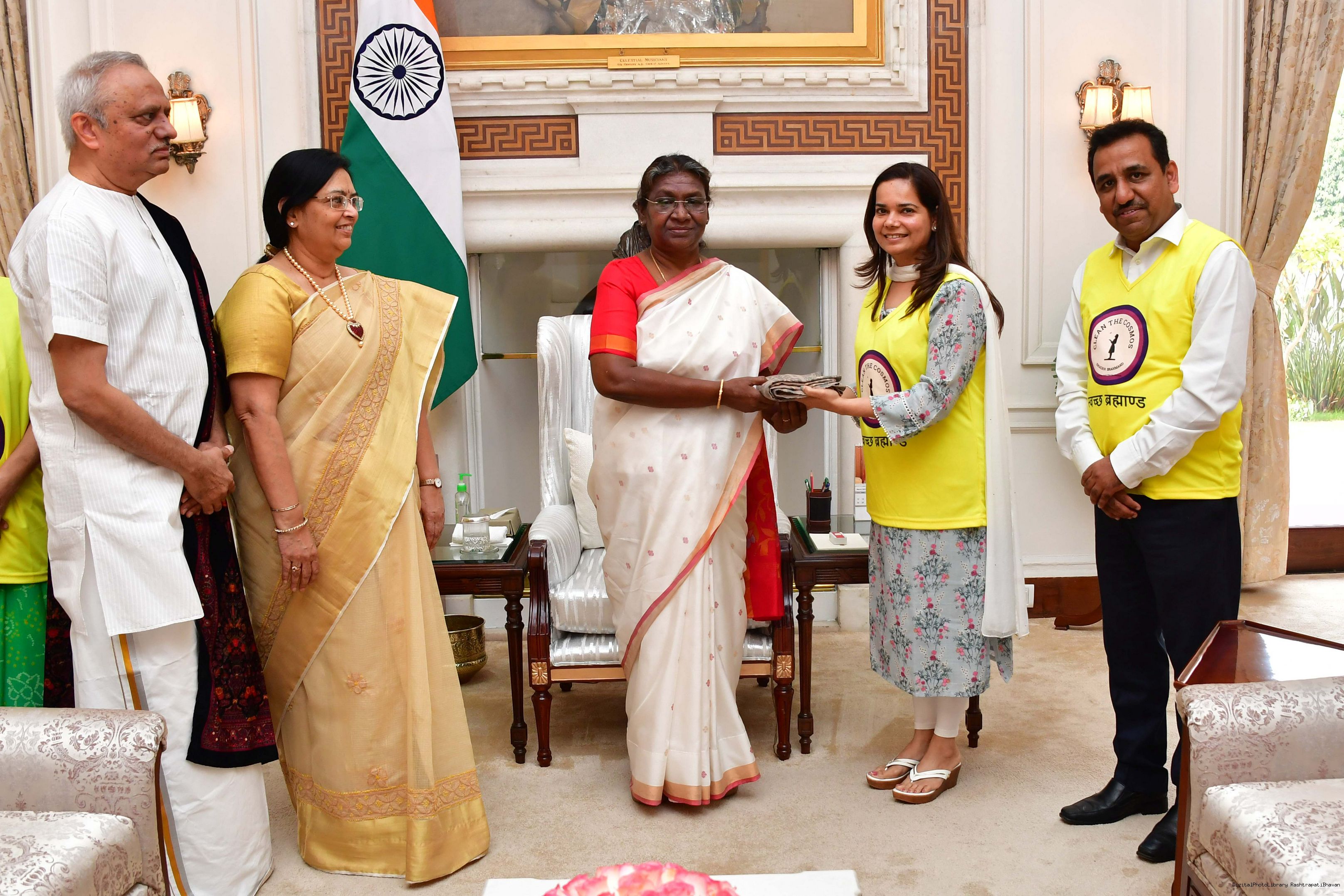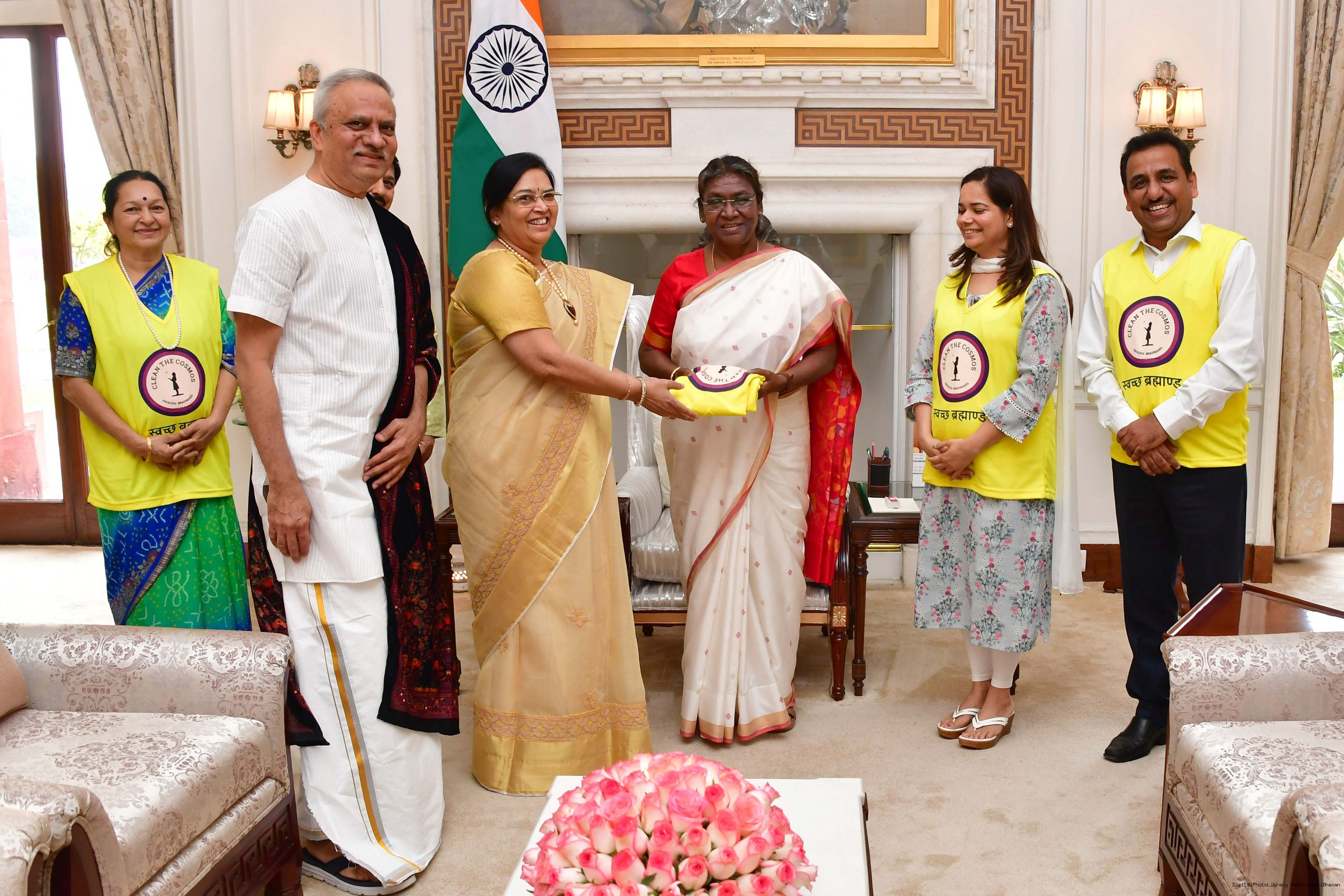 | Caption: | Col Yogesh Arya (Retd.) along with others meeting with the President of India, Smt. Droupadi Murmu, at Rashtrapati Bhavan on March 22, 2023. |