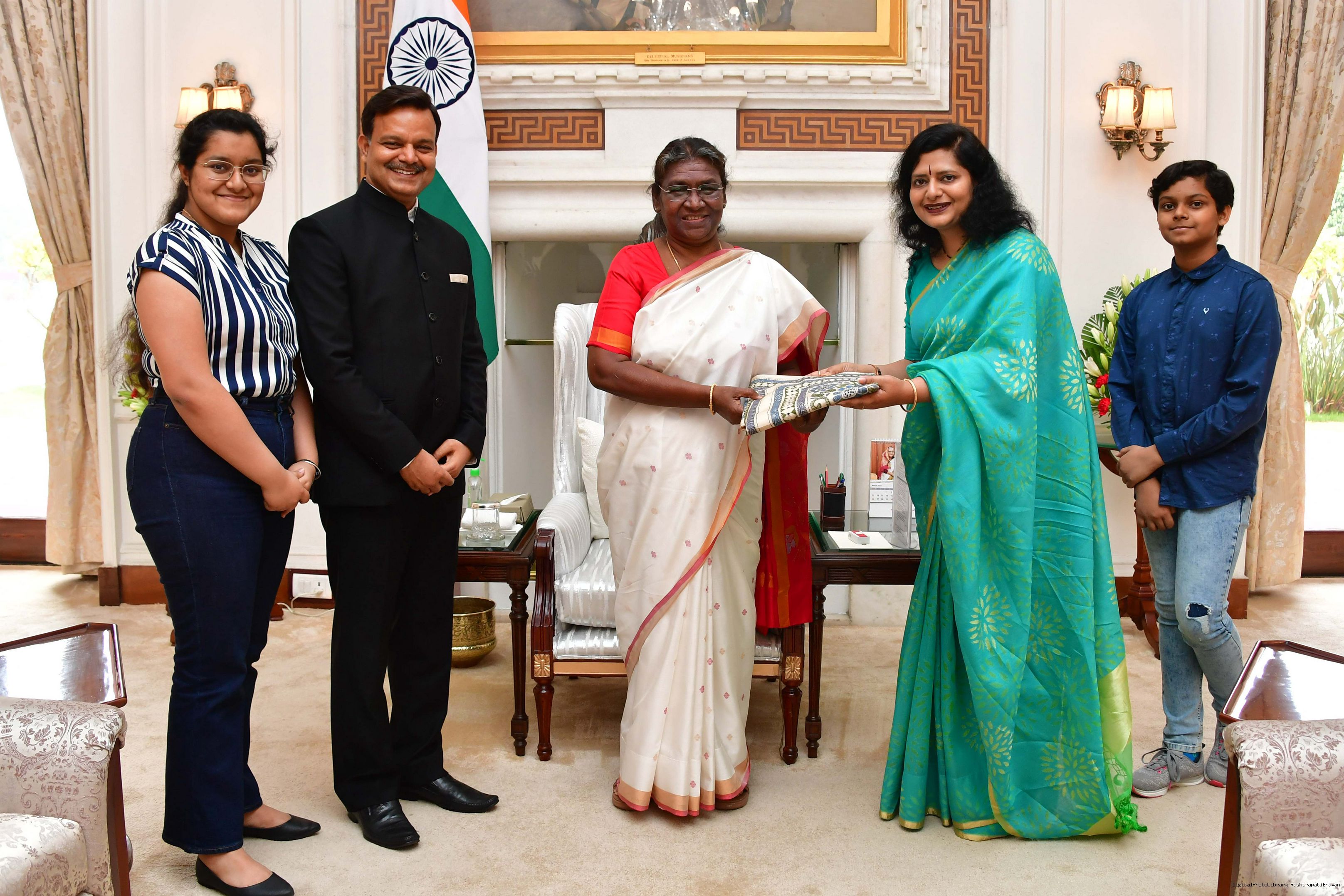 | Caption: | Shri Sunil Kumar Barnwal, Joint Secretary, Ministry of Home Affair along with his family member meeting with the President of India, Smt. Droupadi Murmu, at Rashtrapati Bhavan on March 22, 2023. |