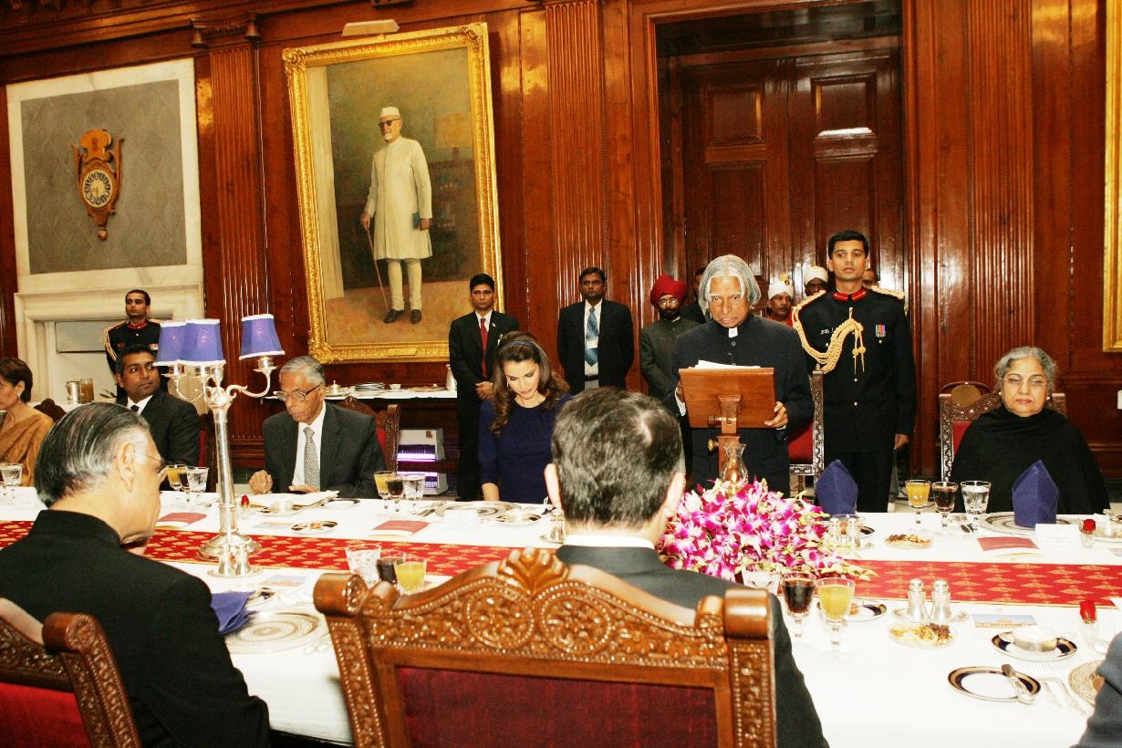 | Caption: | The President of India, Dr A P J Abdul Kalam at the Banquet Hosted in Honour of the King of Jordan, His Majesty King Abdullah II Bin Al-Hussein and Her Majesty Queen Rania Al Abdullah at the Banquet Hall of Rashtrapati Bhavan in New Delhi on Dec 01, 2006 |