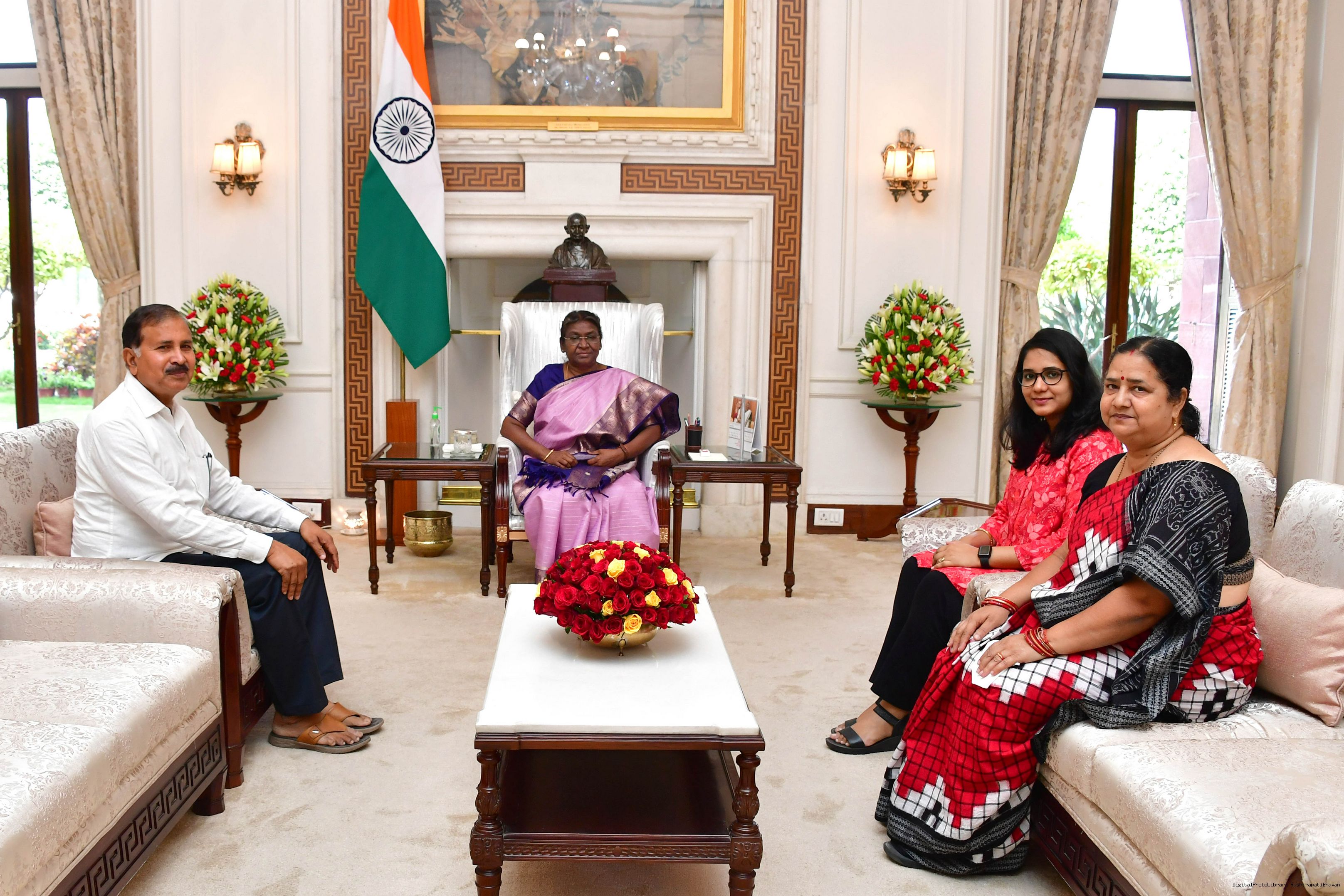 | Caption: | Shri Raj Kishor Acharya along with his family members meeting with the President of India, Smt. Droupadi Murmu, at Rashtrapati Bhavan on March 23, 2023 |