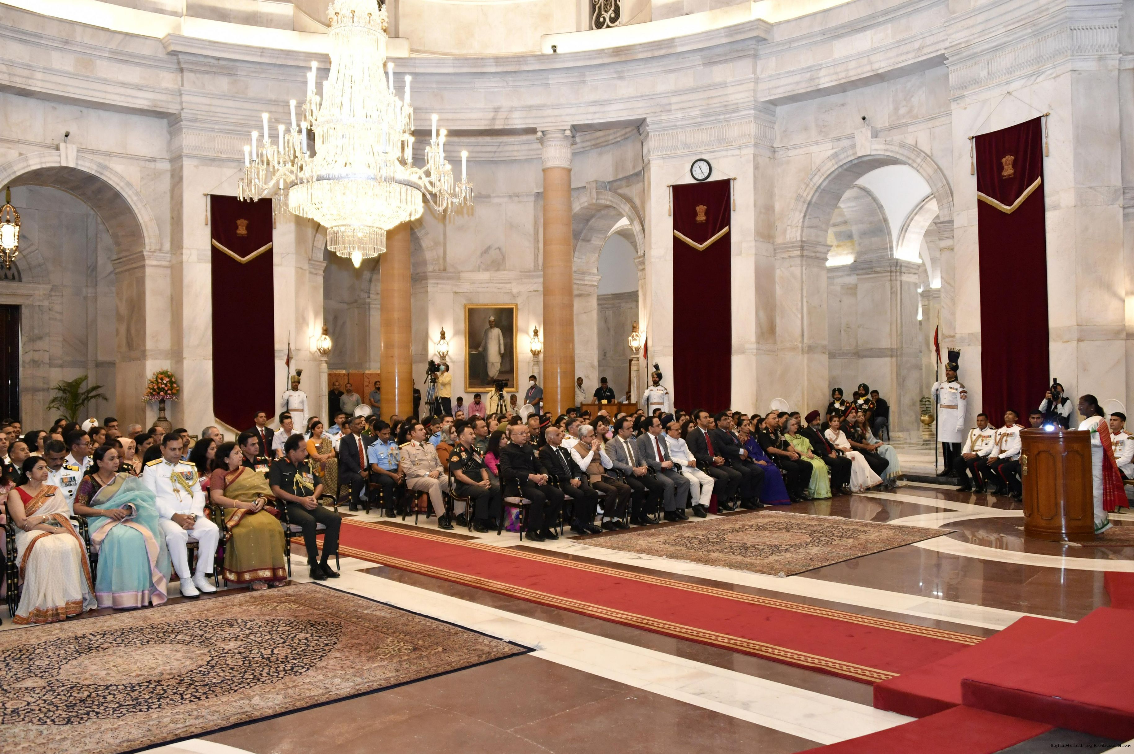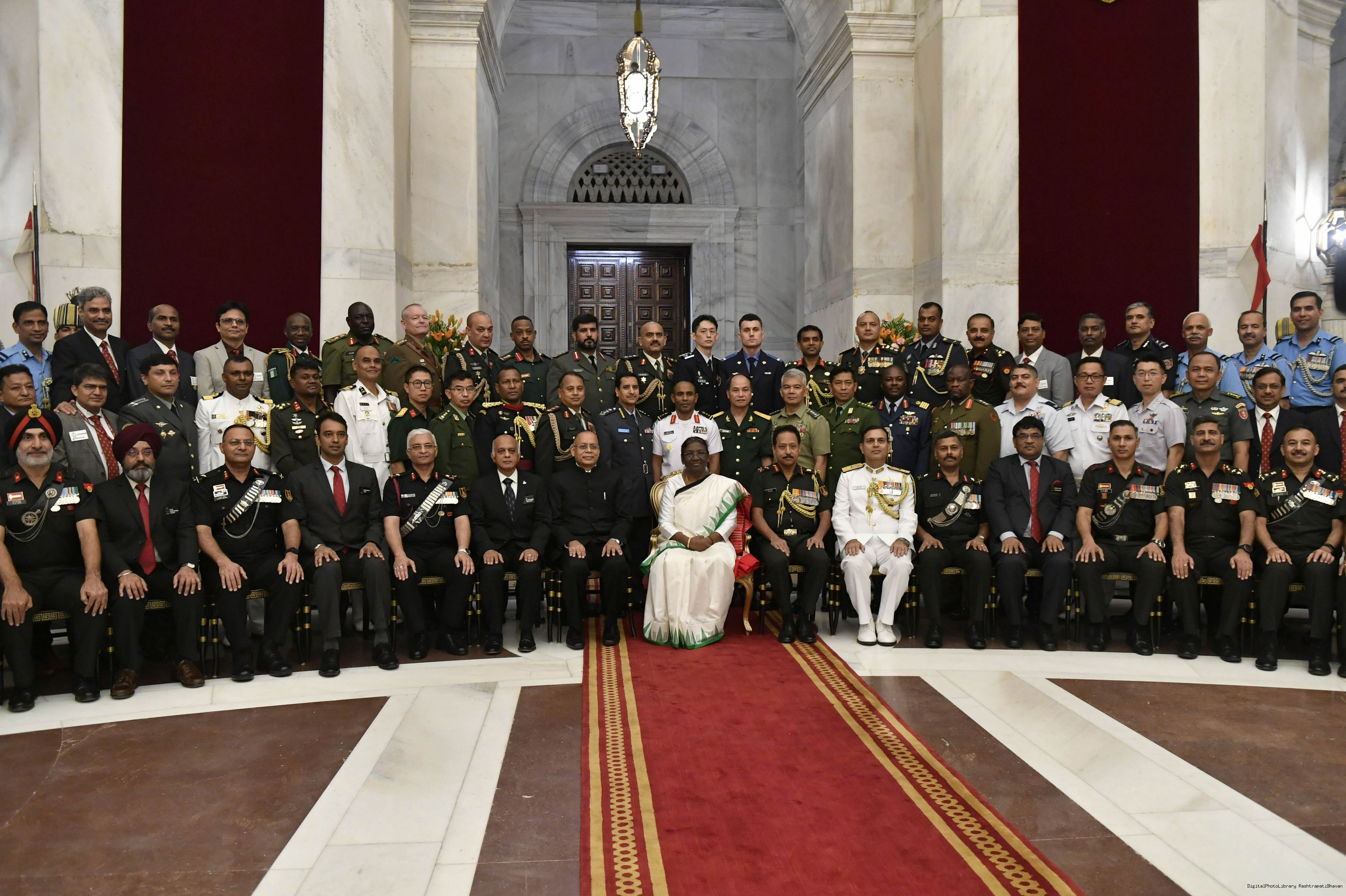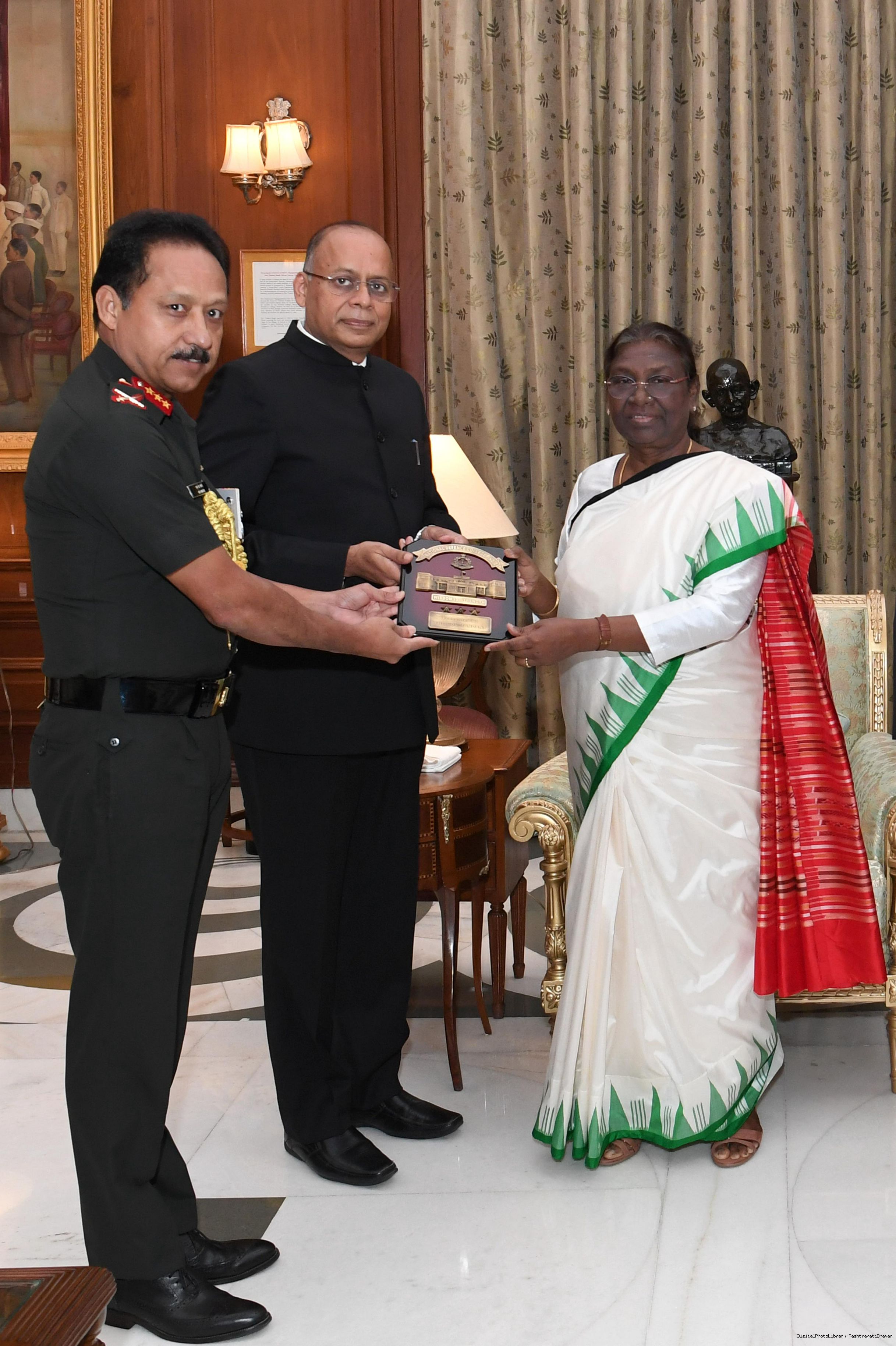 | Caption: | Faculty and course members of 62nd National Defence College Course calling on the President of India, Smt. Droupadi Murmu, at Rashtrapati Bhavan on September 15, 2022. |