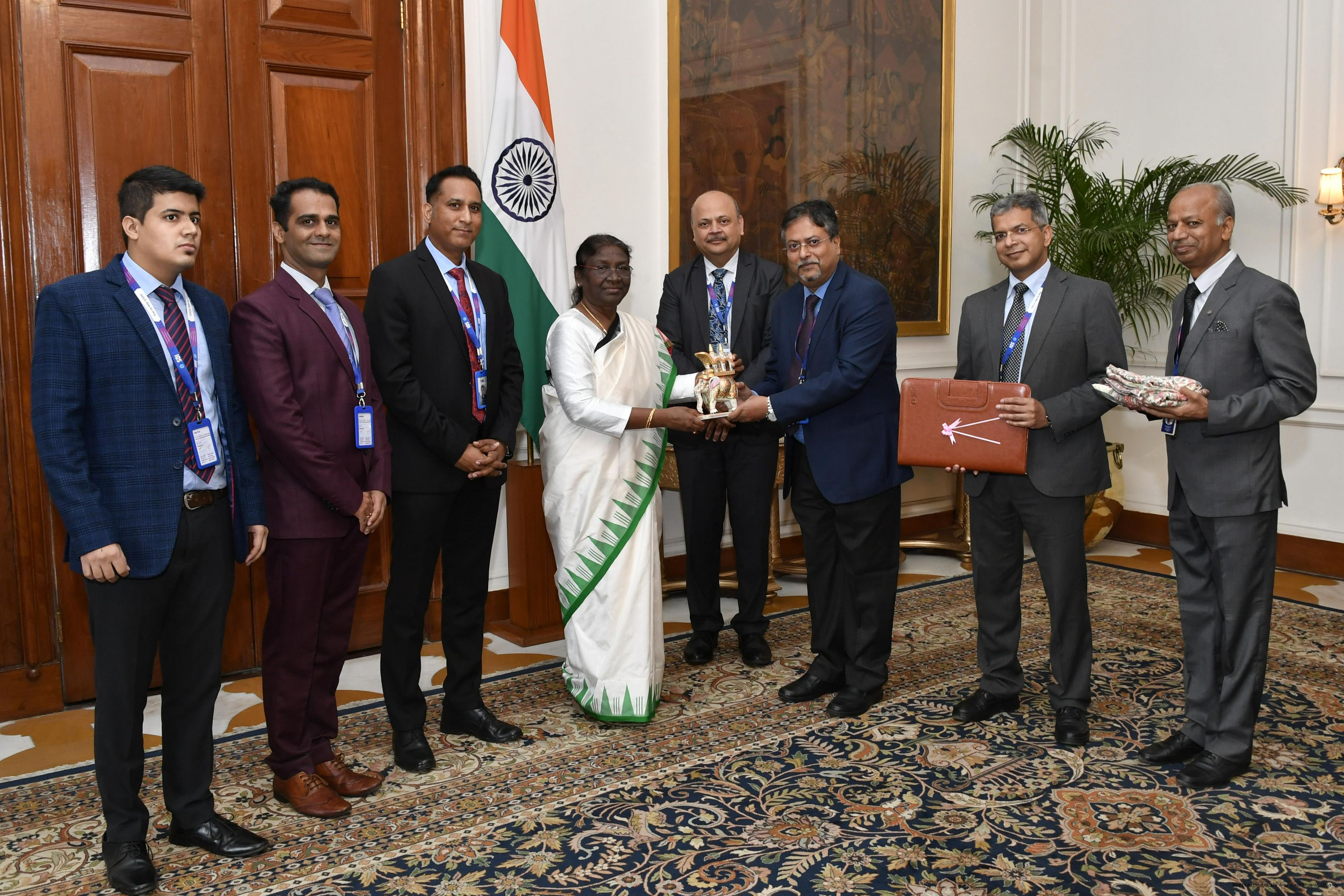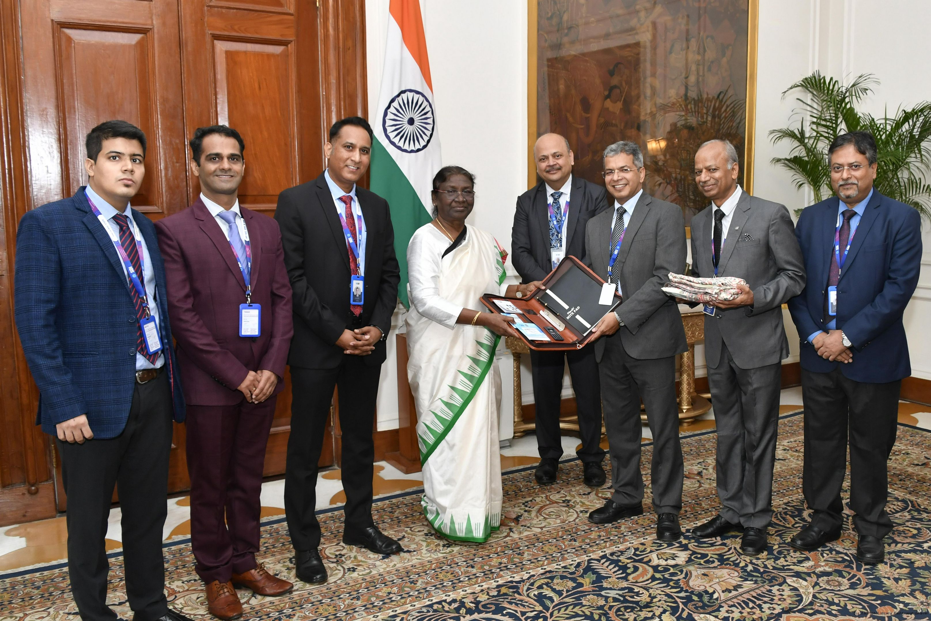 | Caption: | Shri Kalpesh K. Avasia, Chief General Manager along with others from State Bank of India meeting with the President of India, Smt. Droupadi Murmu, at Rashtrapati Bhavan on Sep 15, 2022. |