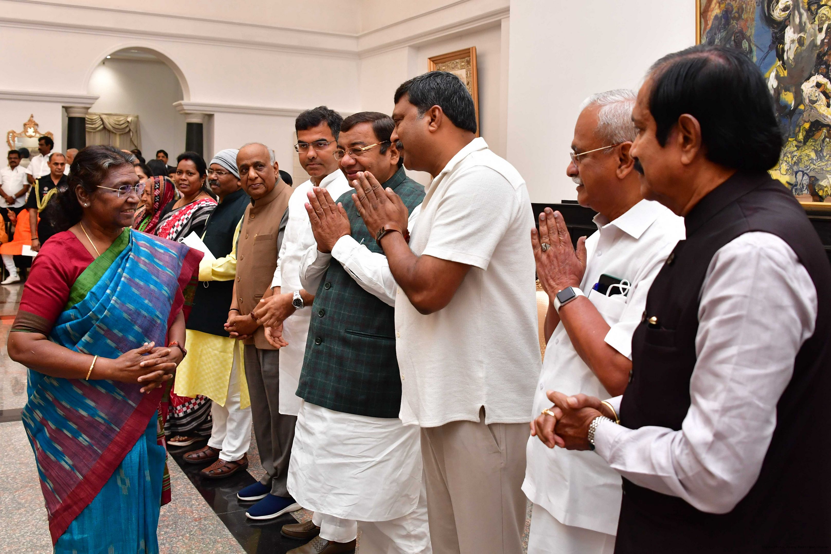 | Caption: | The President of India, Smt. Droupadi Murmu Breakfast Meeting with the Members of Parliament (Lok Sabha Rajya Sabha) at Rashtrapati Bhavan on March 24, 2023 |