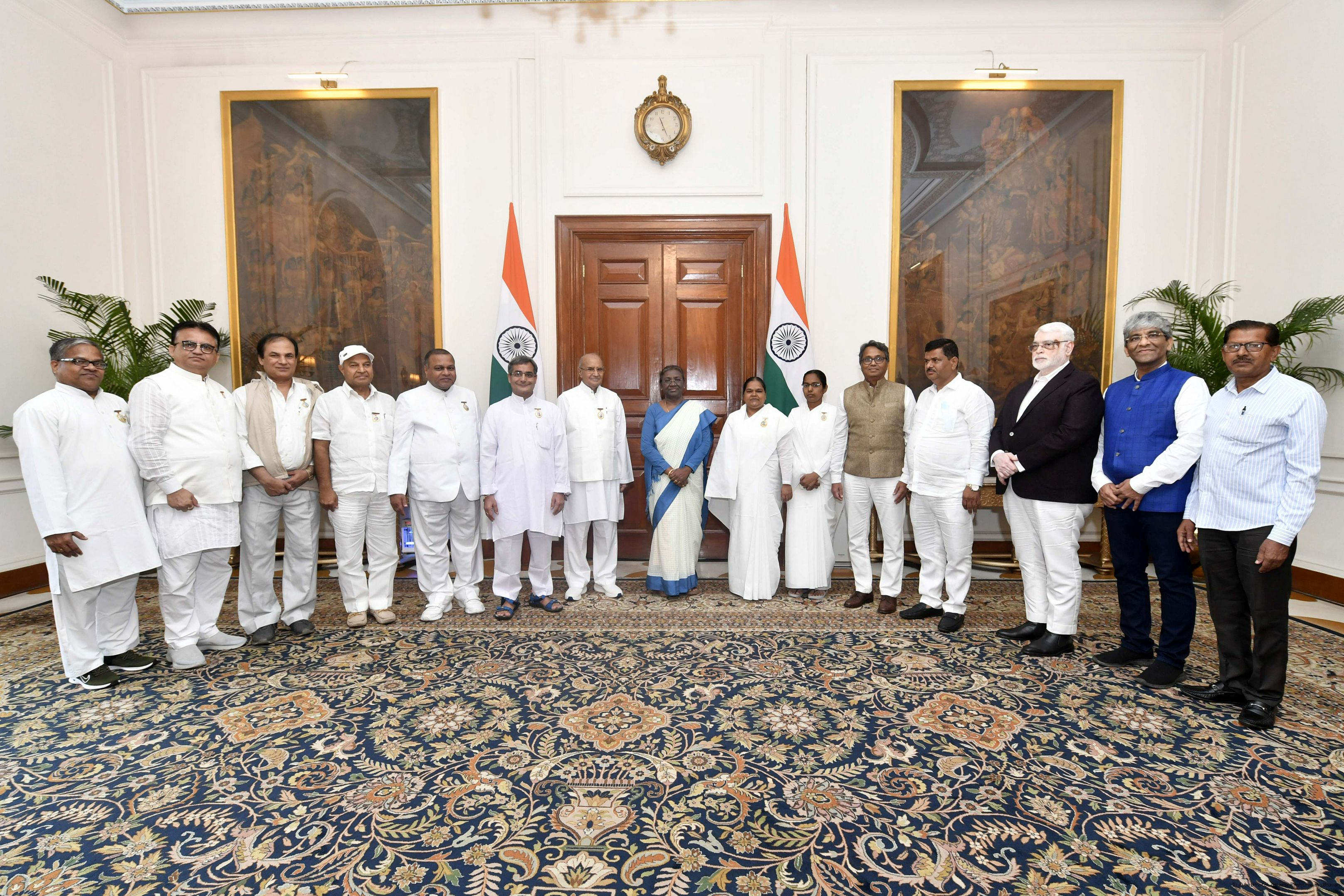| Caption: | BK Suchita +13 from Rajyoga Education Research Foundation, Sadri, Pali District, Rajasthan meeting with the President of India, Smt. Droupadi Murmu, at Rashtrapati Bhavan on Sep 23, 2022. |
