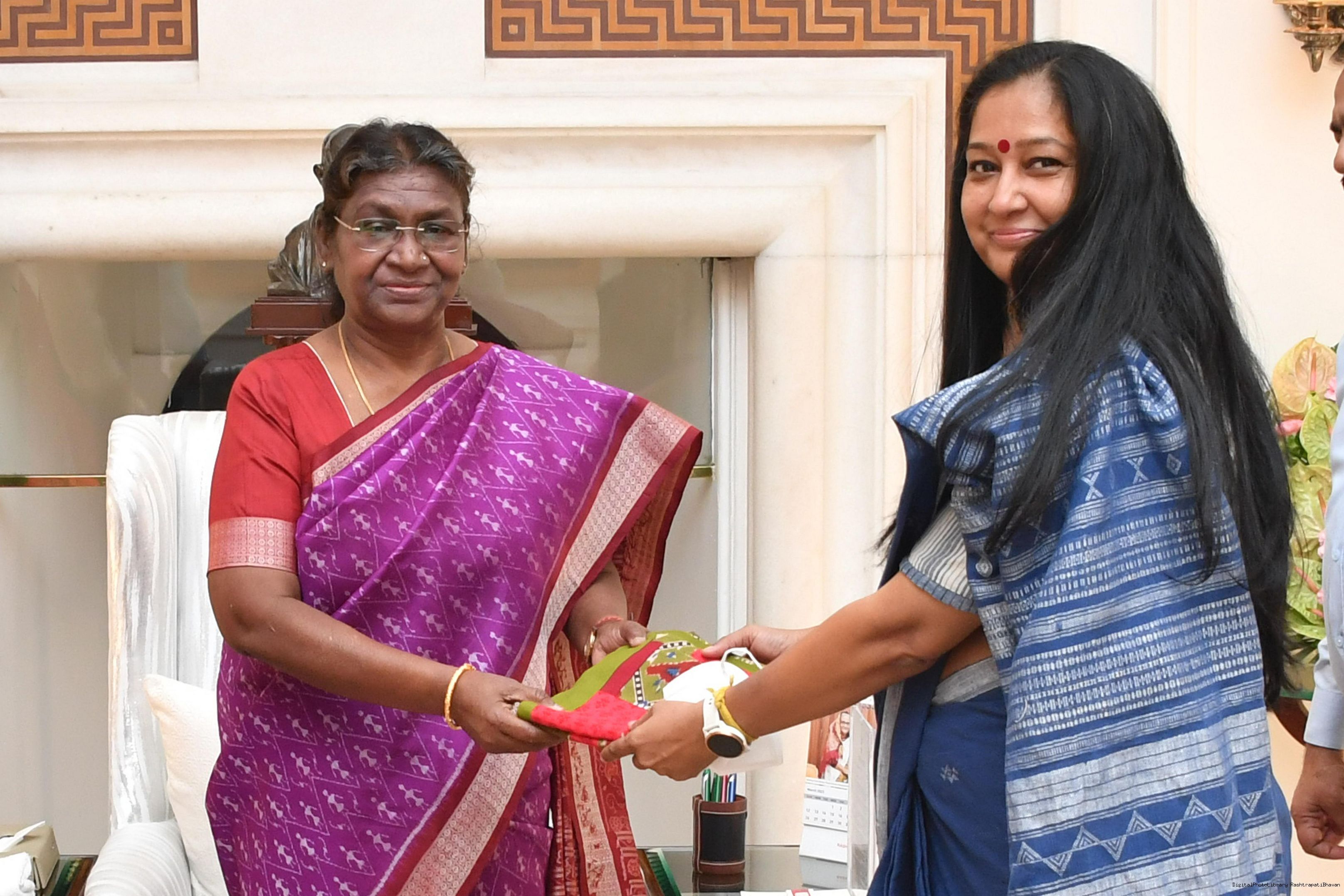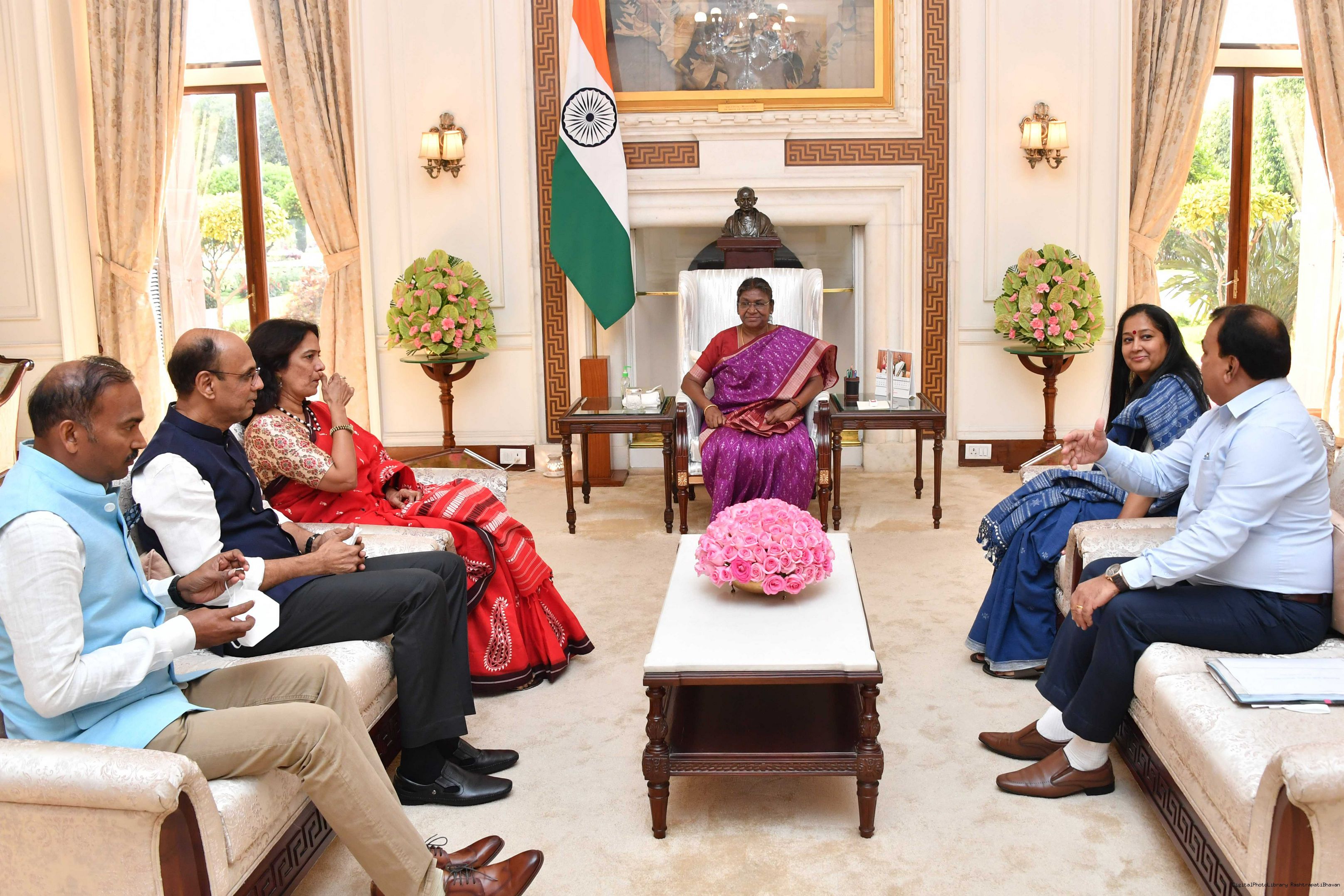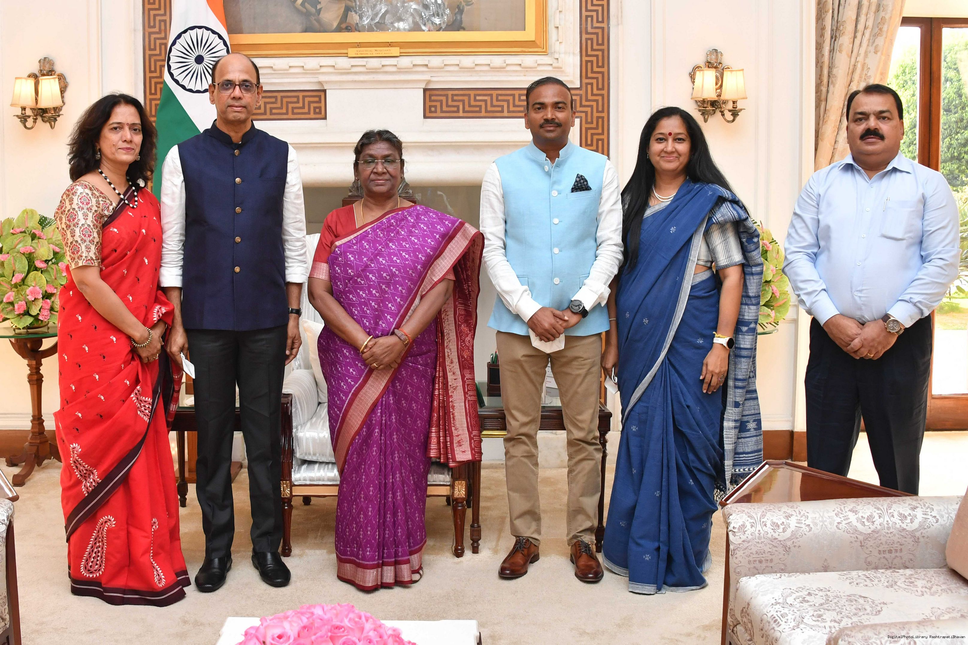 | Caption: | Shri Prathvaj hegde along Smt Madhavi Ravuri and Shri Subodh kumar meeting with the President of India, Smt. Droupadi Murmu, at Rashtrapati Bhavan on March 25, 2023. |
