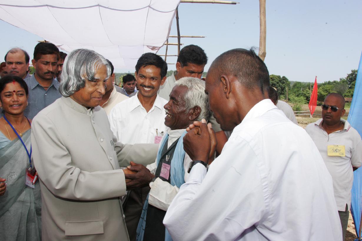 | Caption: | The President of India, Dr A P J Abdul Kalam meeting with the Nanaji Deshmukh and interacting with the Villagers of Katni District of Satna in Madhya Pradesh on Oct 06, 2005 |