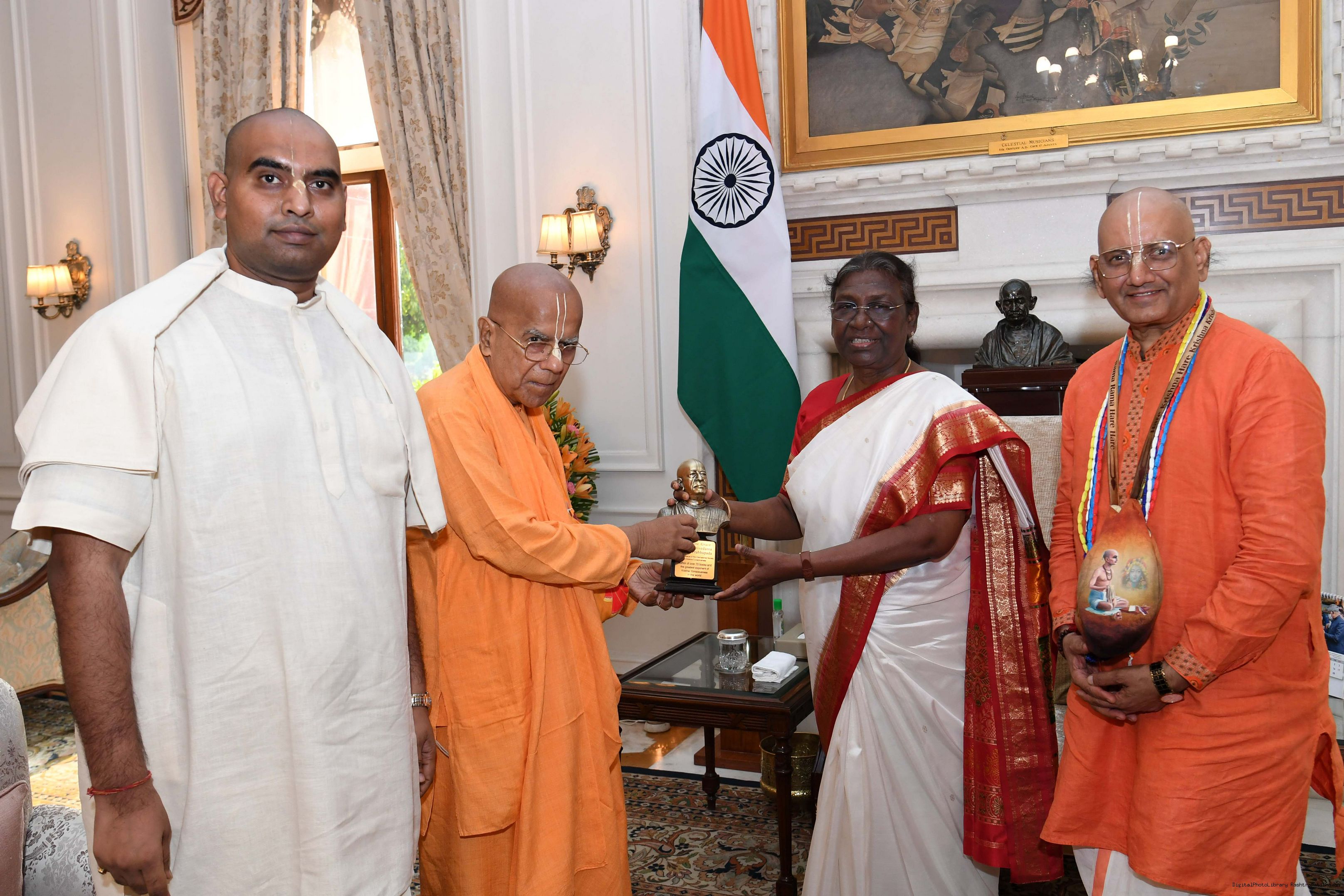 | Caption: | Shri Gopal Krishna Goswami Maharaja, Chairman along with others meeting with the President of India, Smt. Droupadi Murmu, at Rashtrapati Bhavan on Sep 29, 2022. |