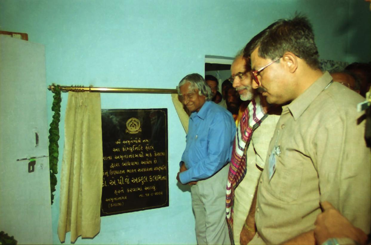 | Caption: | The President of India, Dr A P J Abdul Kalam visiting the Dagla Village in Gujarat on Aug 13, 2002 |
