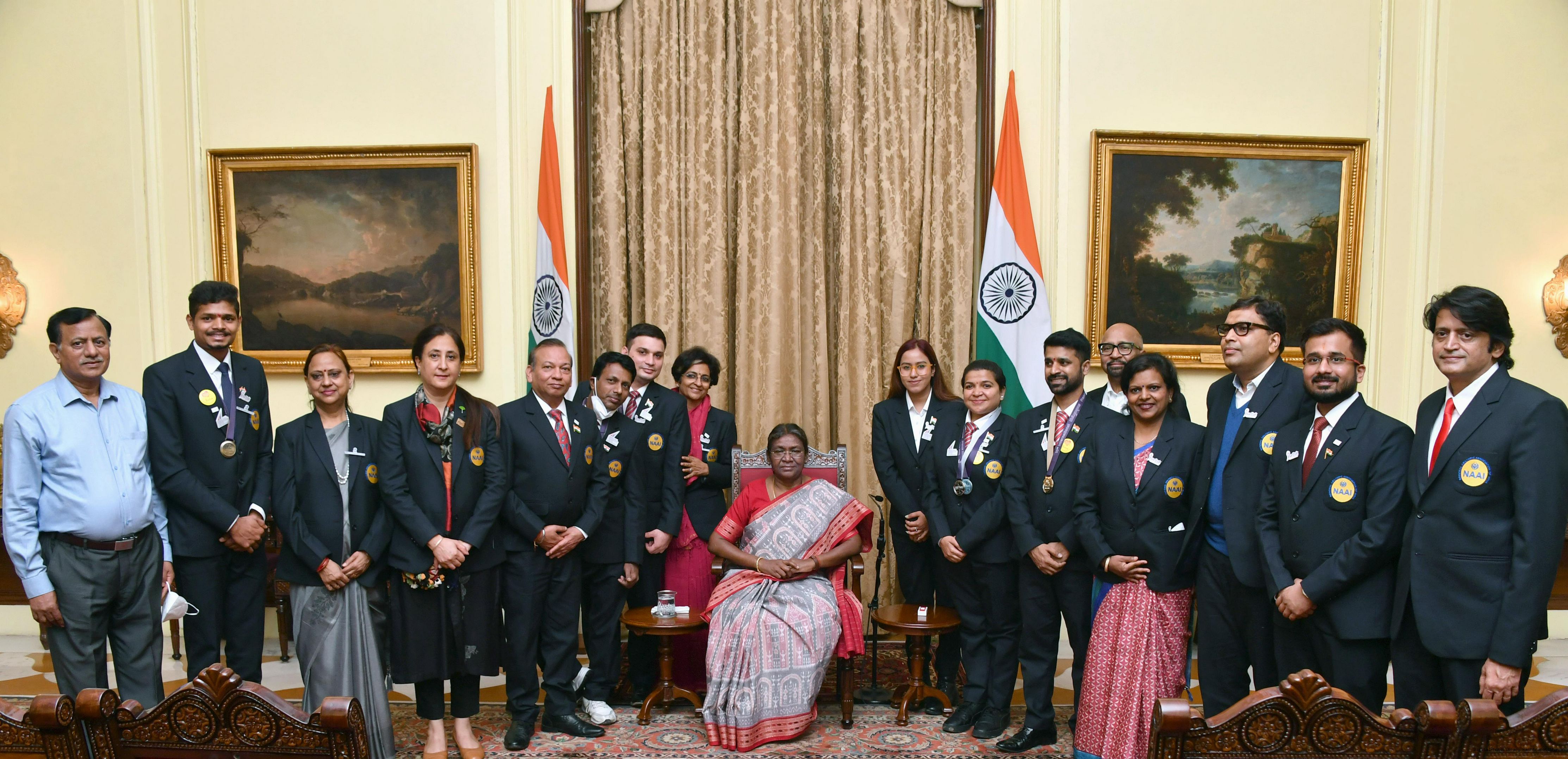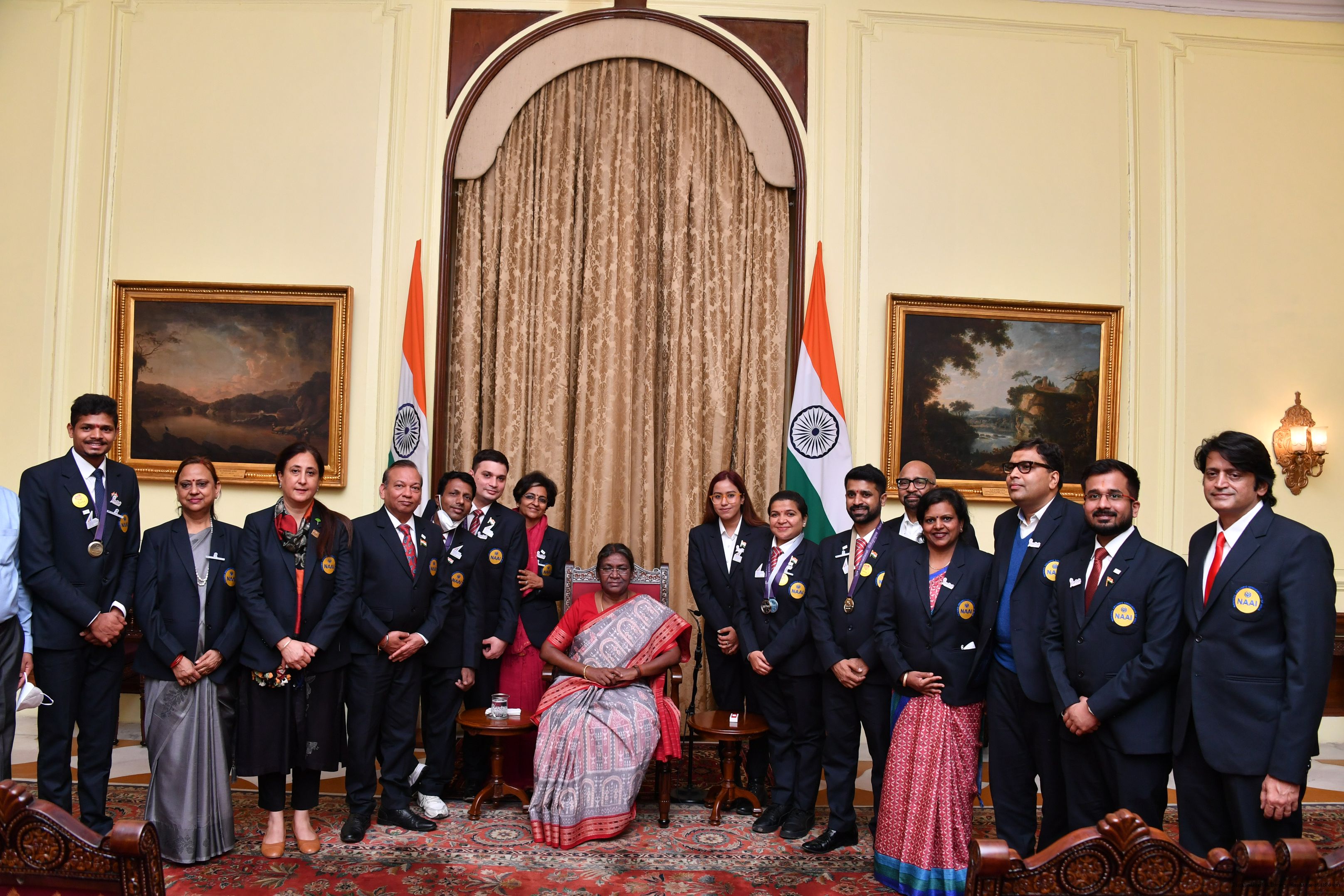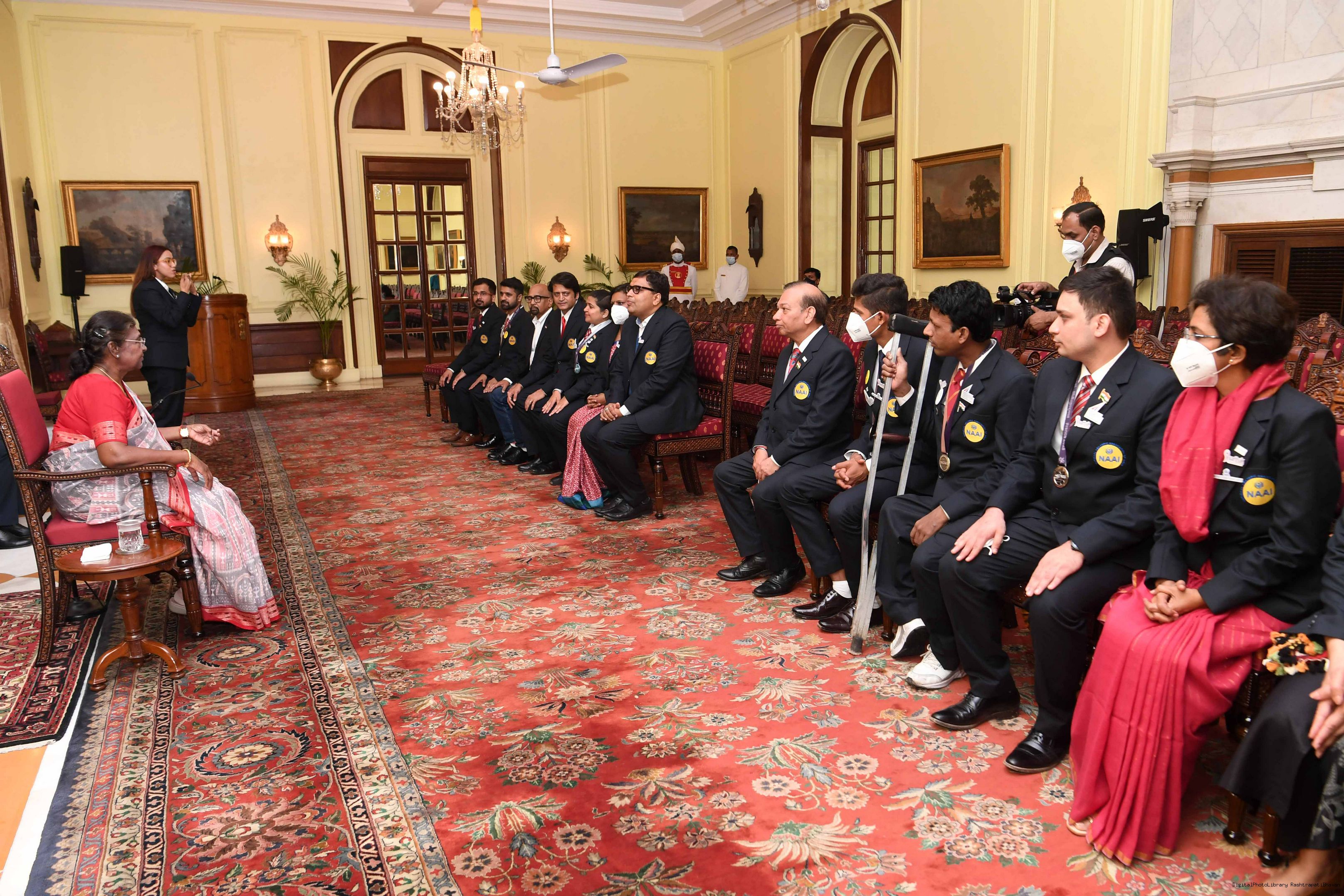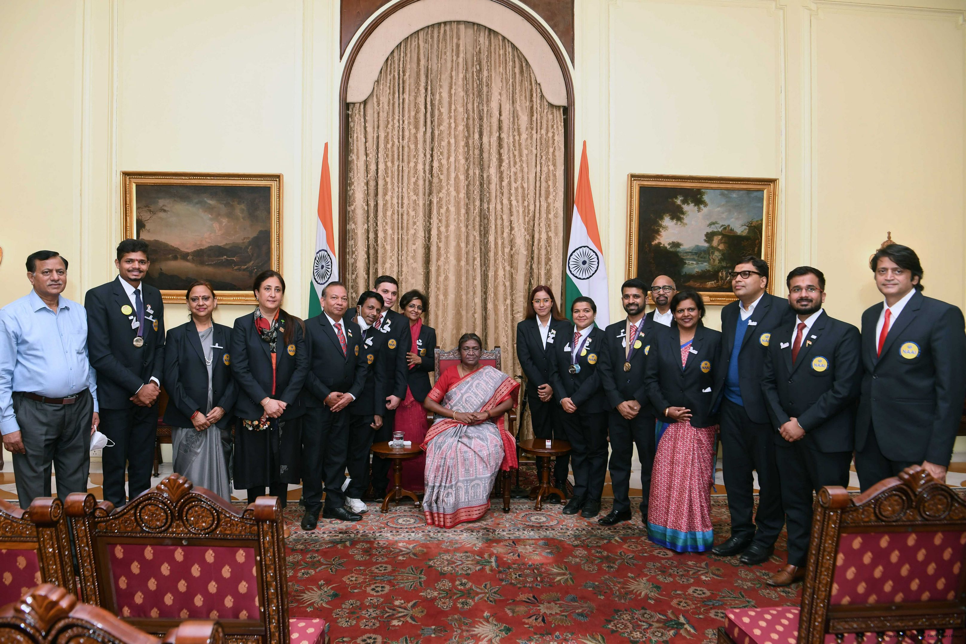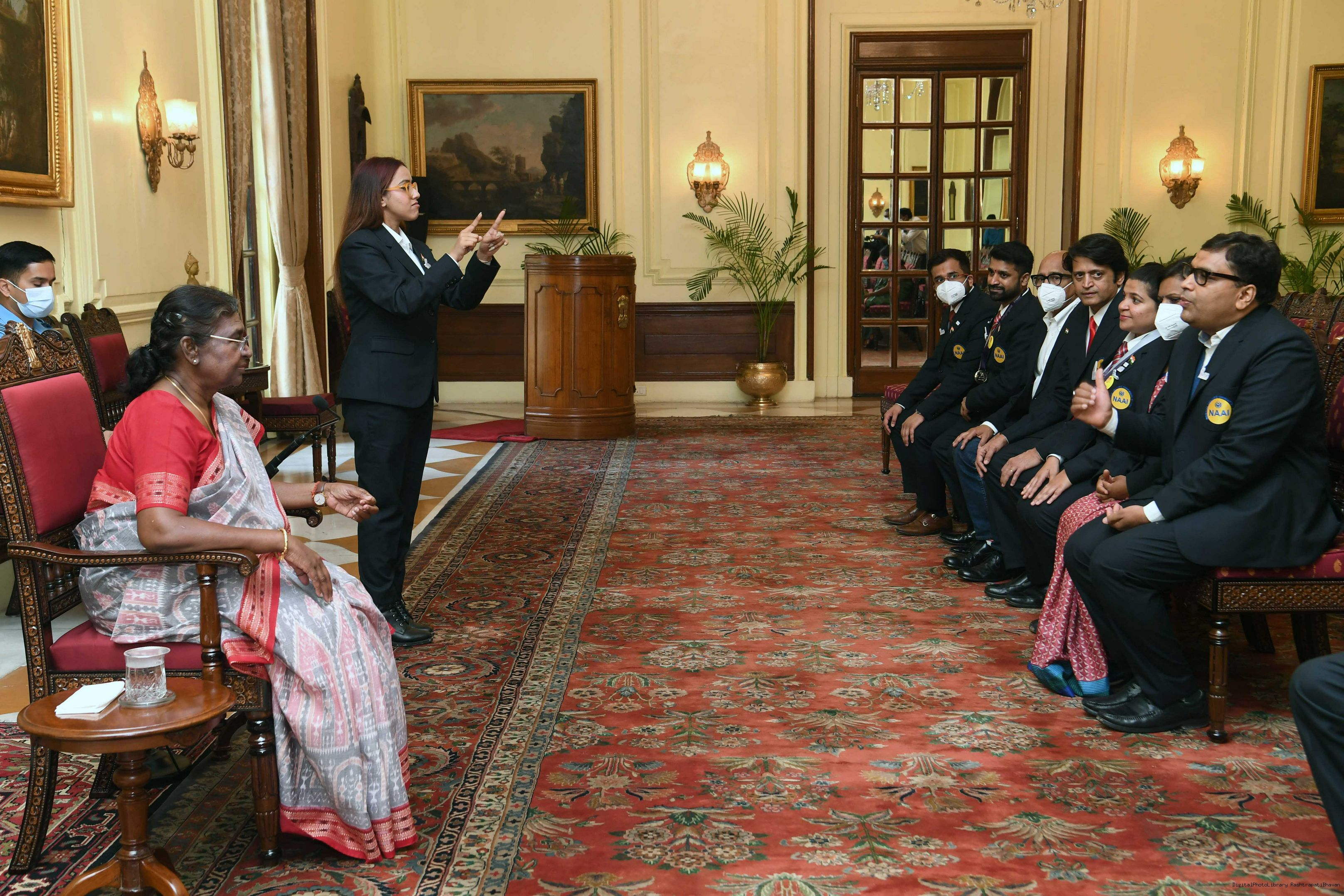 | Caption: | The President of India, Smt. Droupadi Murmu met the Indian contingent of 10th International Abilympics at Rashtrapati Bhavan on March 31, 2023 |