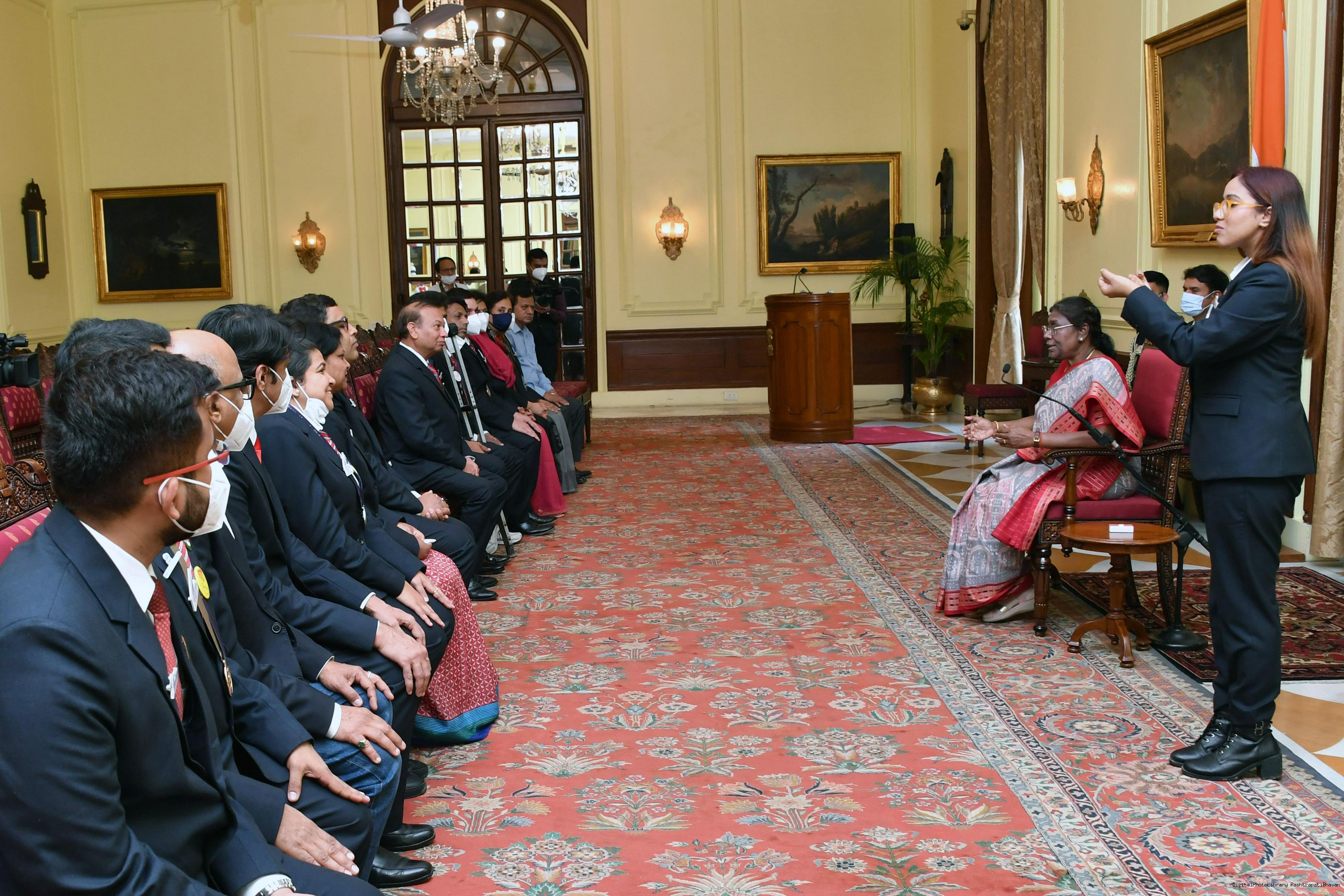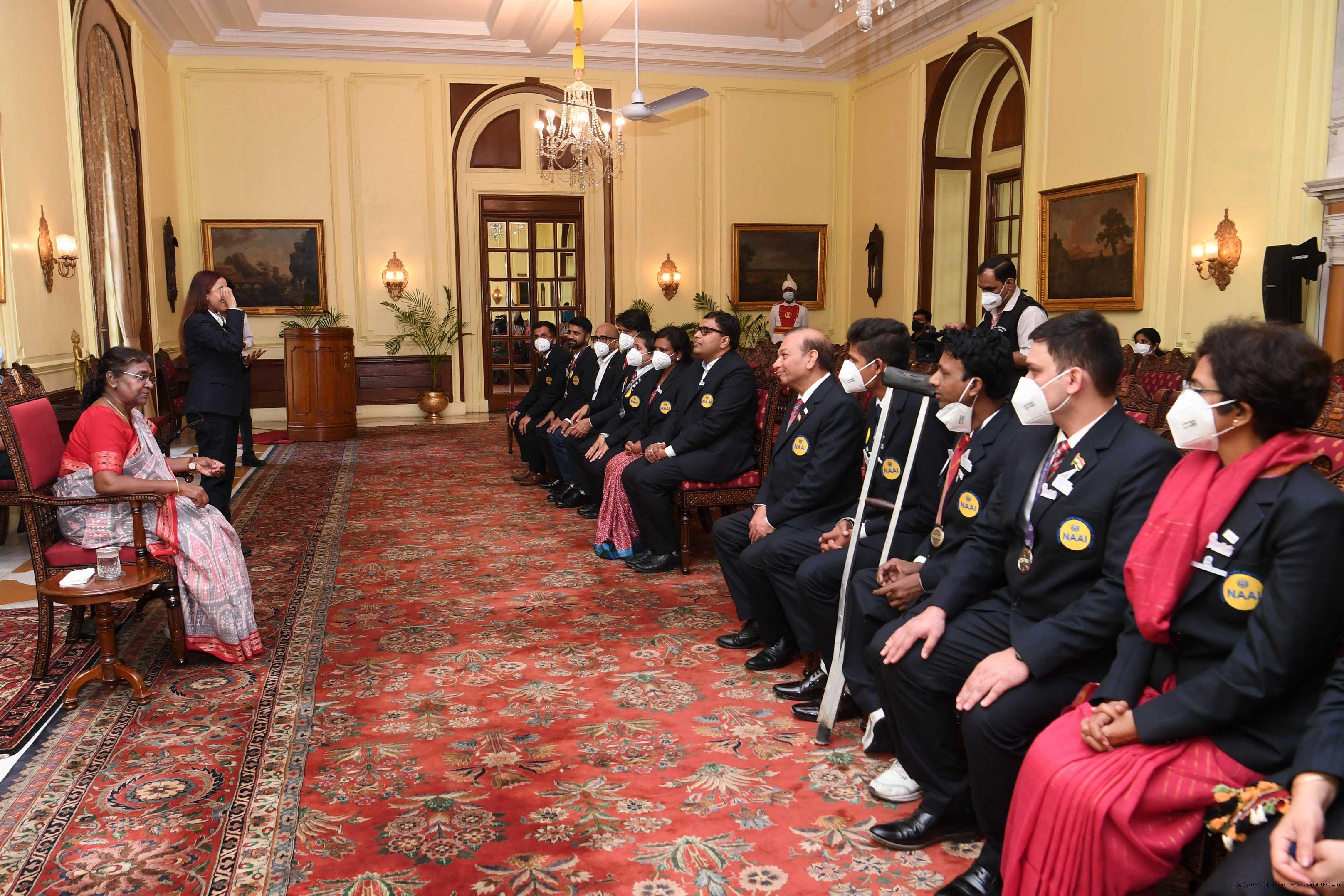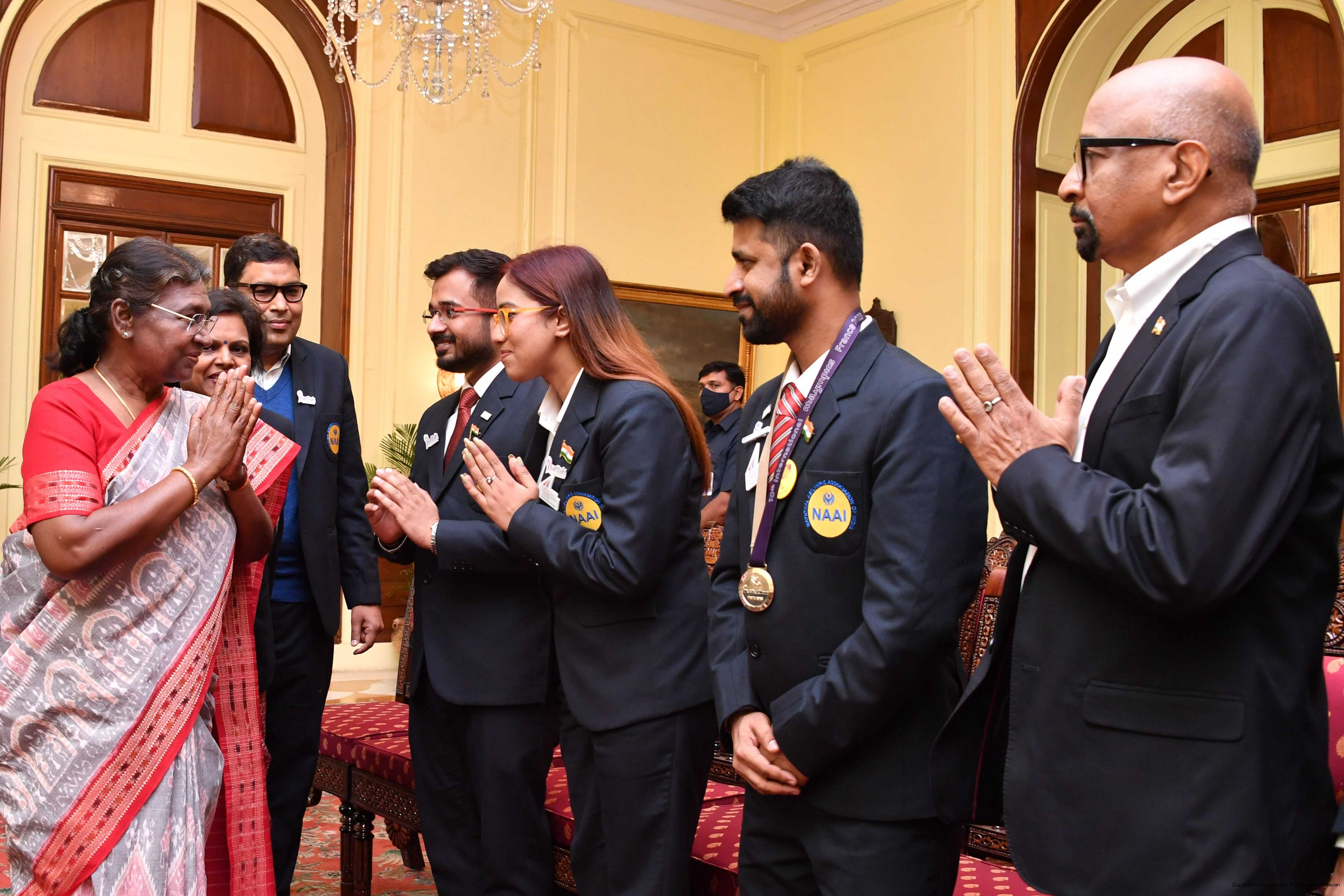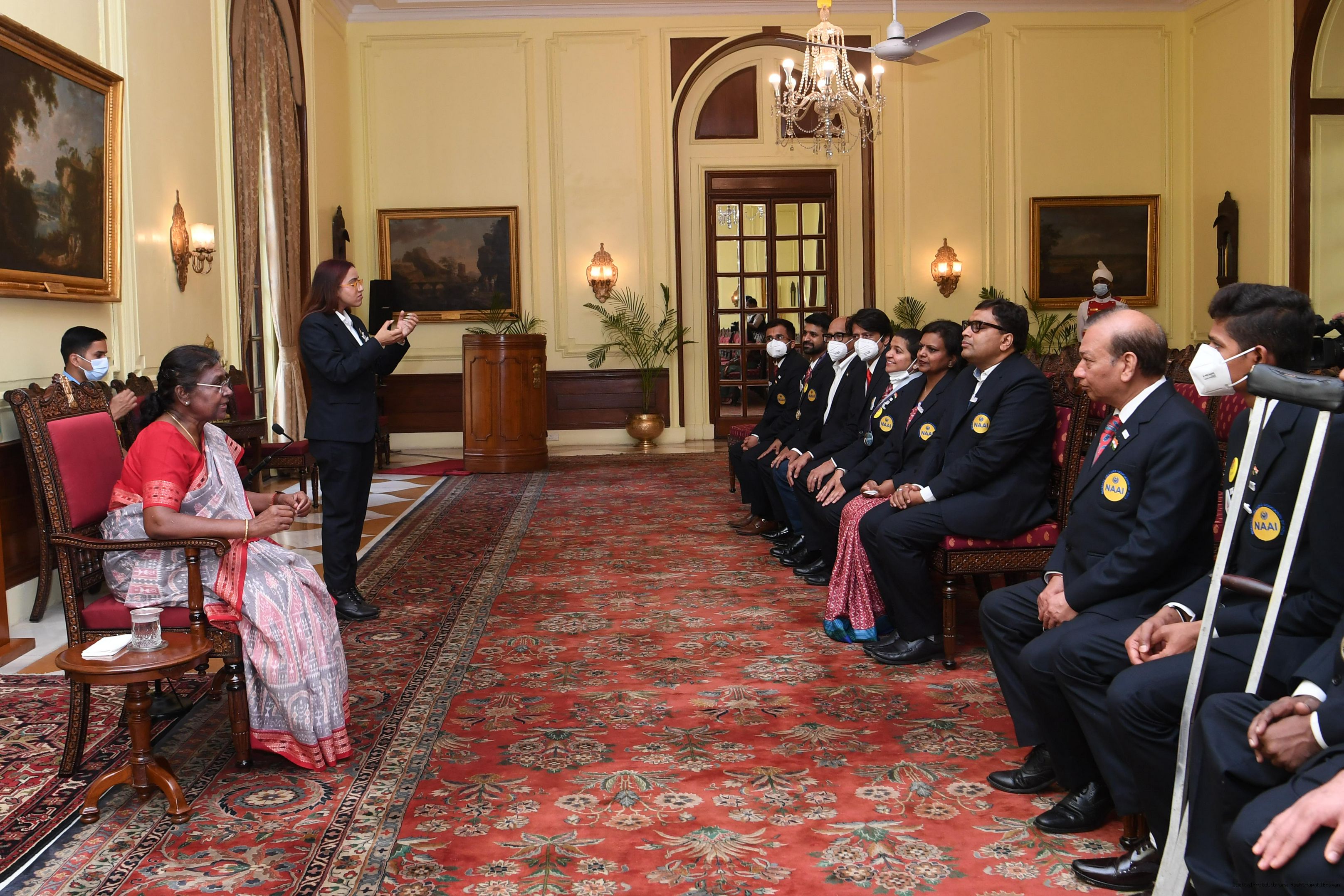 | Caption: | The President of India, Smt. Droupadi Murmu met the Indian contingent of 10th International Abilympics at Rashtrapati Bhavan on March 31, 2023 |