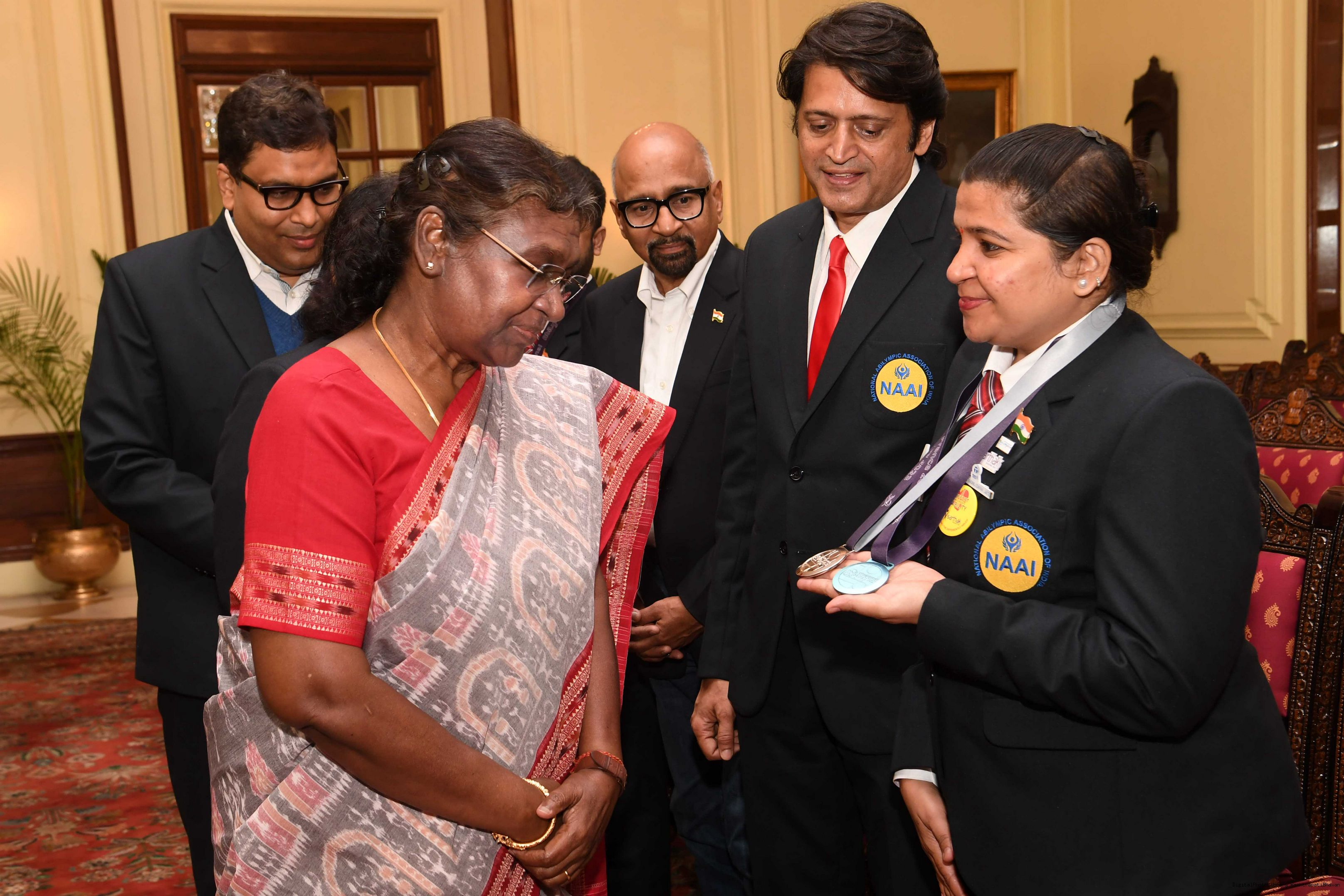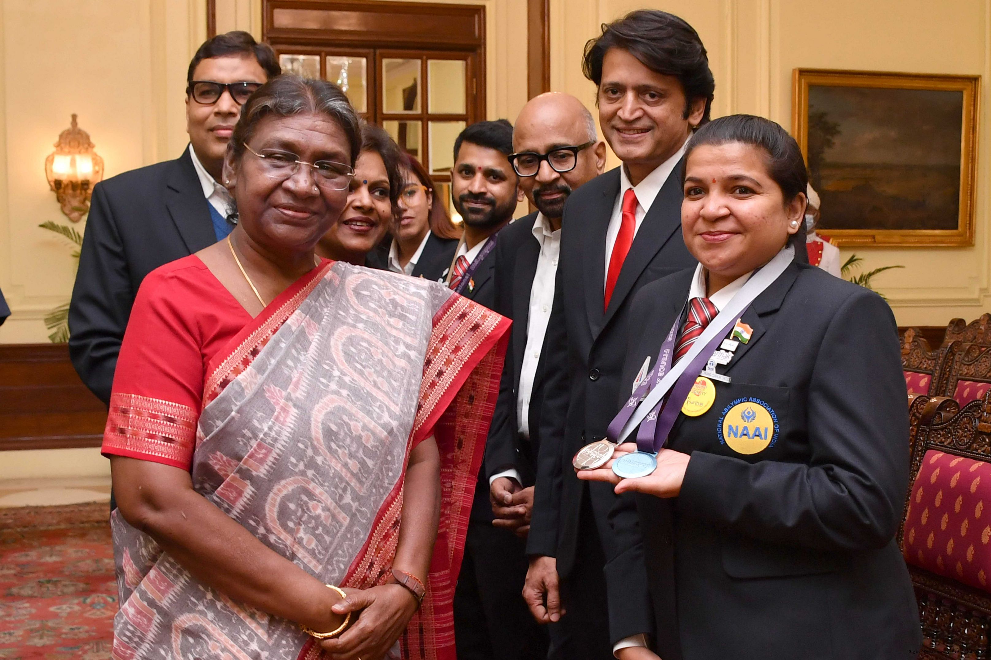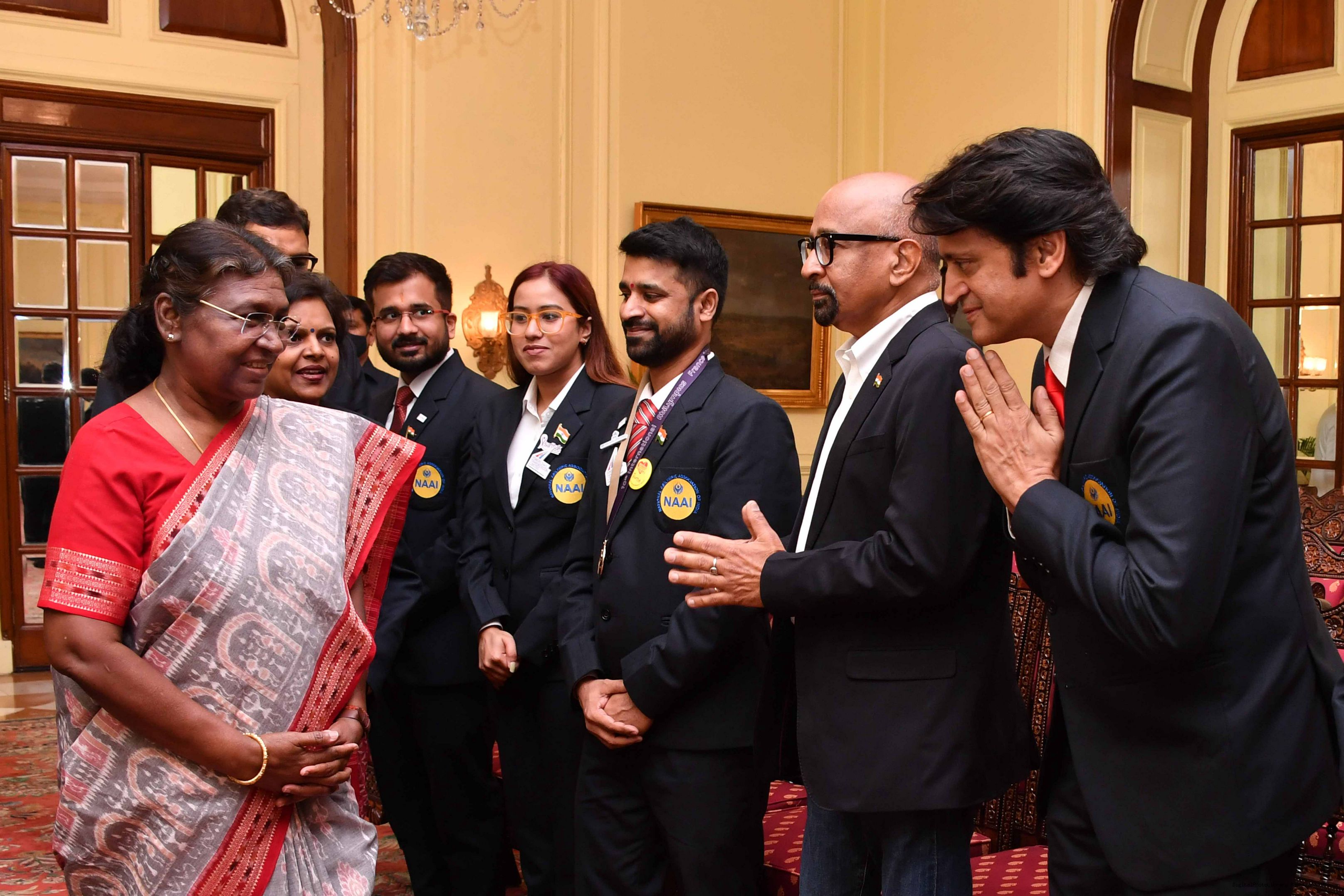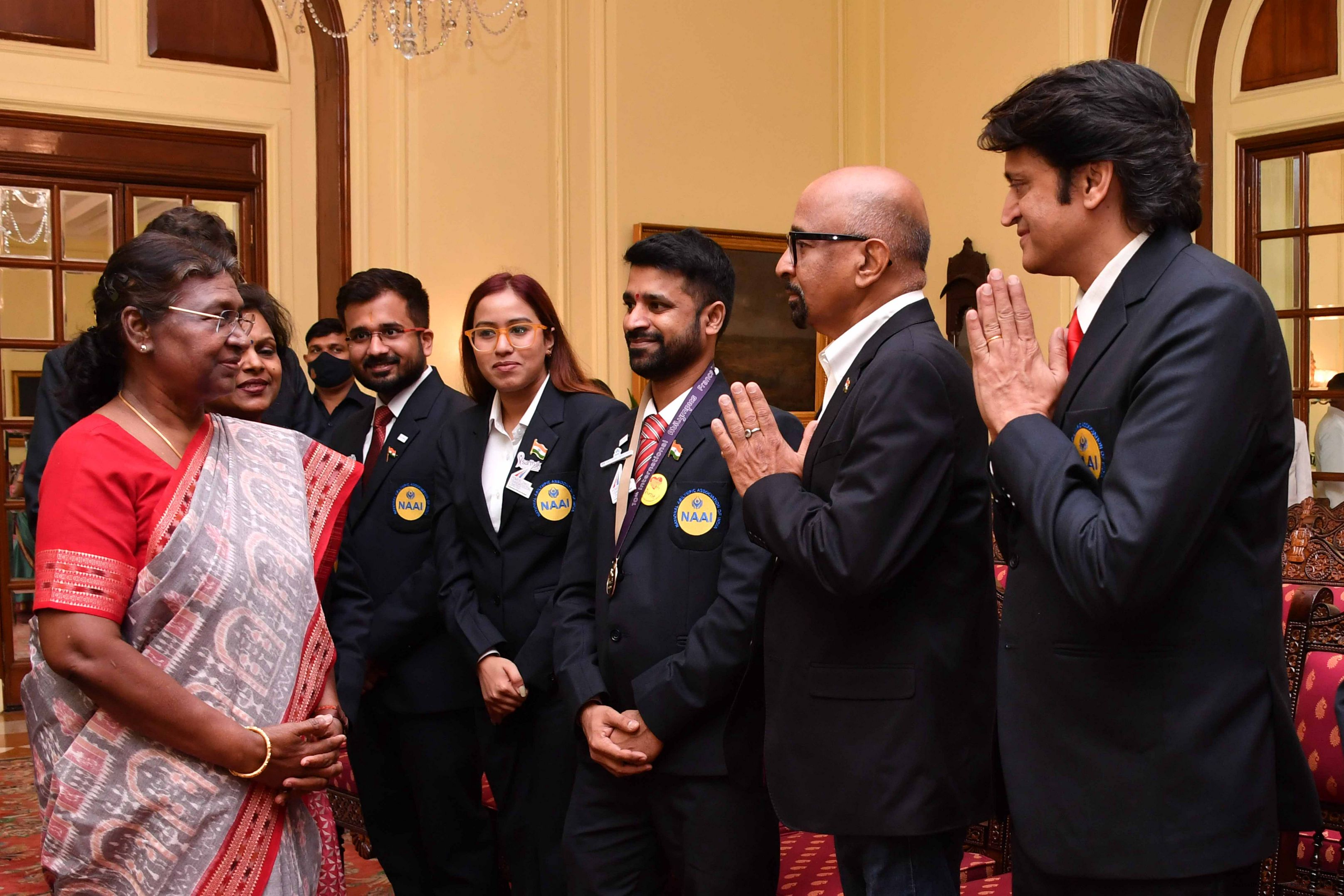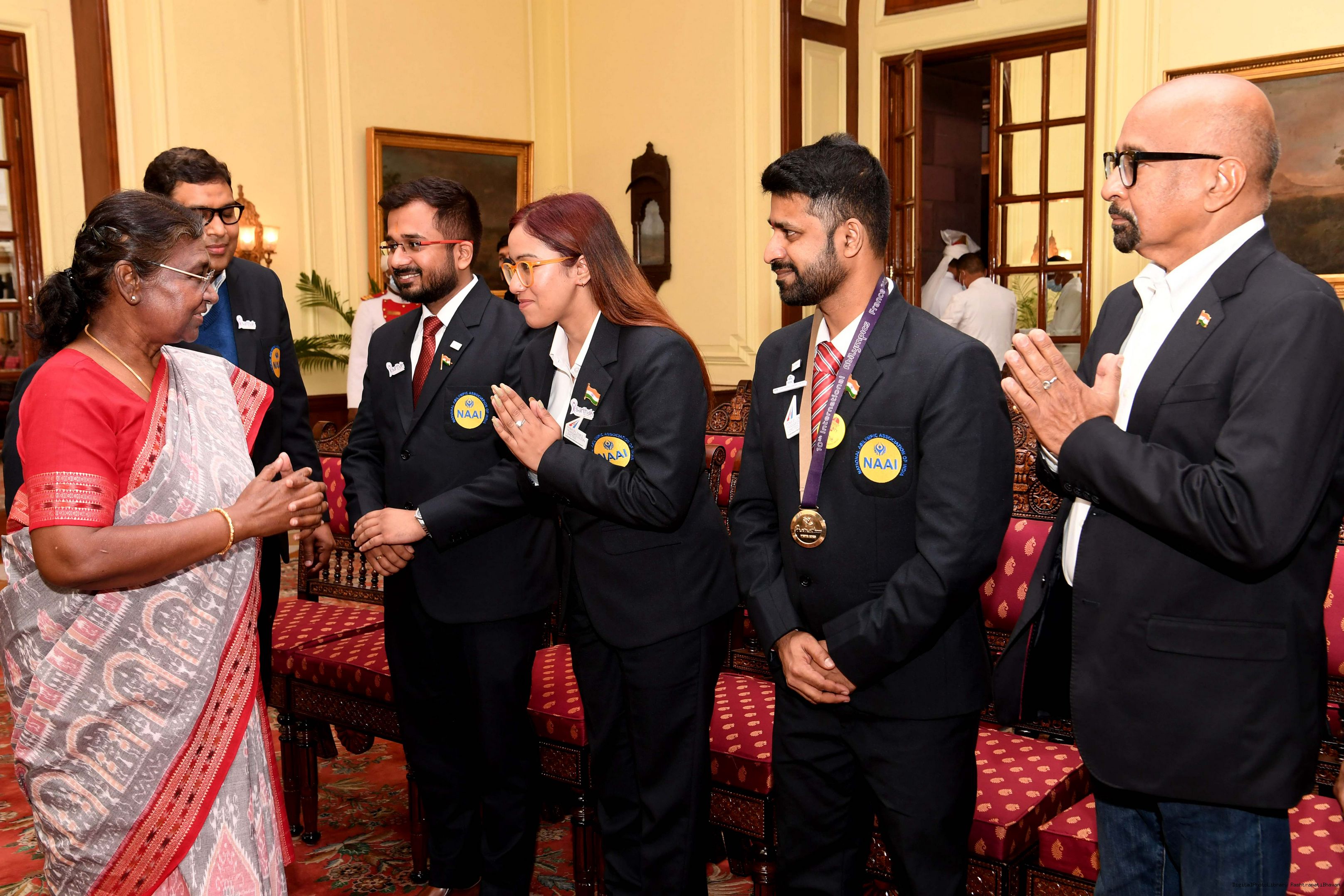 | Caption: | The President of India, Smt. Droupadi Murmu met the Indian contingent of 10th International Abilympics at Rashtrapati Bhavan on March 31, 2023 |