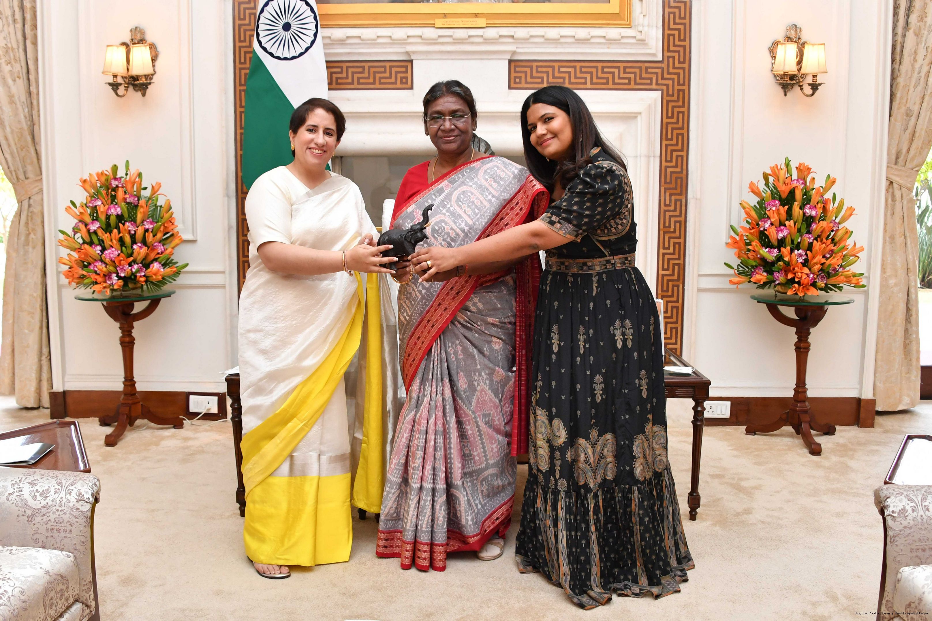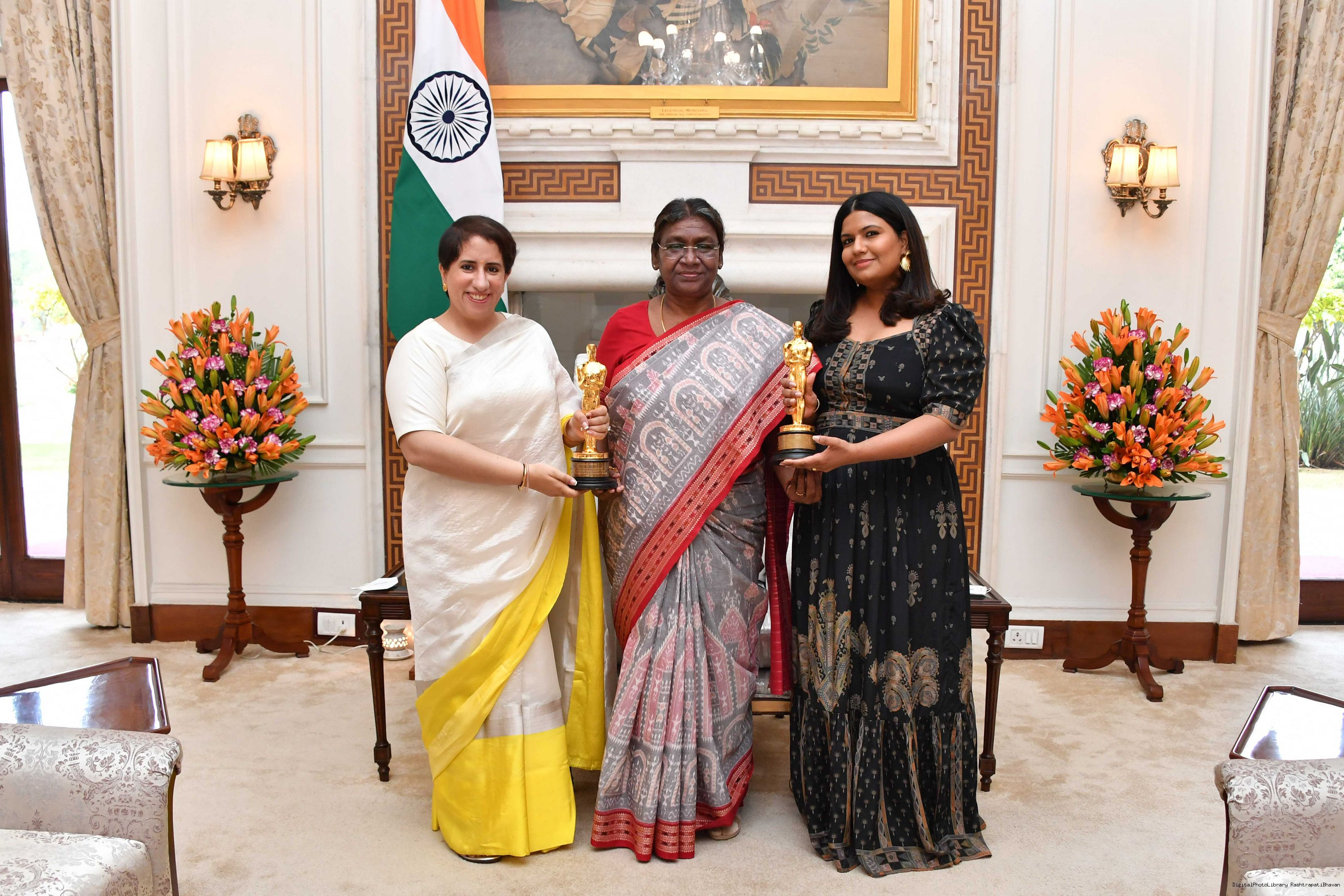 | Caption: | Ms. Kartiki Gonsalves, Director along with Ms. Guneet Monga, Producer, The Elephant Whisperes meeting with the President of India Smt. Droupadi Murmu at Rashtrapati Bhavan on March 31, 2023 |