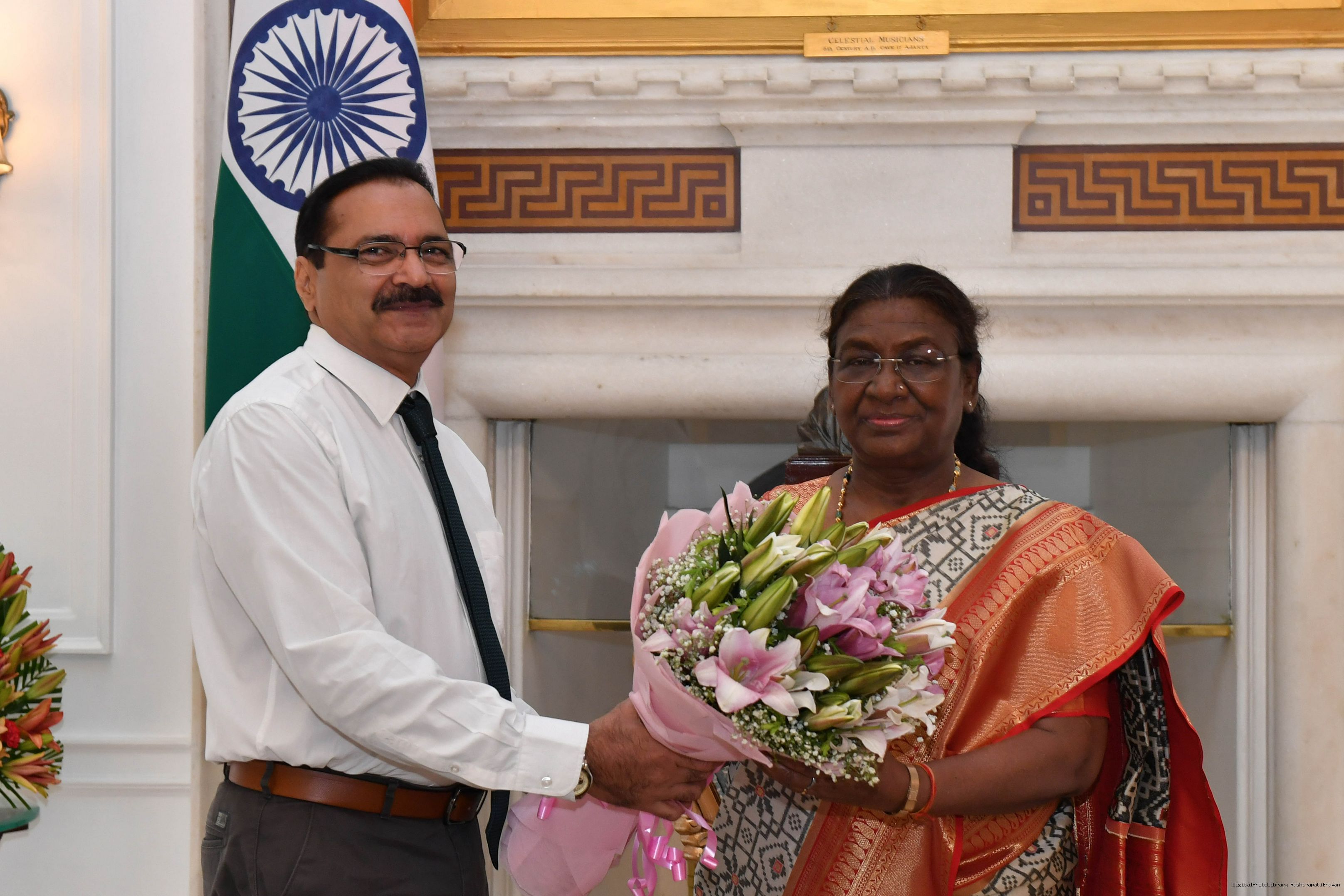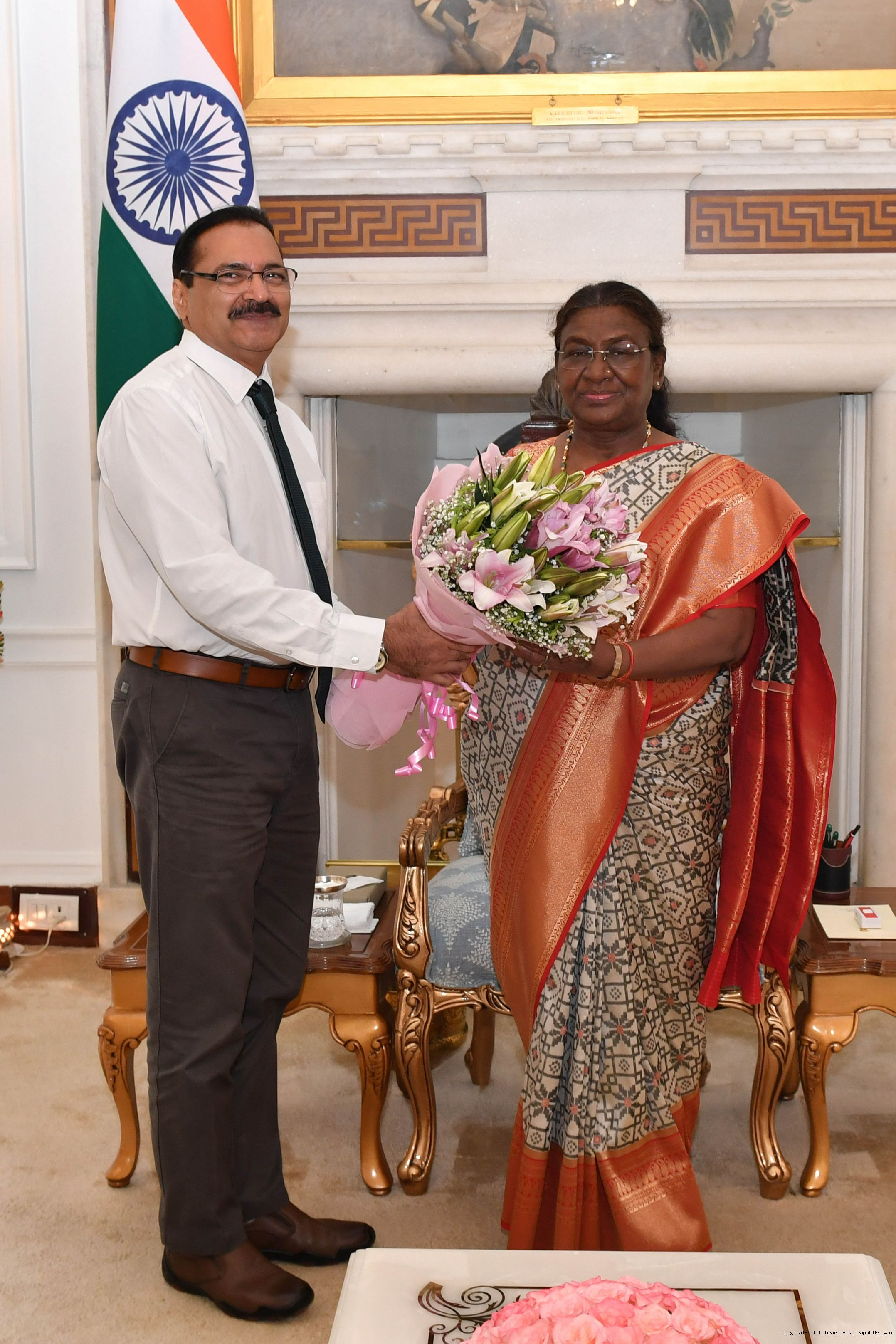 | Caption: | Dr. (Prof.) Ajay Shukla, Director Medical Superintendent, ABVIMS Dr. R.M.L. Hospital, New Delhi meeting with the President of India Smt. Droupadi Murmu at Rashtrapati Bhavan on August 27, 2024. |