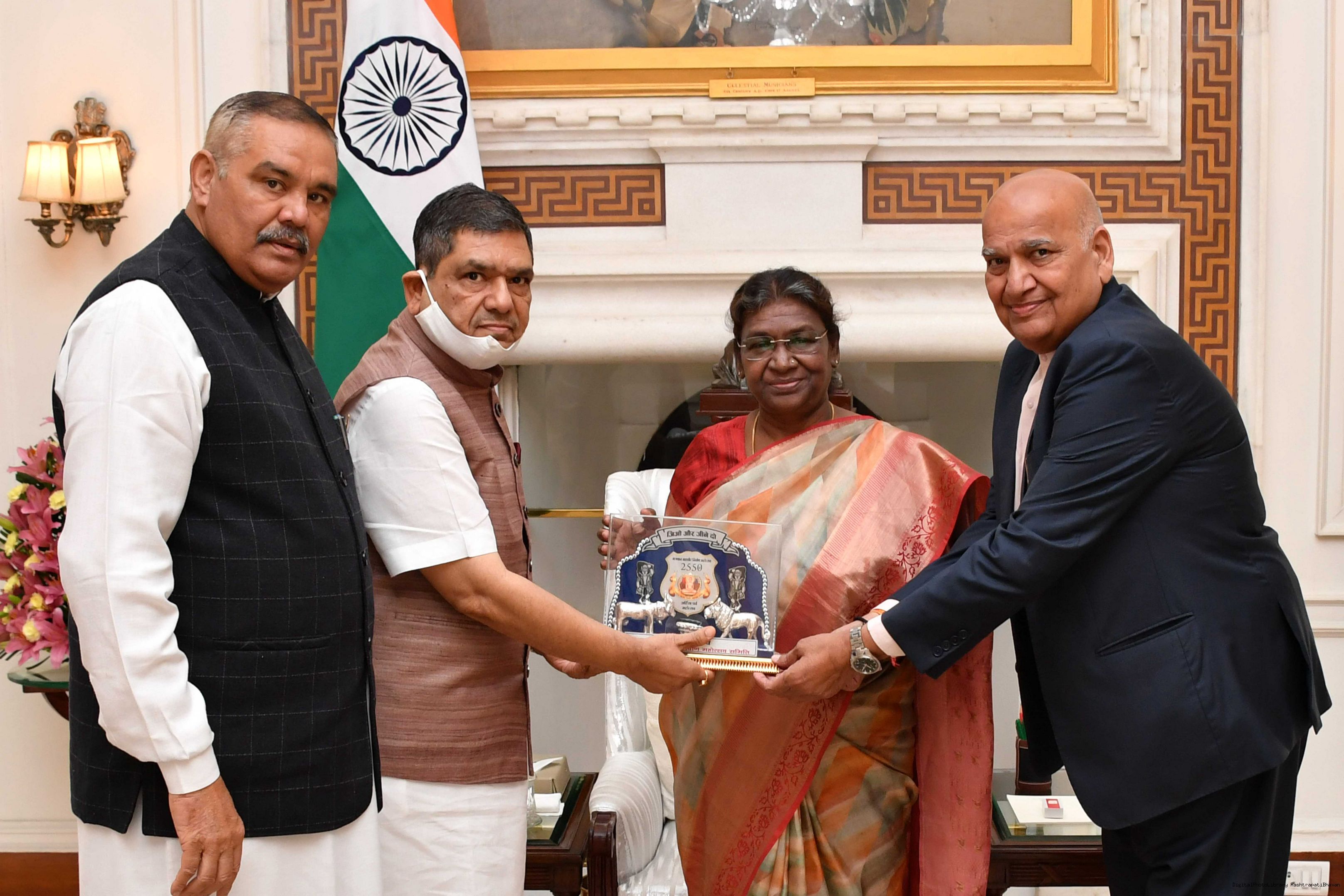 | Caption: | Shri Vijay Sampla, Chairman National commission for Schedules Caste along with others meeting with the President of India Smt. Droupadi Murmu at Rashtrapati Bhavan on April; 01, 2023. |