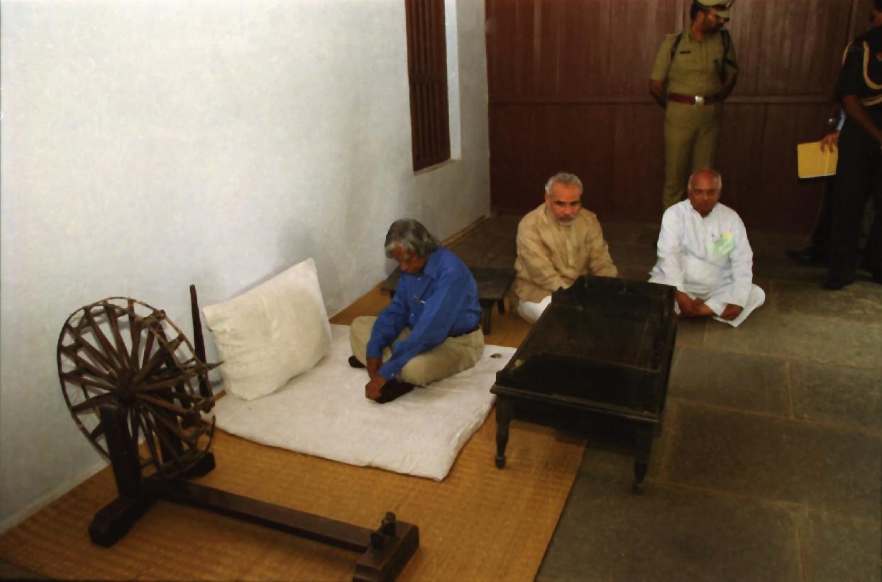 | Caption: | The President of India, Dr A P J Abdul Kalam visiting the Sabarmati Ashram and meeting with the Students at Ahmedabad in Gujarat on Aug 12, 2002 |