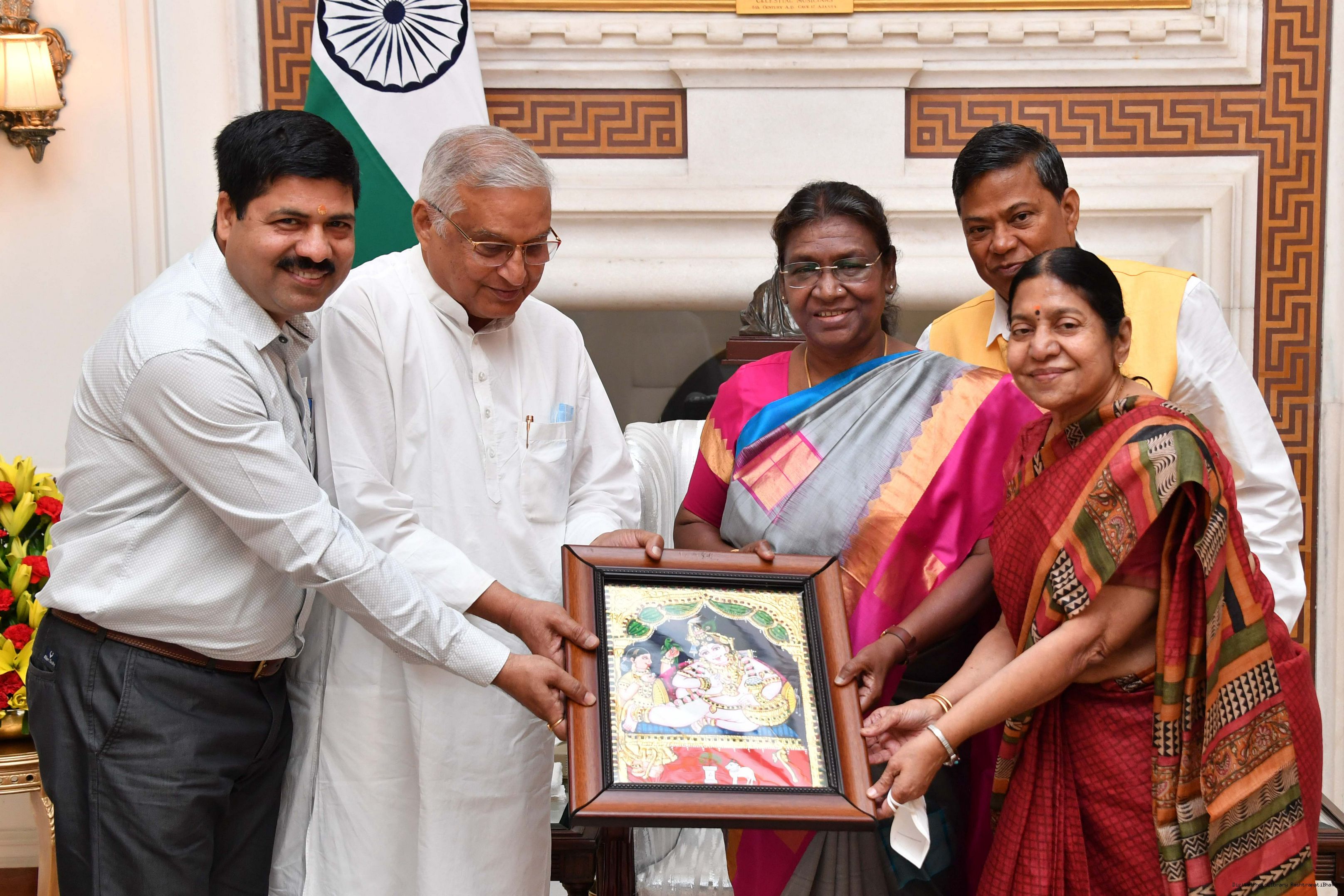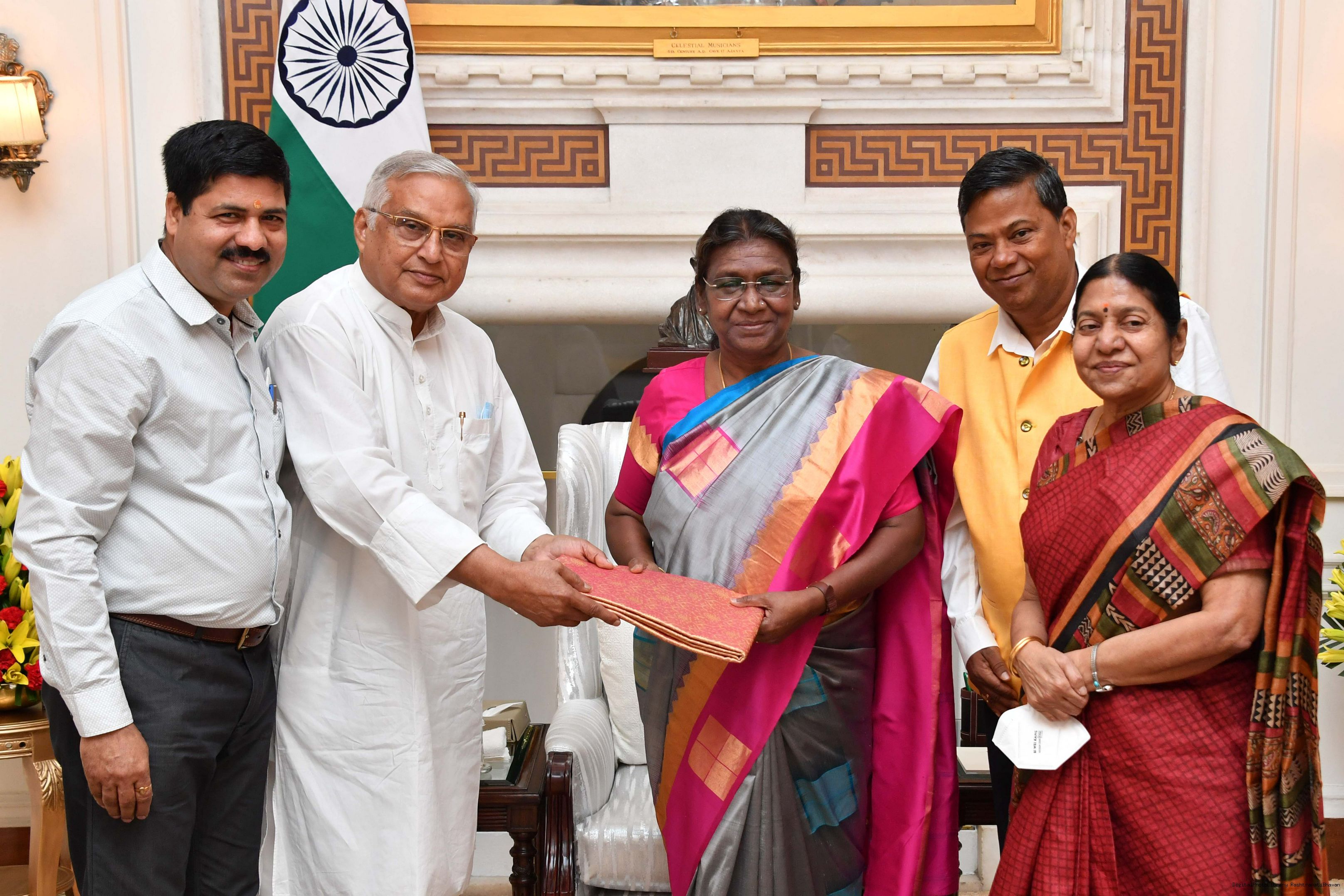 | Caption: | Shri Chandra Sekhar Sahu, MP (LS) along with Shri Niranja Mishra, Shri Sunnanthraj Ebenezer, Shri Rajendra Kumar Mahapatra and Ms. Sudha meeting with the President of India Smt. Droupadi Murmu at Rashtrapati Bhavan on April 05, 2023 |