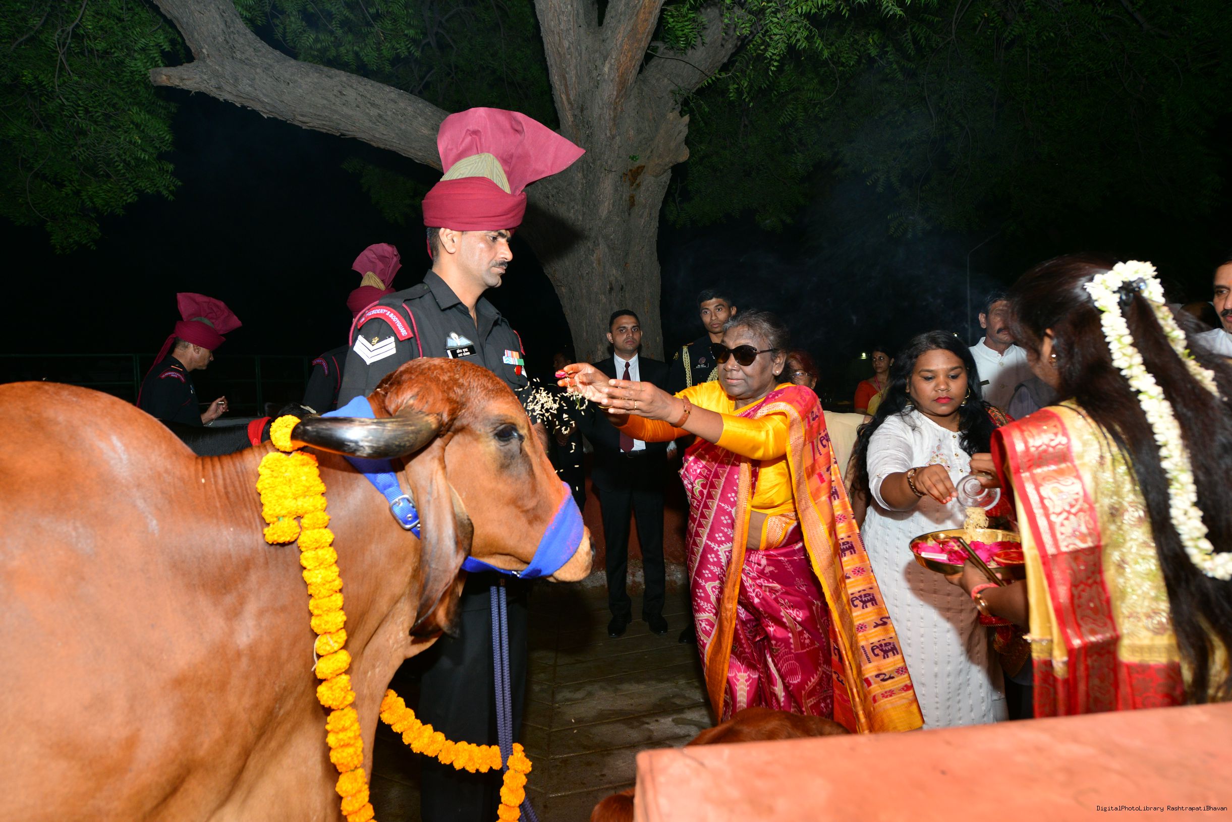 The President Visiting Gaushala at the President's Bodygaurd (PBG) at Rashtrapati Bhavan on Oct 24, 2022.