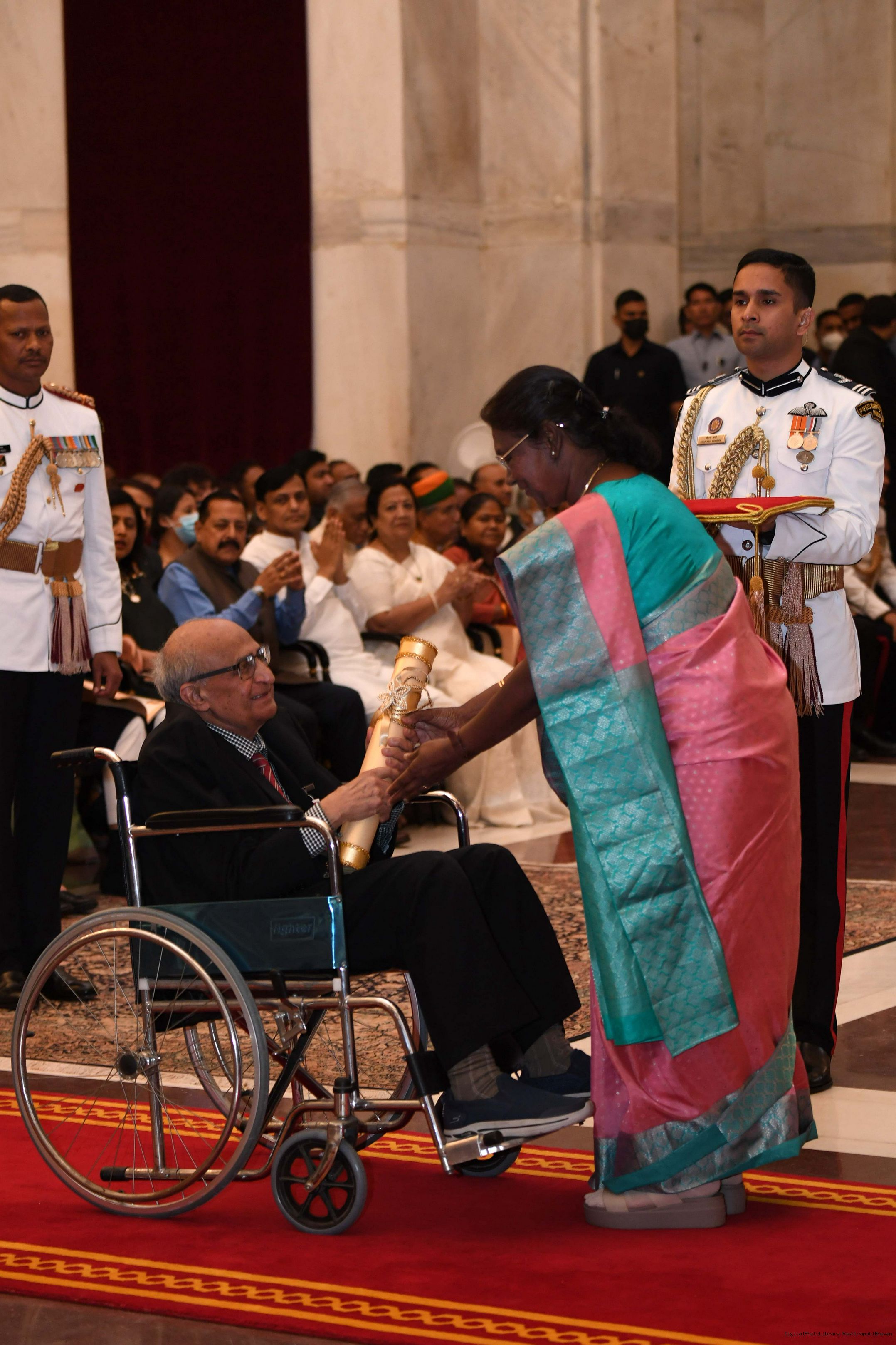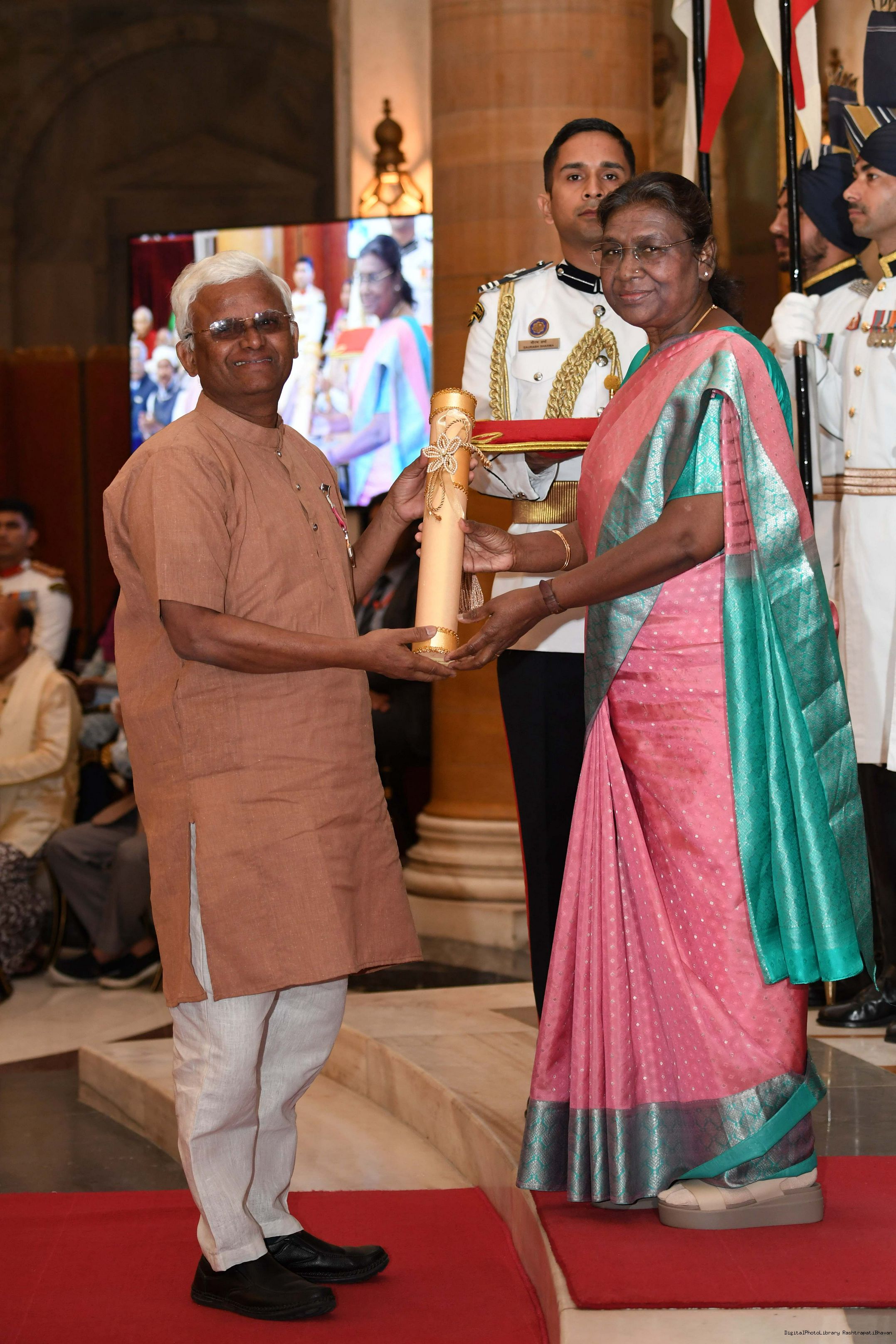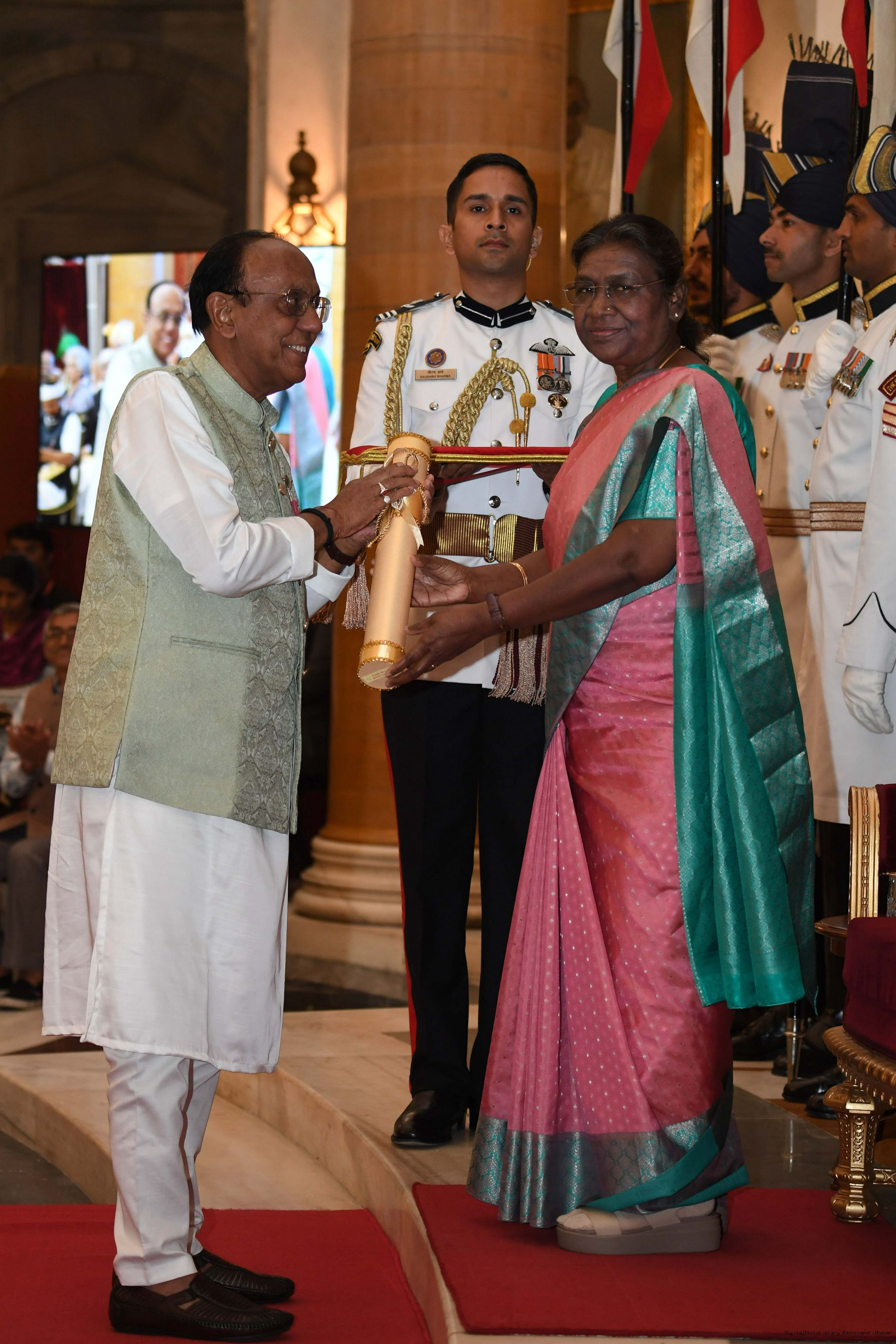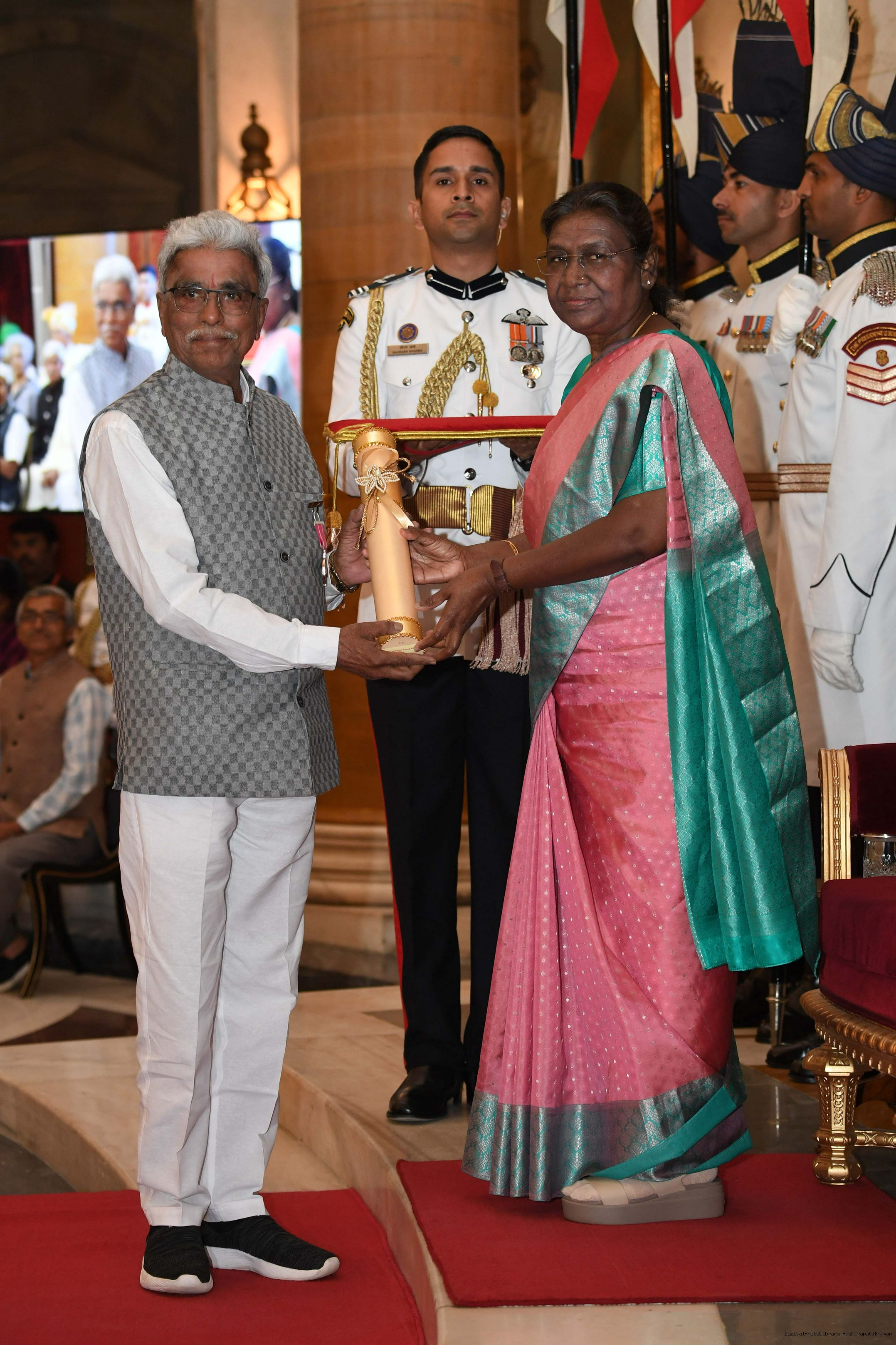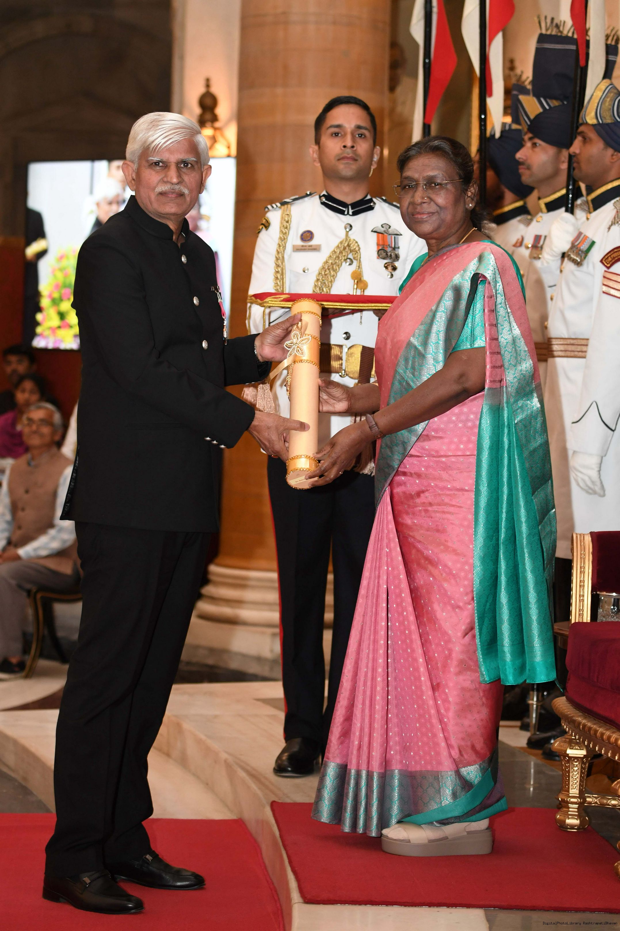 | Caption: | The President of India, Smt Droupadi Murmu presented 3 Padma Vibhushan, 5 Padma Bhushan and 47 Padma Shri Awards for the year 2023 at the Civil Investiture Ceremony-II held at Rashtrapati Bhavan on April 5, 2023. |