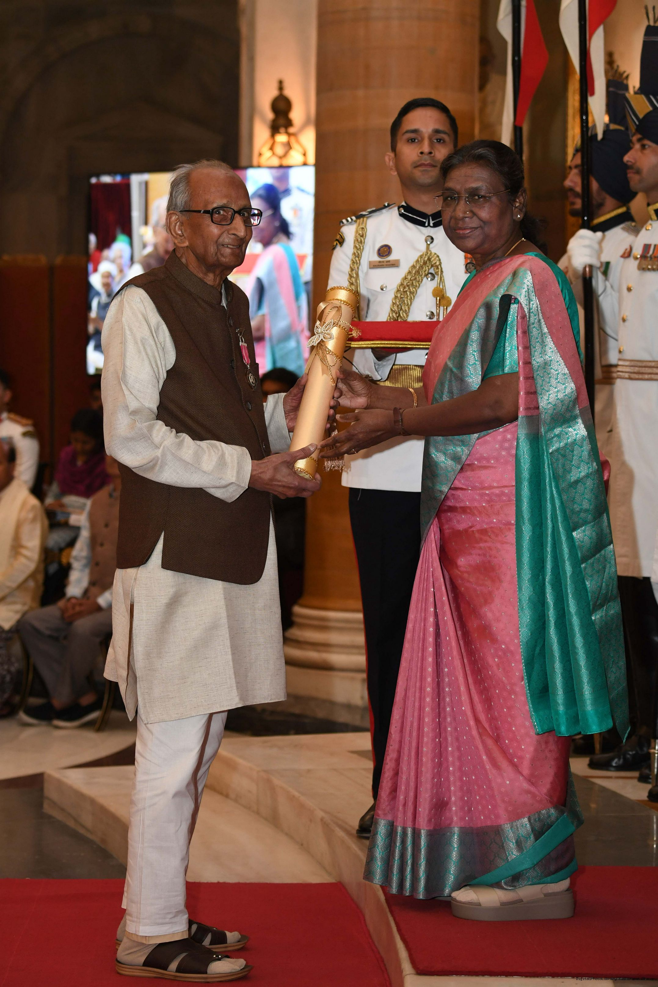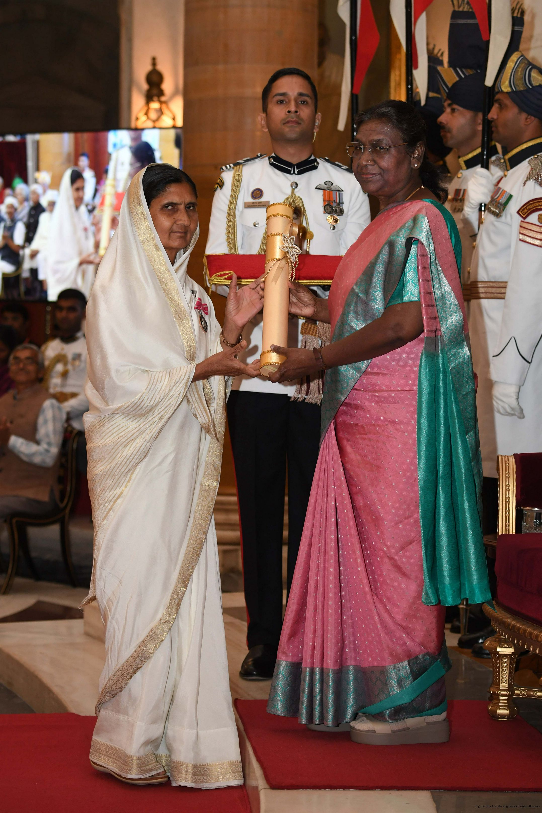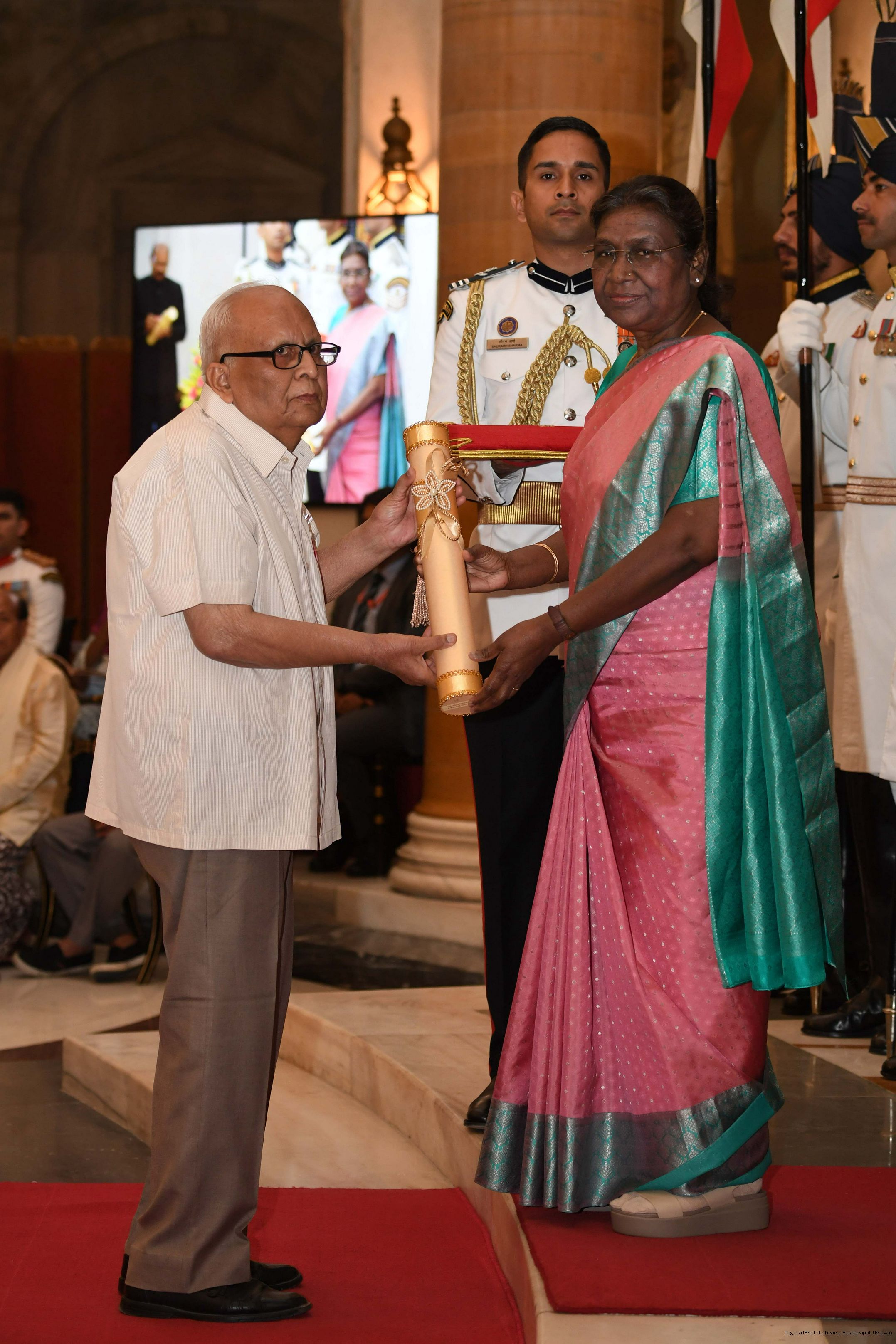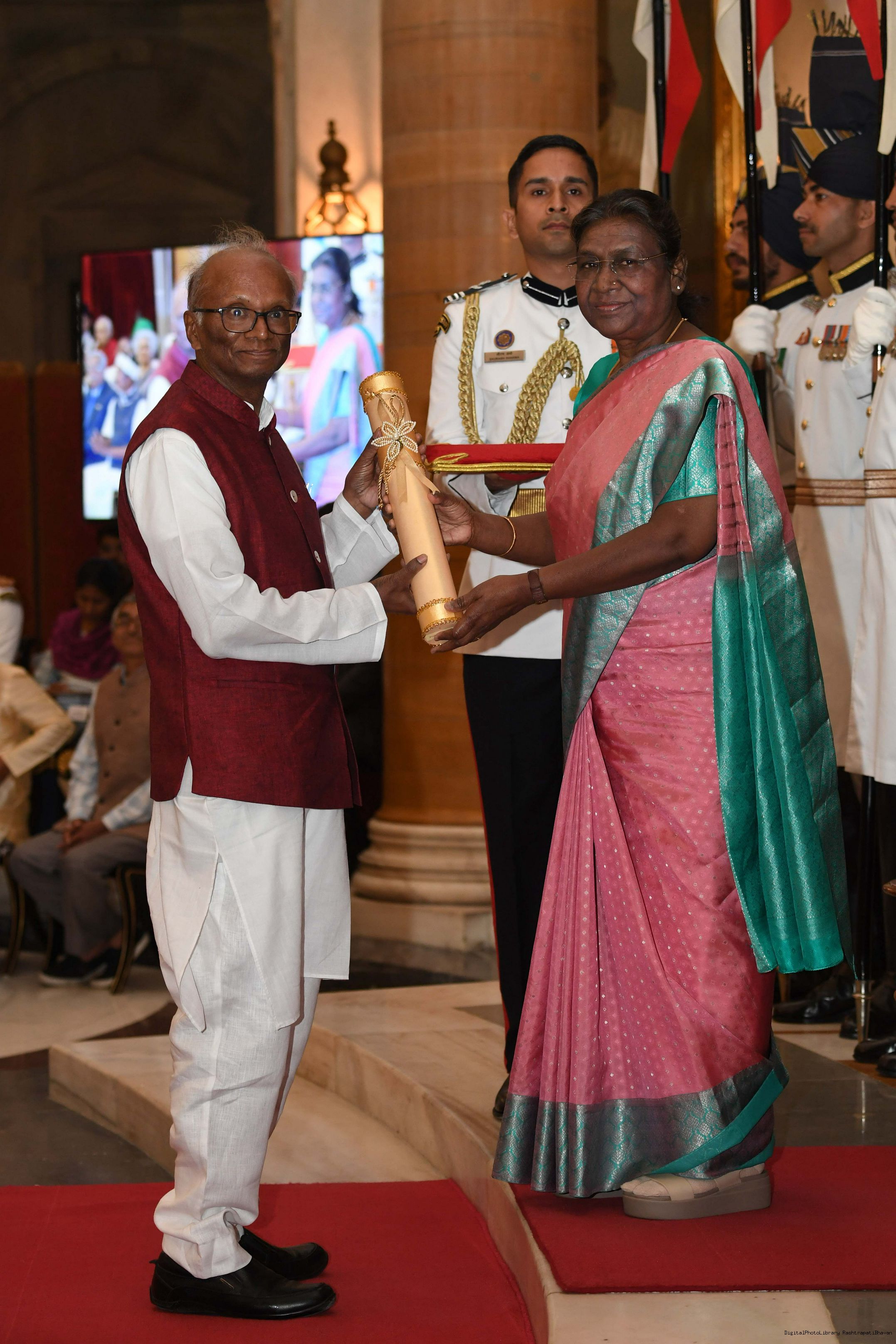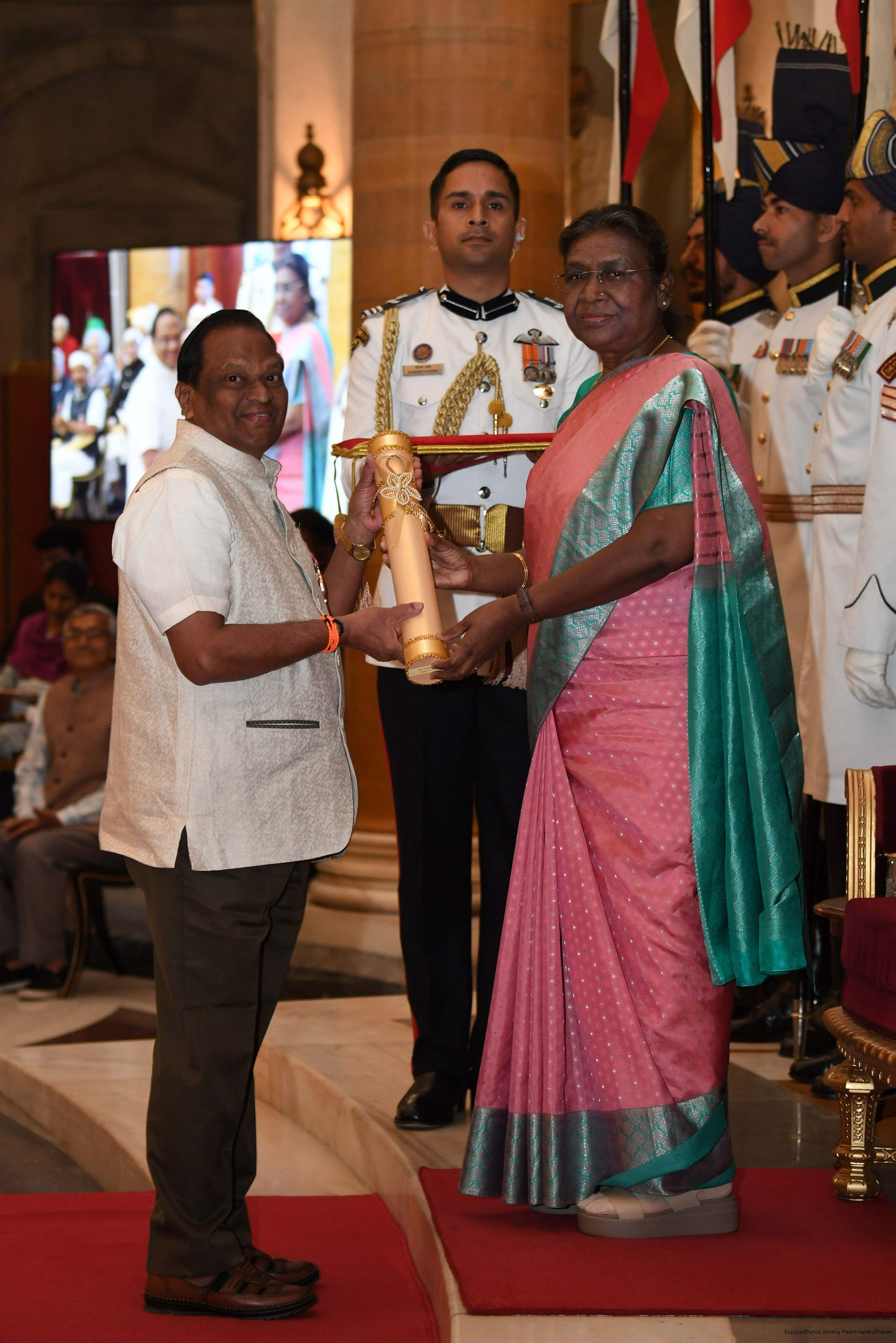| Caption: | The President of India, Smt Droupadi Murmu presented 3 Padma Vibhushan, 5 Padma Bhushan and 47 Padma Shri Awards for the year 2023 at the Civil Investiture Ceremony-II held at Rashtrapati Bhavan on April 5, 2023. |