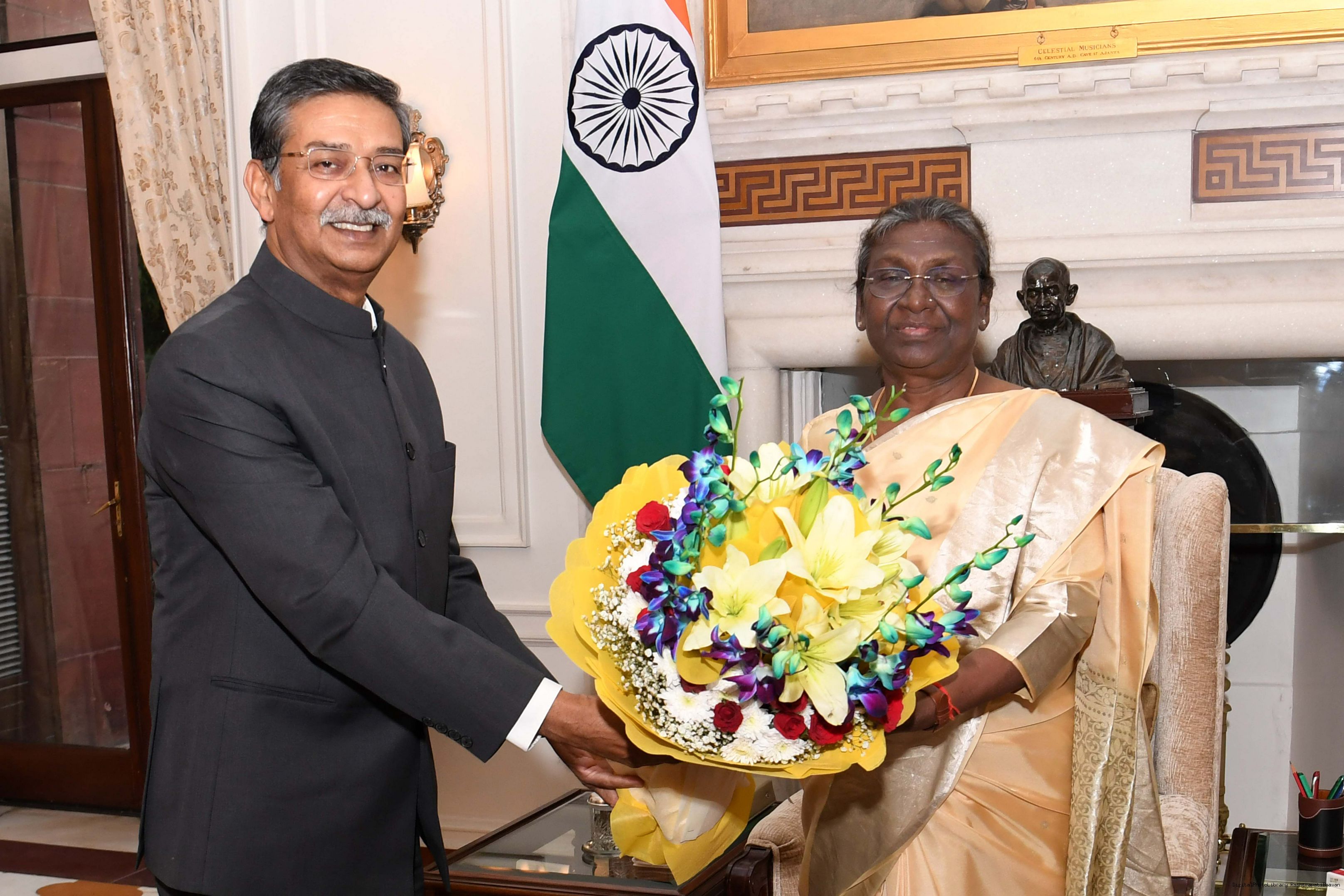 | Caption: | Shri Bharat Lal, Director General, National Centre for Good Governance (NCGG), Ministry of Personnel, Public Grievances Pensions meeting with the President of India, Smt. Droupadi Murmu, at Rashtrapati Bhavan on Oct 25, 2022. |