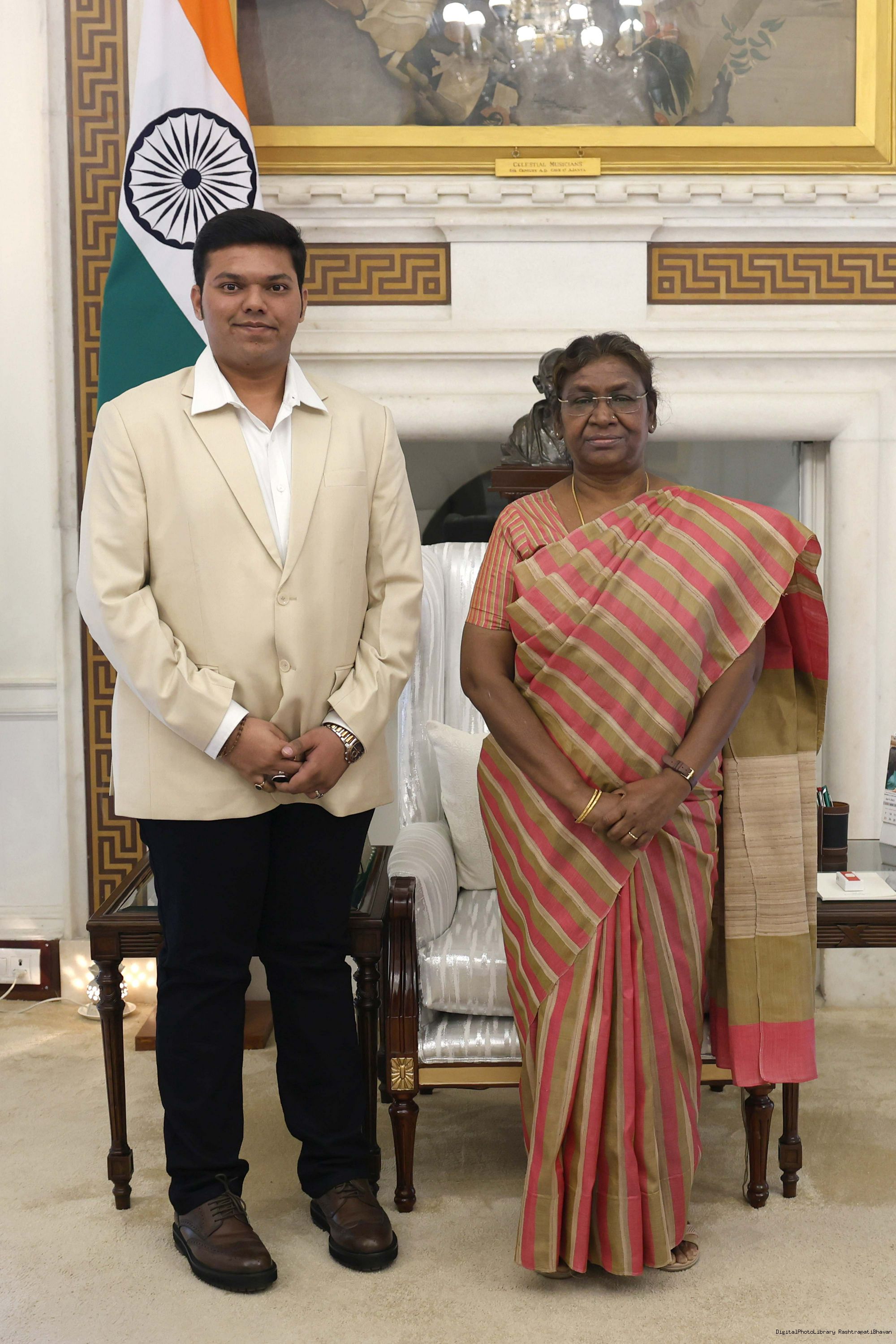 | Caption: | Shri Arjun Deshpande, Founder CEO of Generic Aadhaar meeting with the President of India Smt. Droupadi Murmu at Rashtrapati Bhavan on April 11, 2023 |