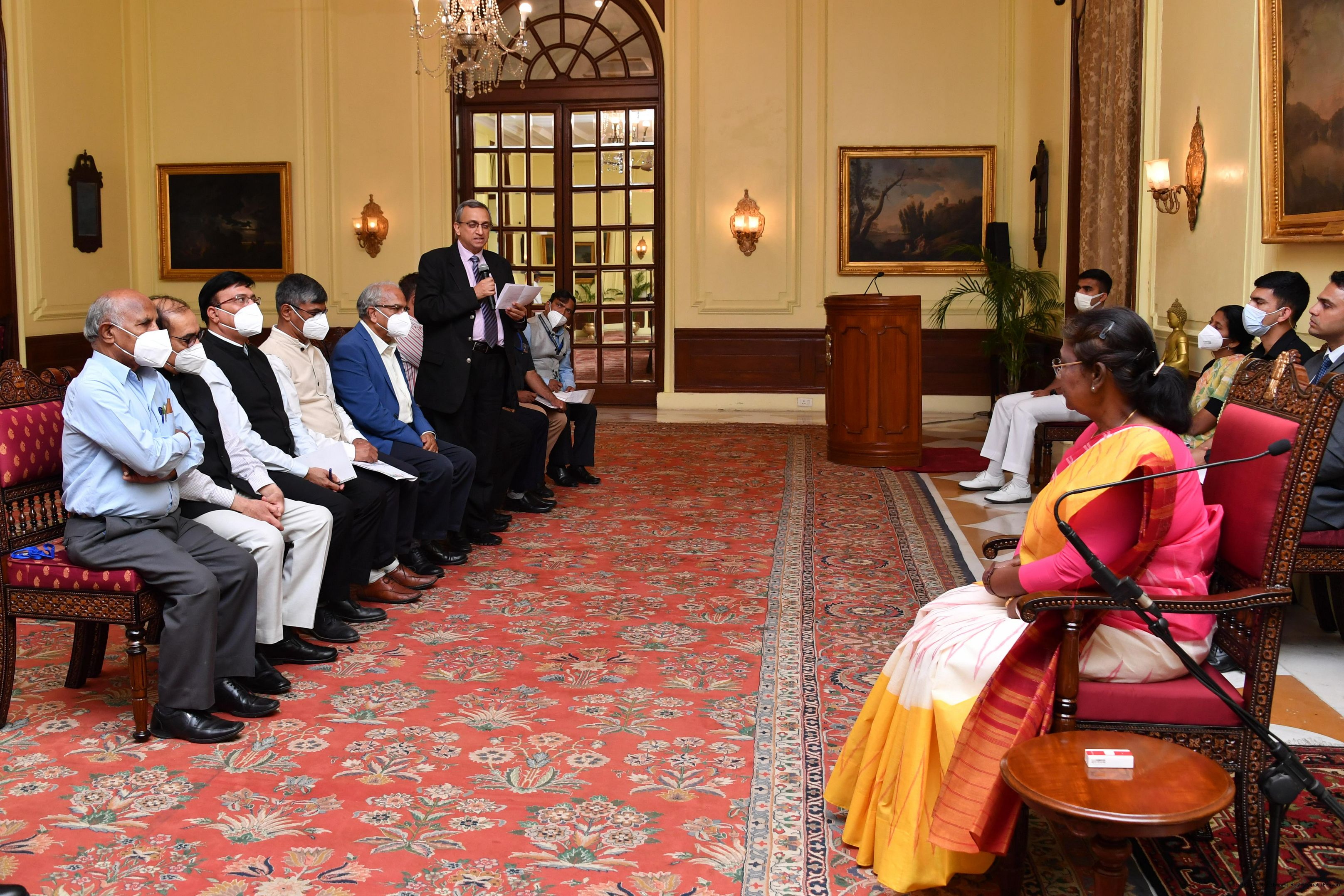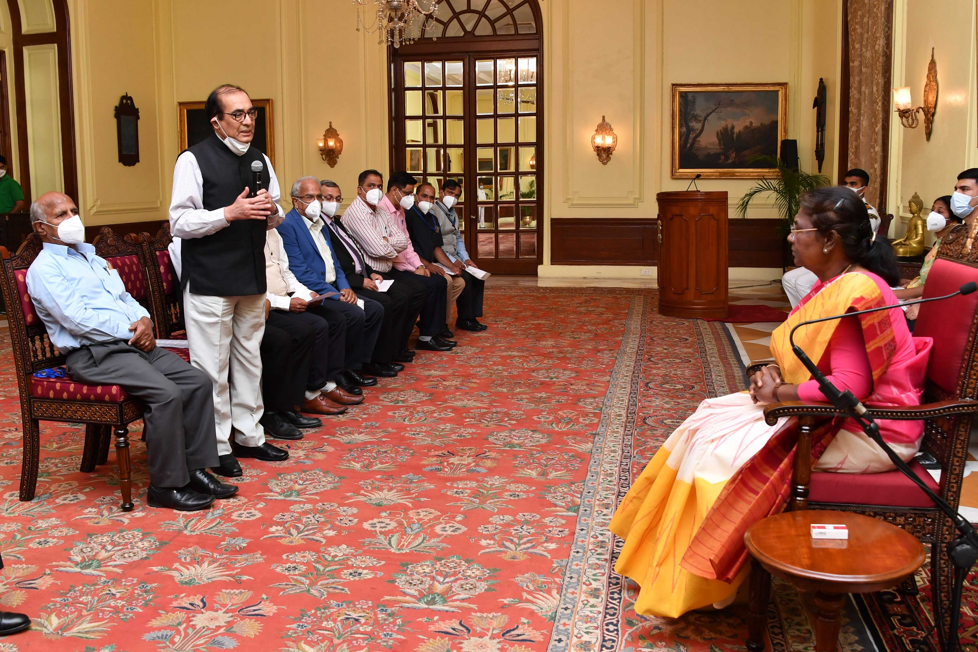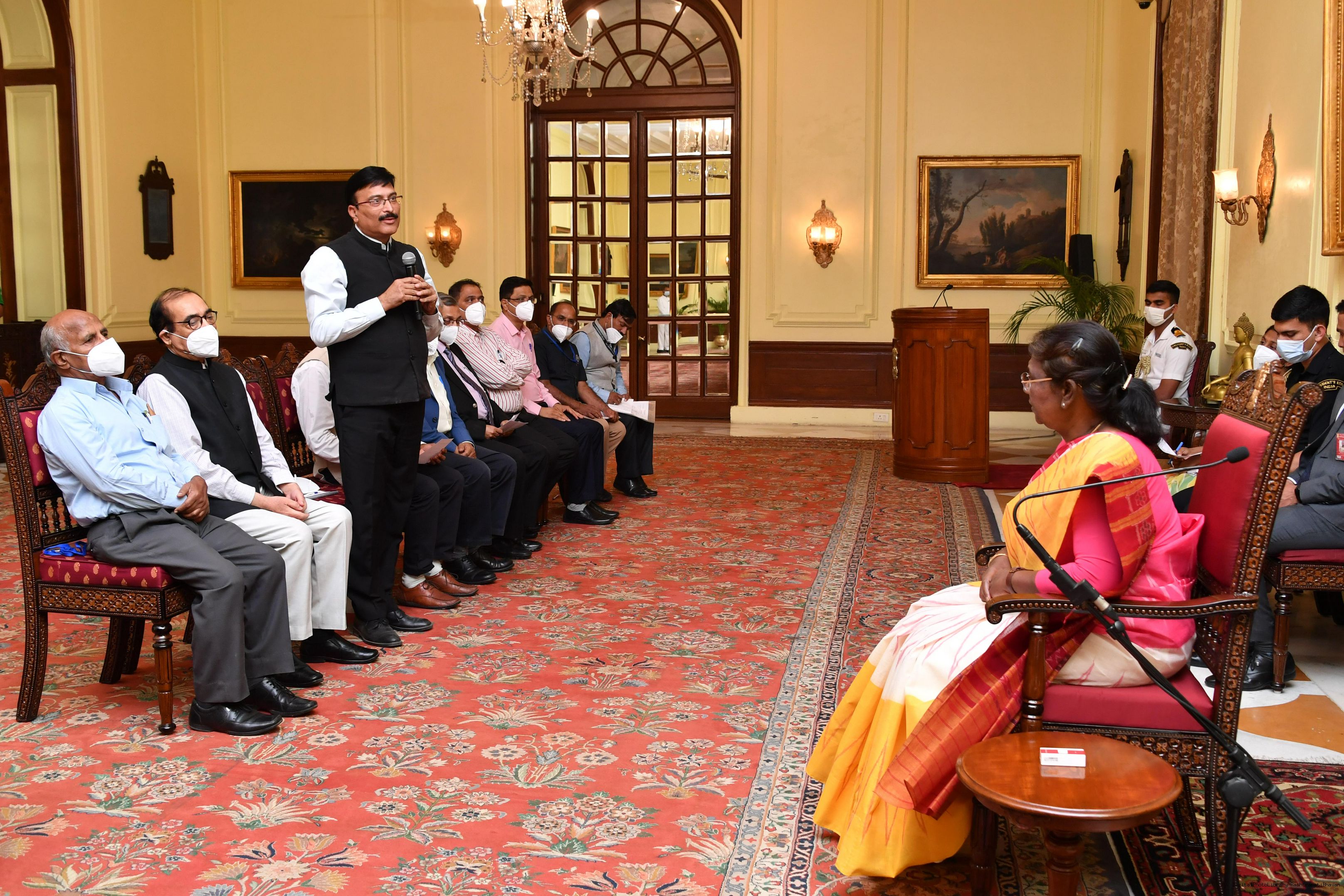 | Caption: | The President of India, Smt Droupadi Murmu presentation of Rapportization Summary of the outcome of the five round table (FINE-2023)[Secretary, ASP, Press Secretary, MSP, Addl. Press Secretary, PSP} at Rashtrapati Bhavan on April 13, 2023 |