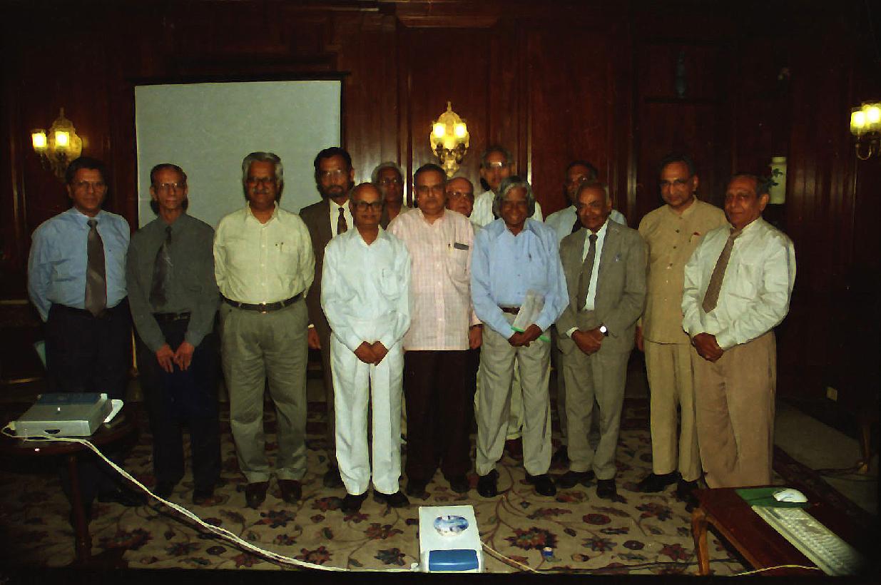 | Caption: | The Prof P Rama Rao, President & other Office- bearers of the Indian National Academy of Engineering calling on the President of India, Dr A P J Abdul Kalam on the Presentation of ''Computer Aided Literacy Programme'' by Prof P N Murthy, Fellow of Academy at the Committee Room of Rashtrapati Bhavan in New Delhi on Aug 15, 2002 |
