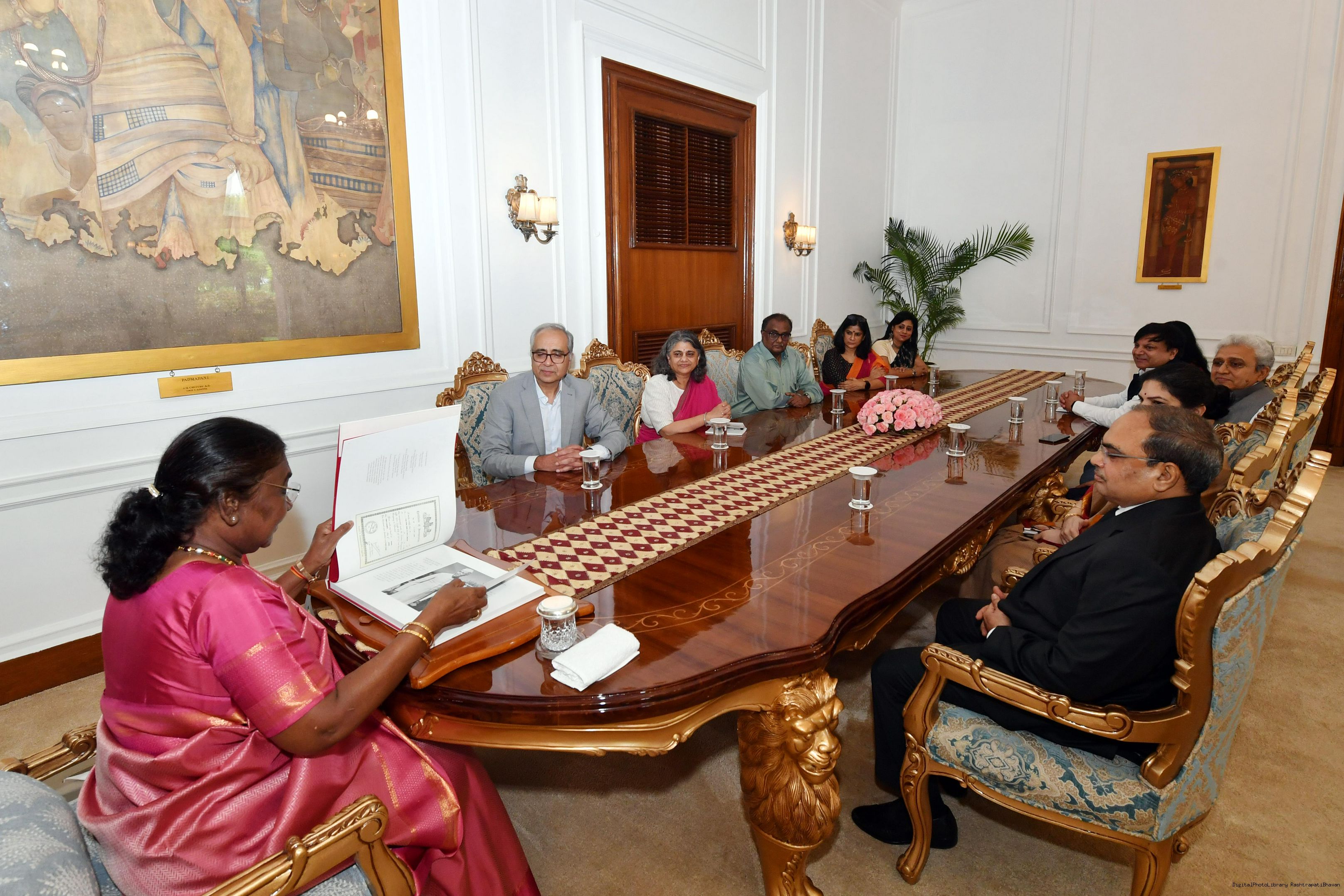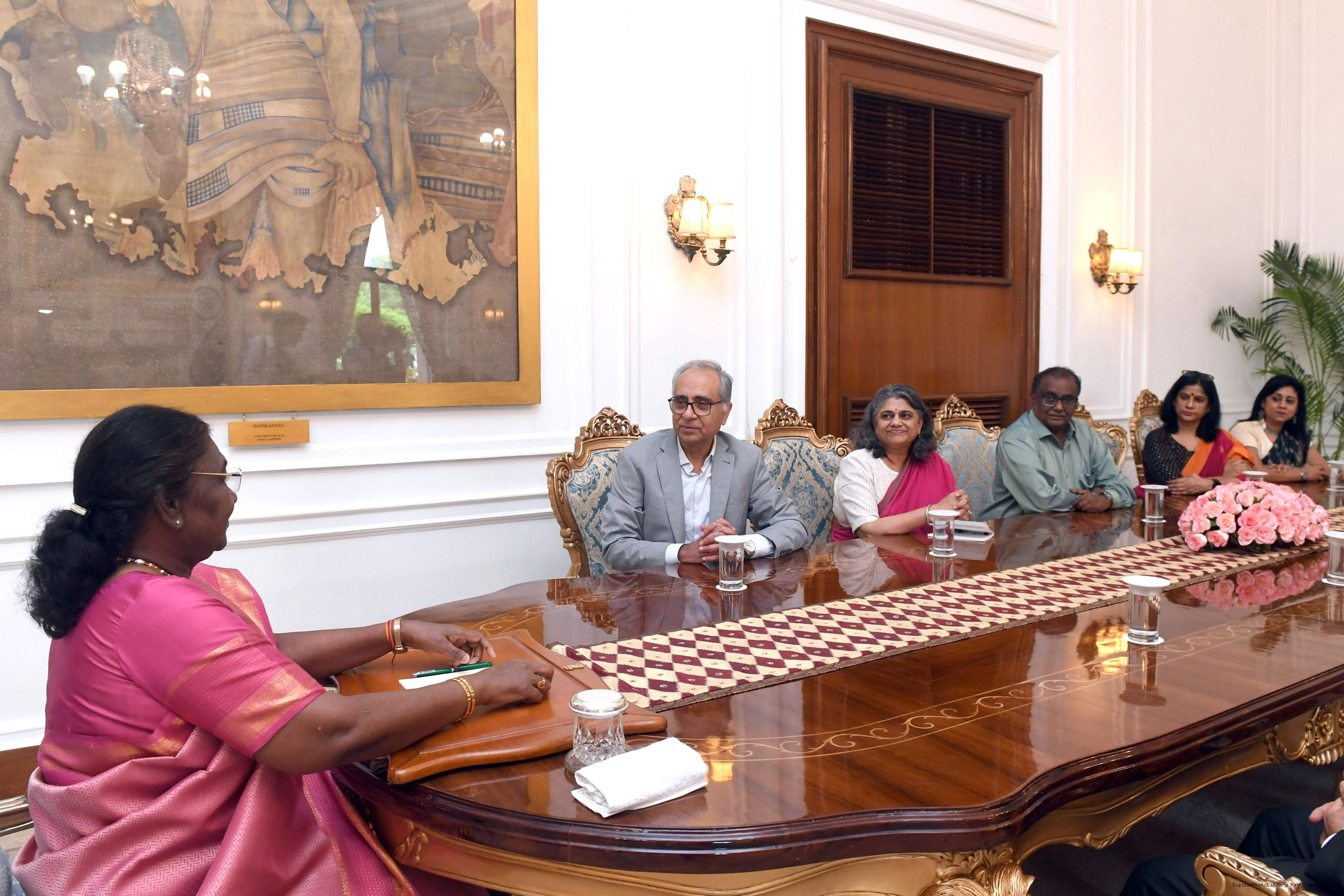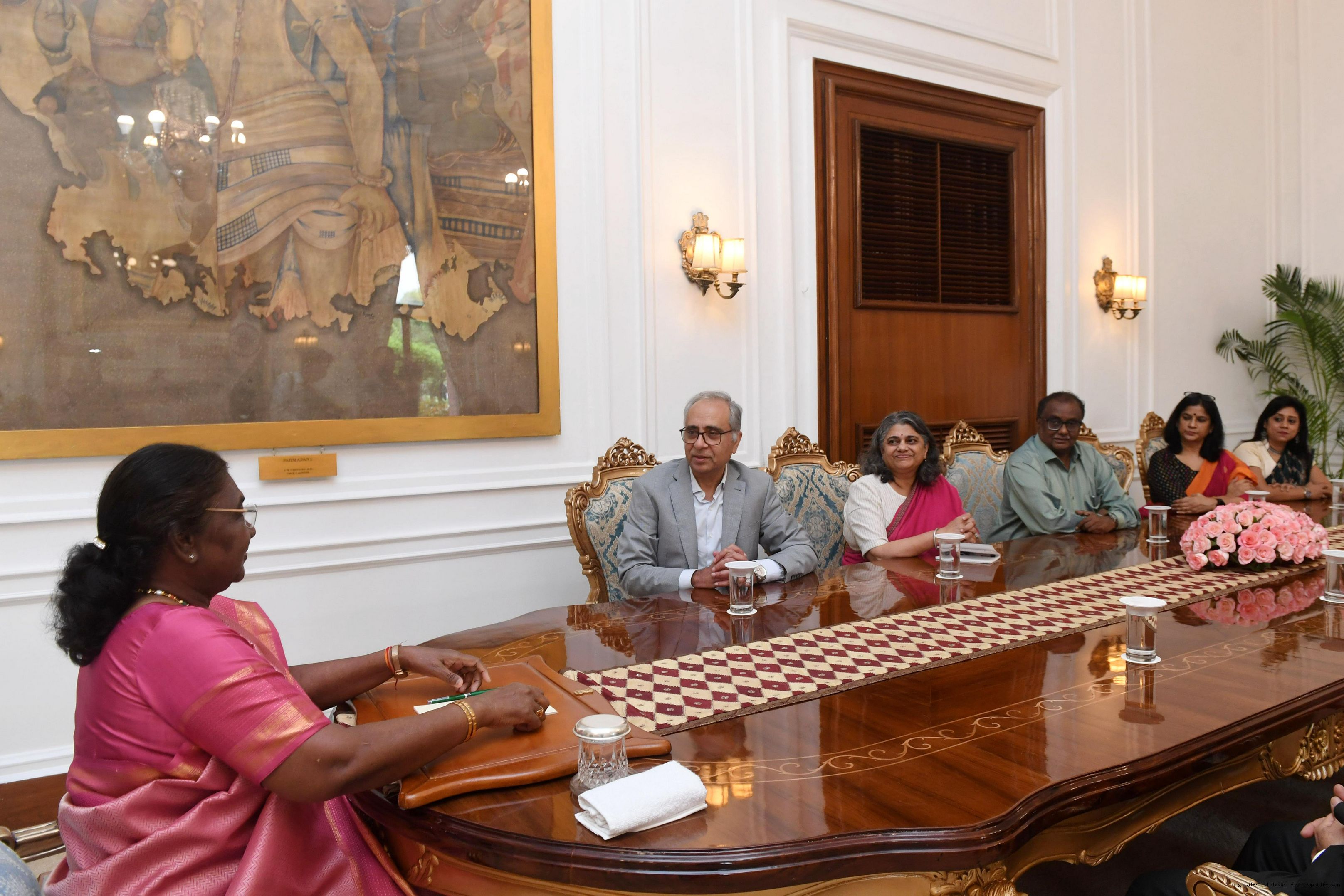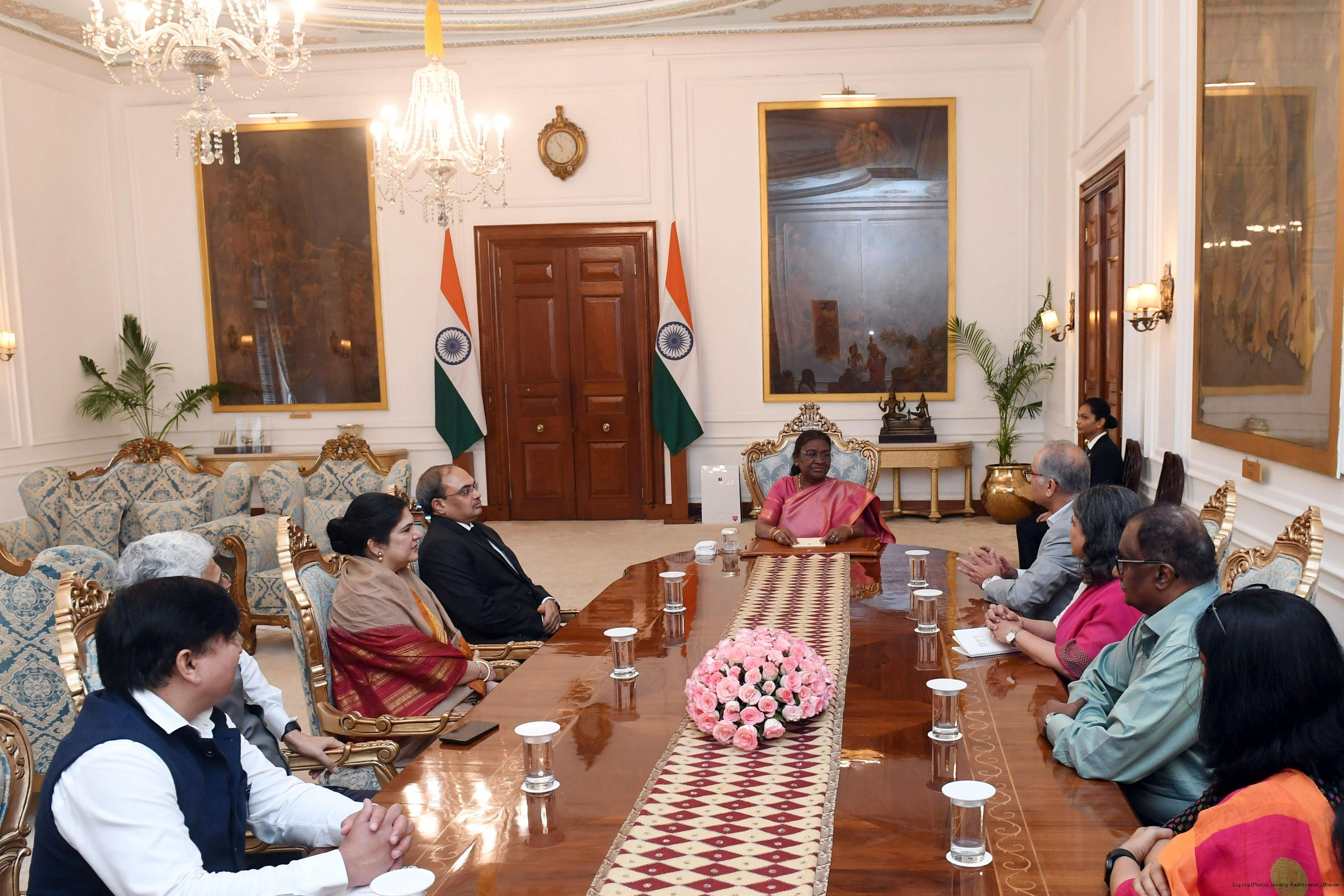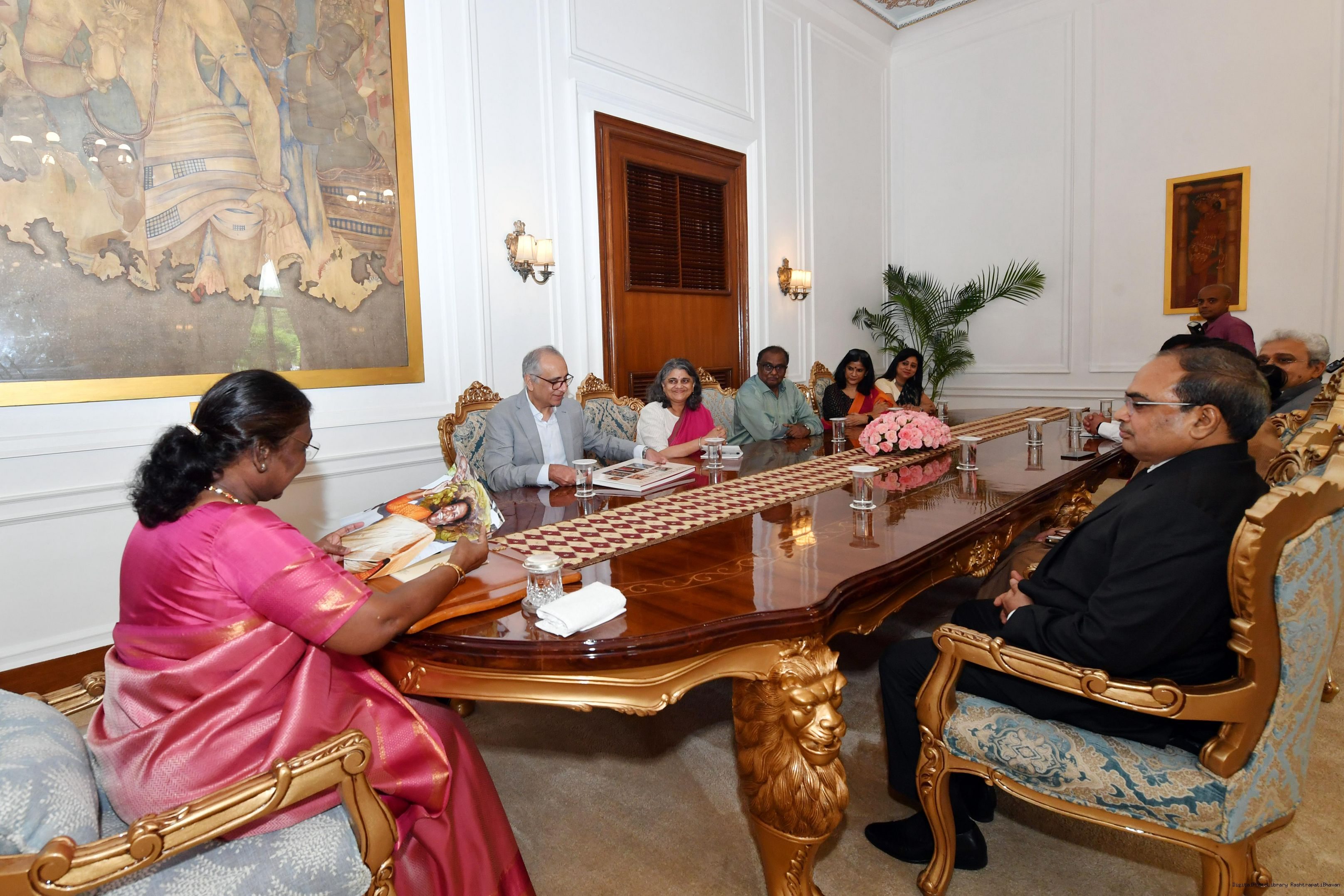 | Caption: | A delegation of Press Trust of India (PTI), led by Shri Vijay Joshi, CEO and Editor-in-Chief called on the President of India Smt. Droupadi Murmu at Rashtrapati Bhavan on August 28, 2024. |