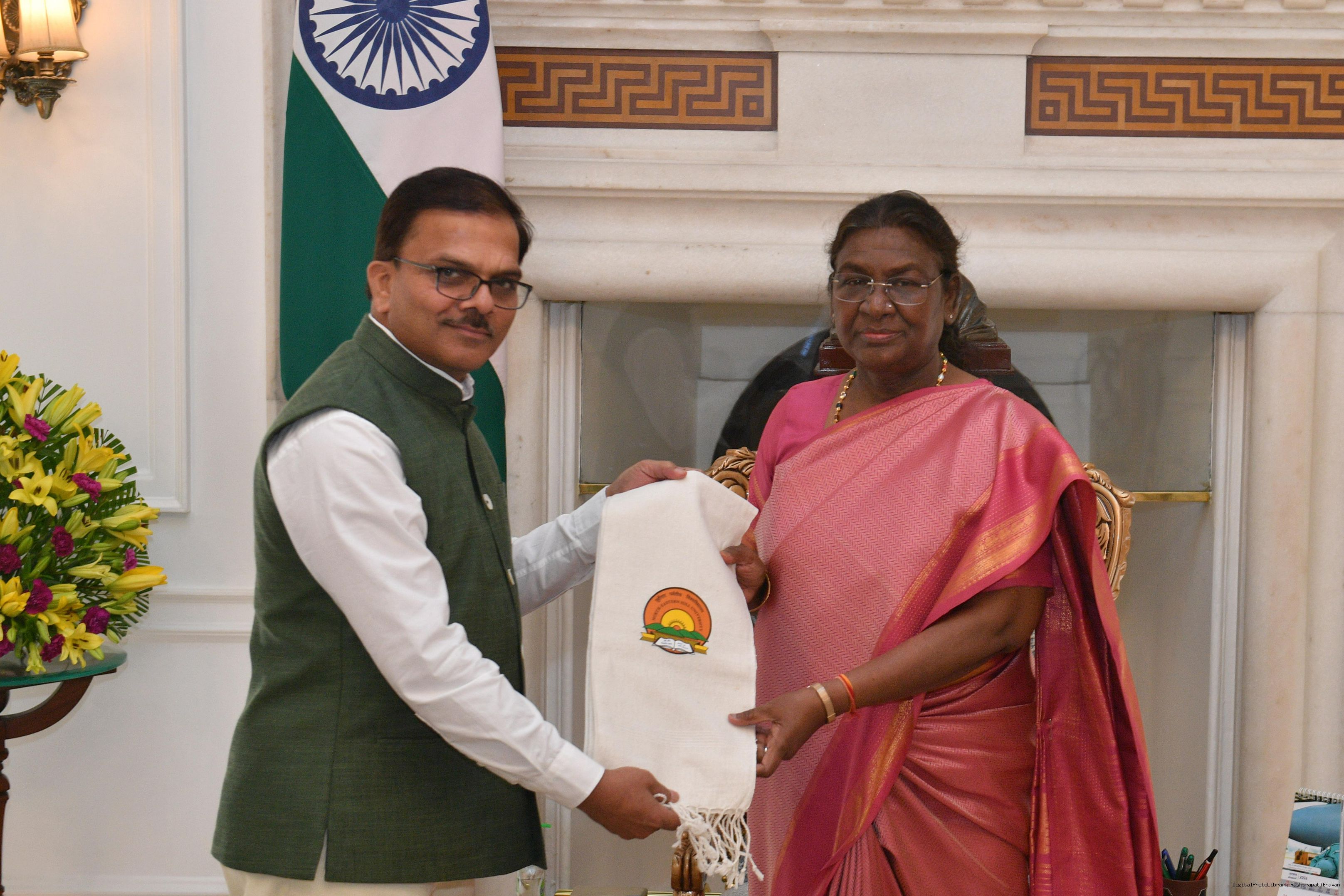 | Caption: | Prof. Prabha Shankar Shukla, Vice-Chancellor, North-Eastern Hill University, Shillong meeting with the President of India Smt. Droupadi Murmu at Rashtrapati Bhavan on August 28, 2024. |
