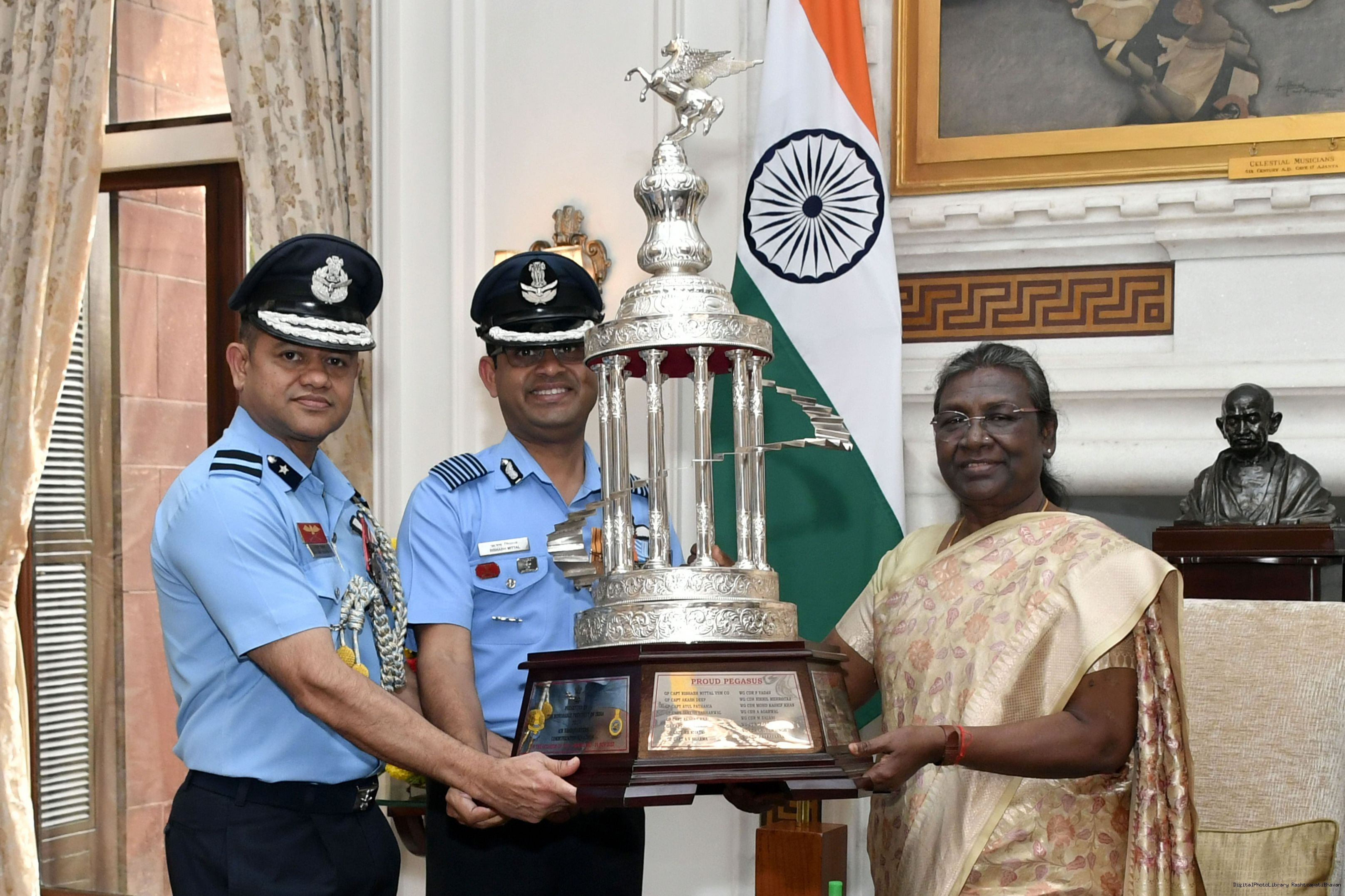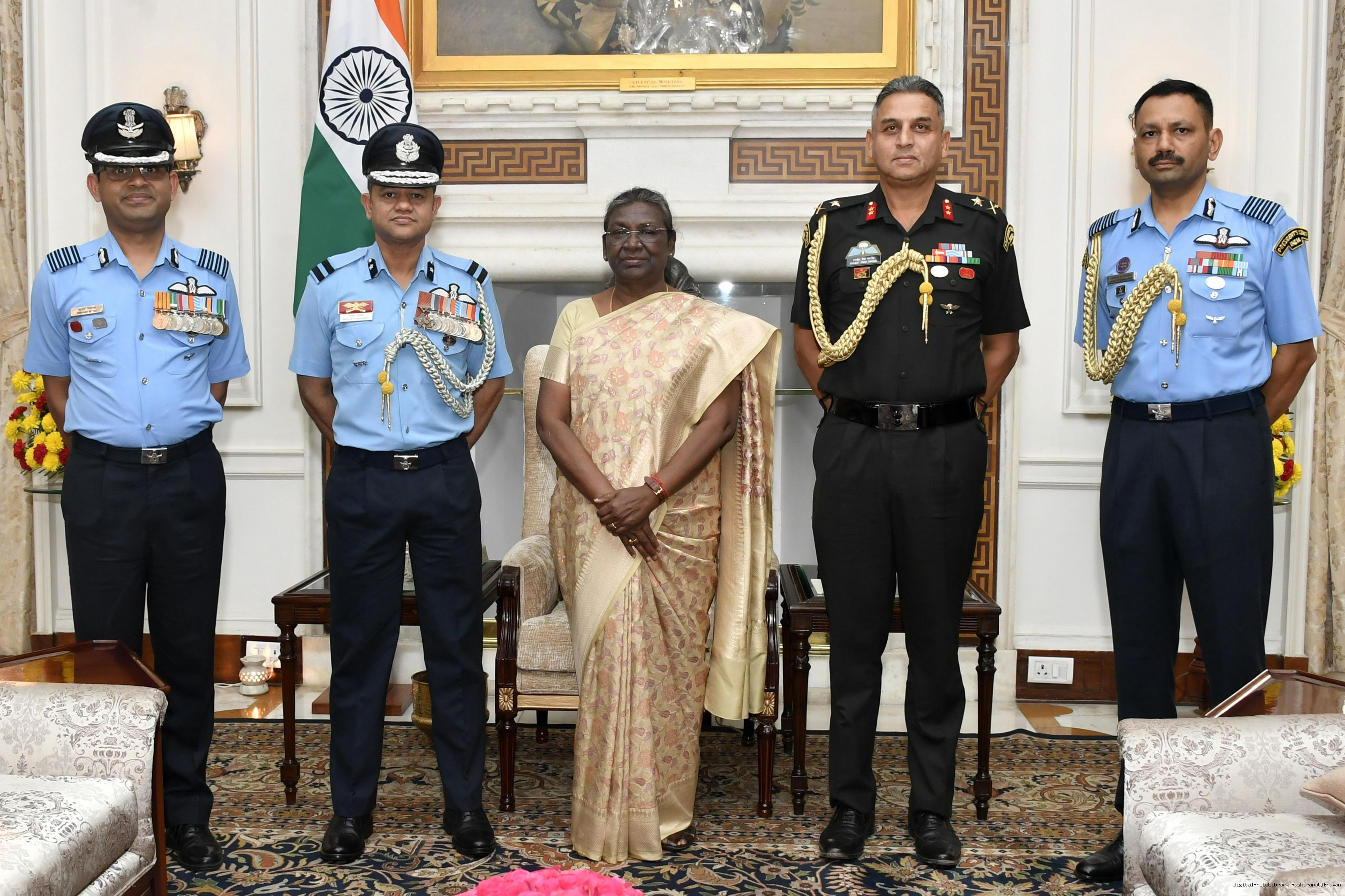 | Caption: | Air Cmde Sanjeev Vashishth, VM, AOC, AFS Palam and Group Capt Rishabh Mittal, VSM, CO, Air HQ Communication Squadron along with others meeting with the President of India, Smt. Droupadi Murmu, at Rashtrapati Bhavan on Nov 01, 2022. |