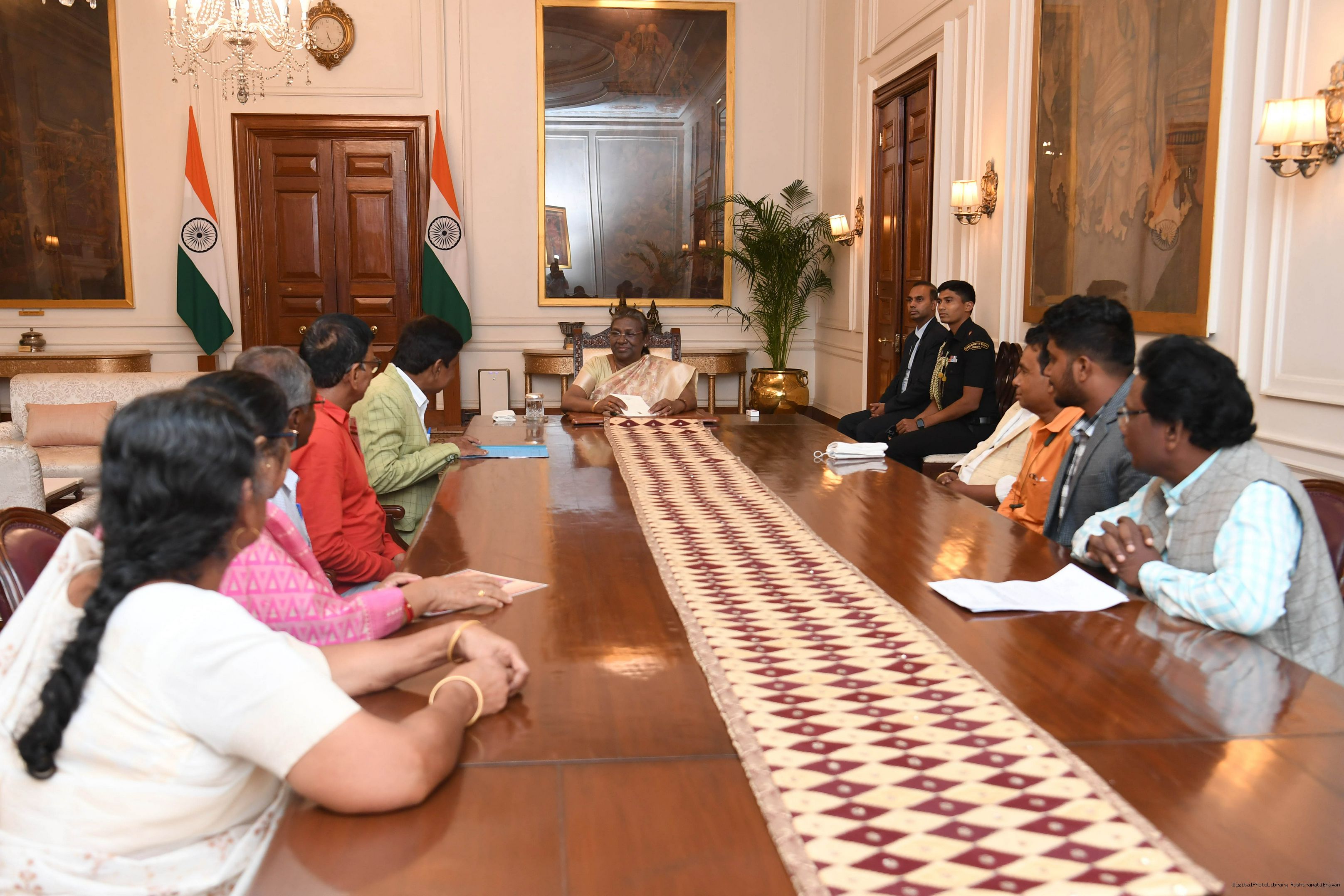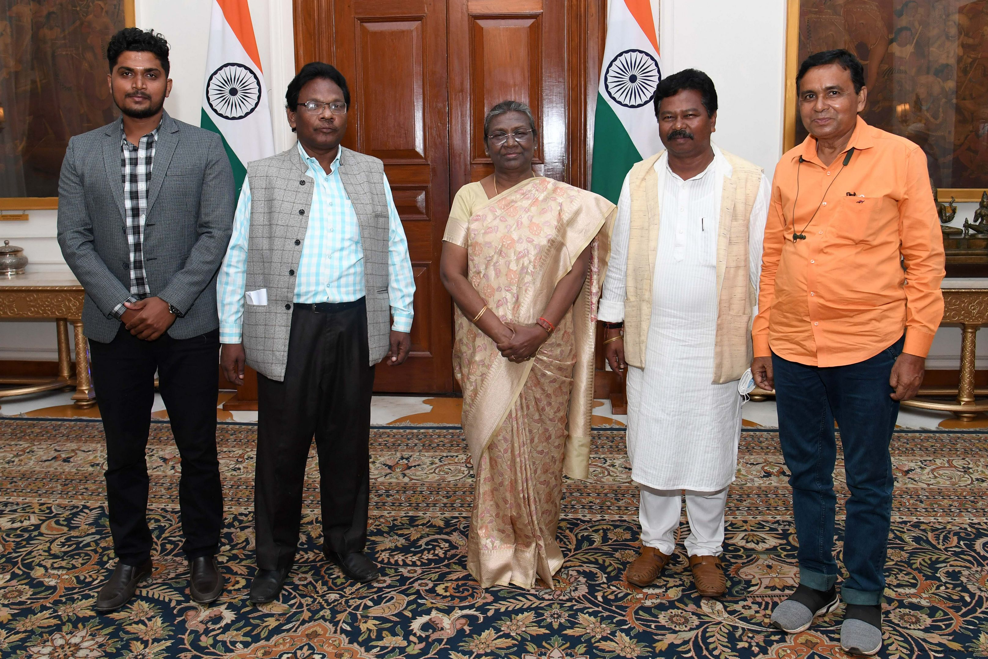 | Caption: | Shri Bishweswar Tudu, Union MoS for Jal Shakti Tribal Affairas along with others meeting with the President of India, Smt. Droupadi Murmu, at Rashtrapati Bhavan on Nov 01, 2022. |