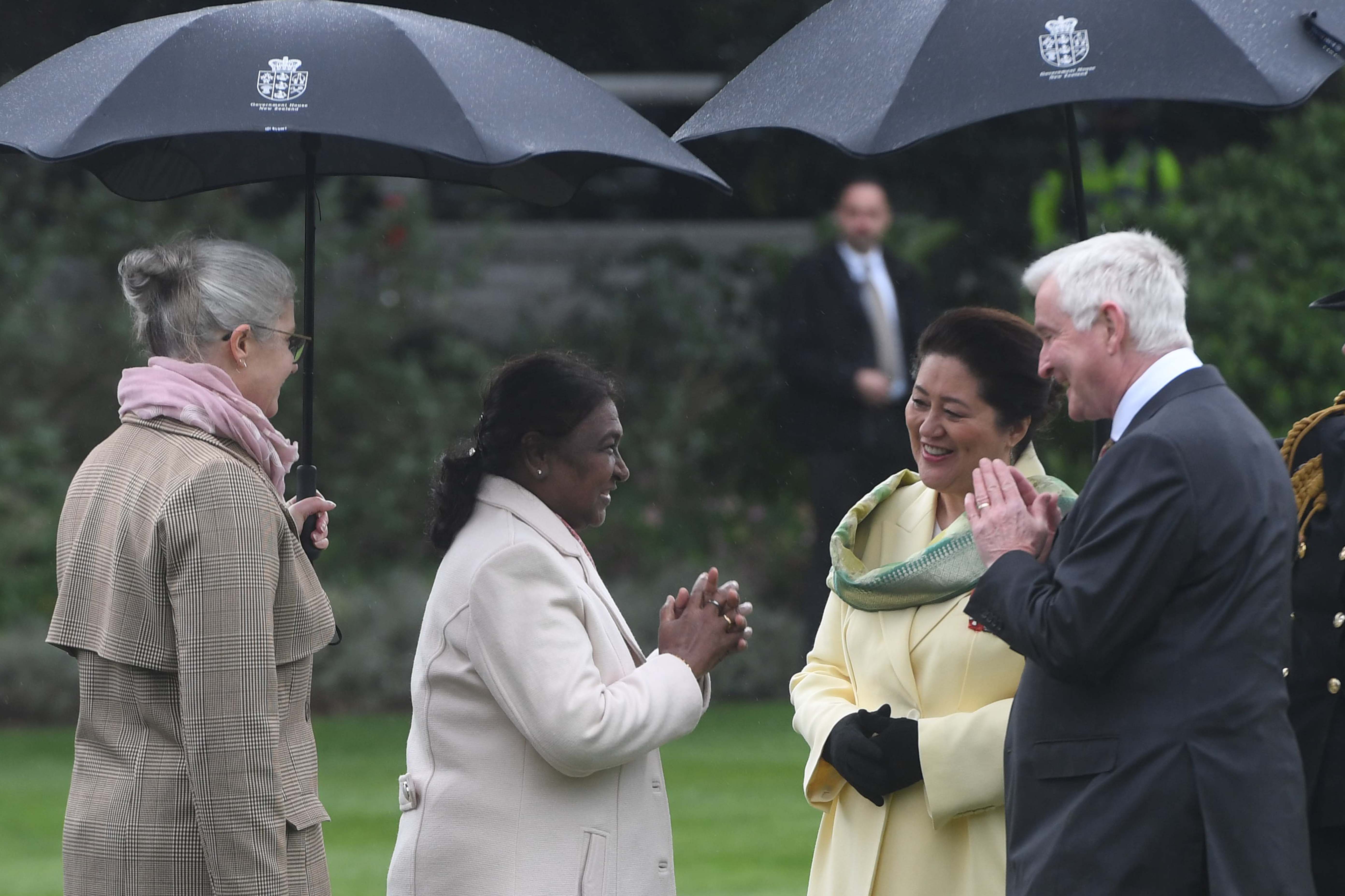 | Caption: | The President of India, Smt. Droupadi Murmu was warmly received by Governor General Dame Cindy Kiro at Government House in Wellington, New Zealand on August 8, 2024. |