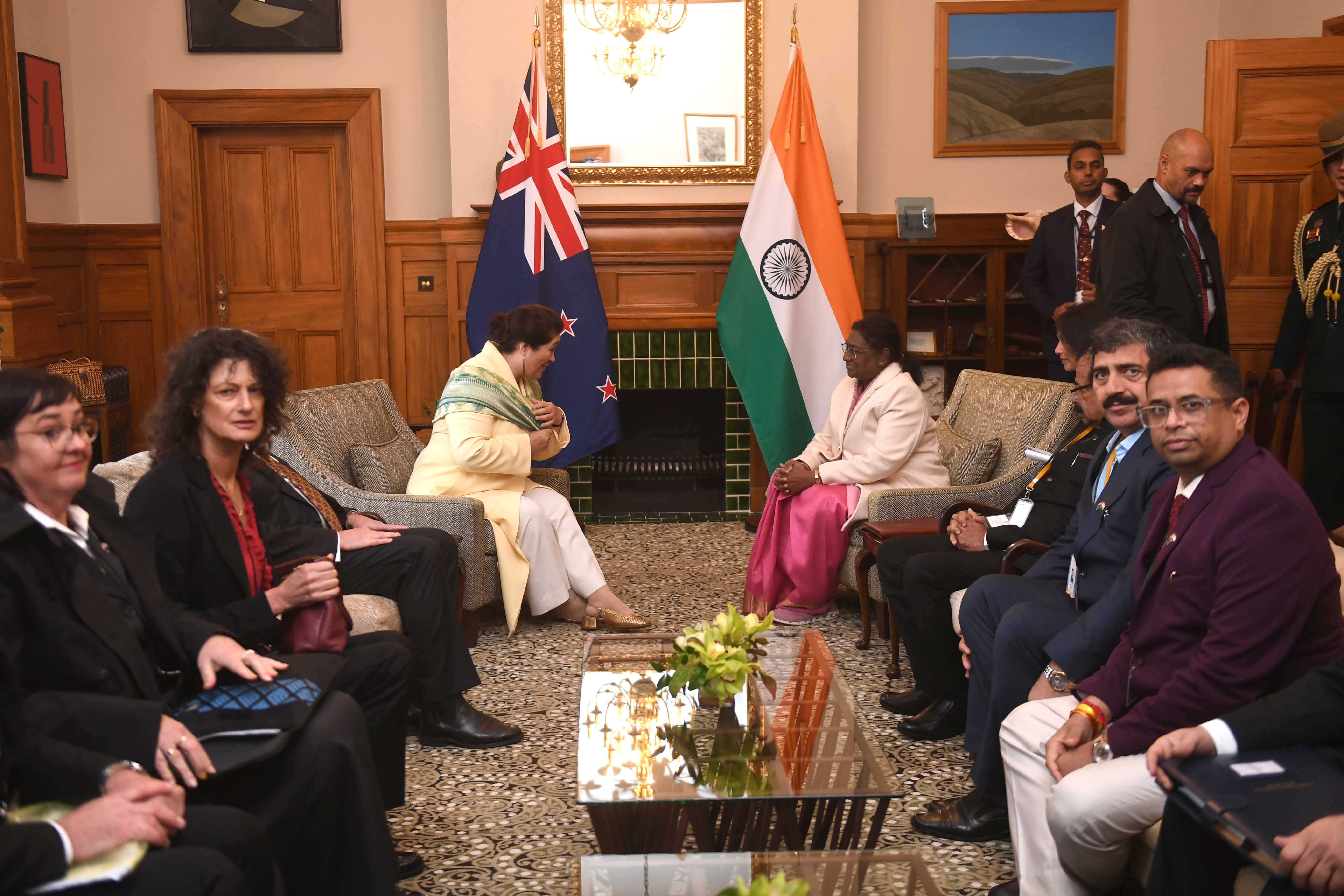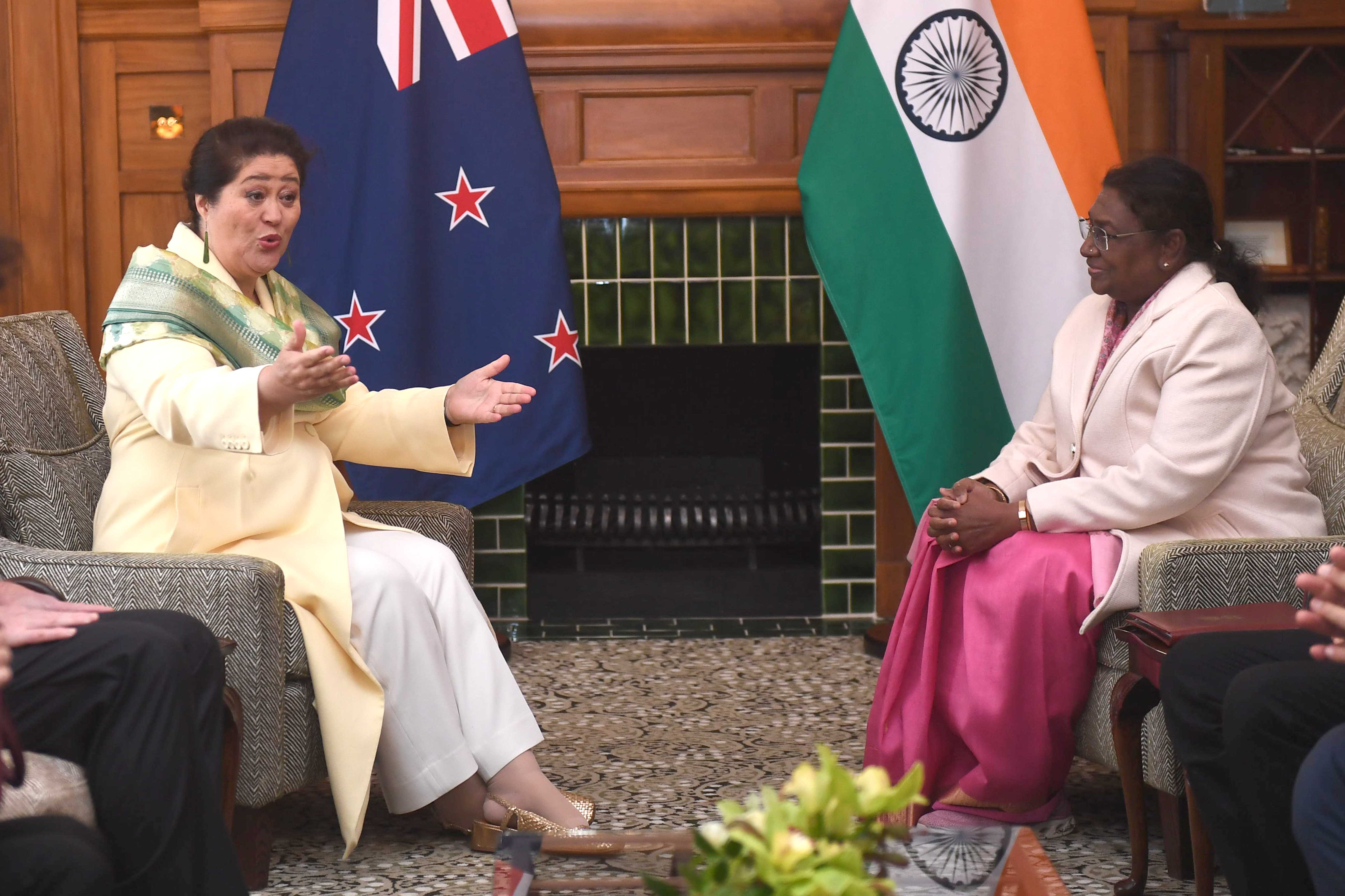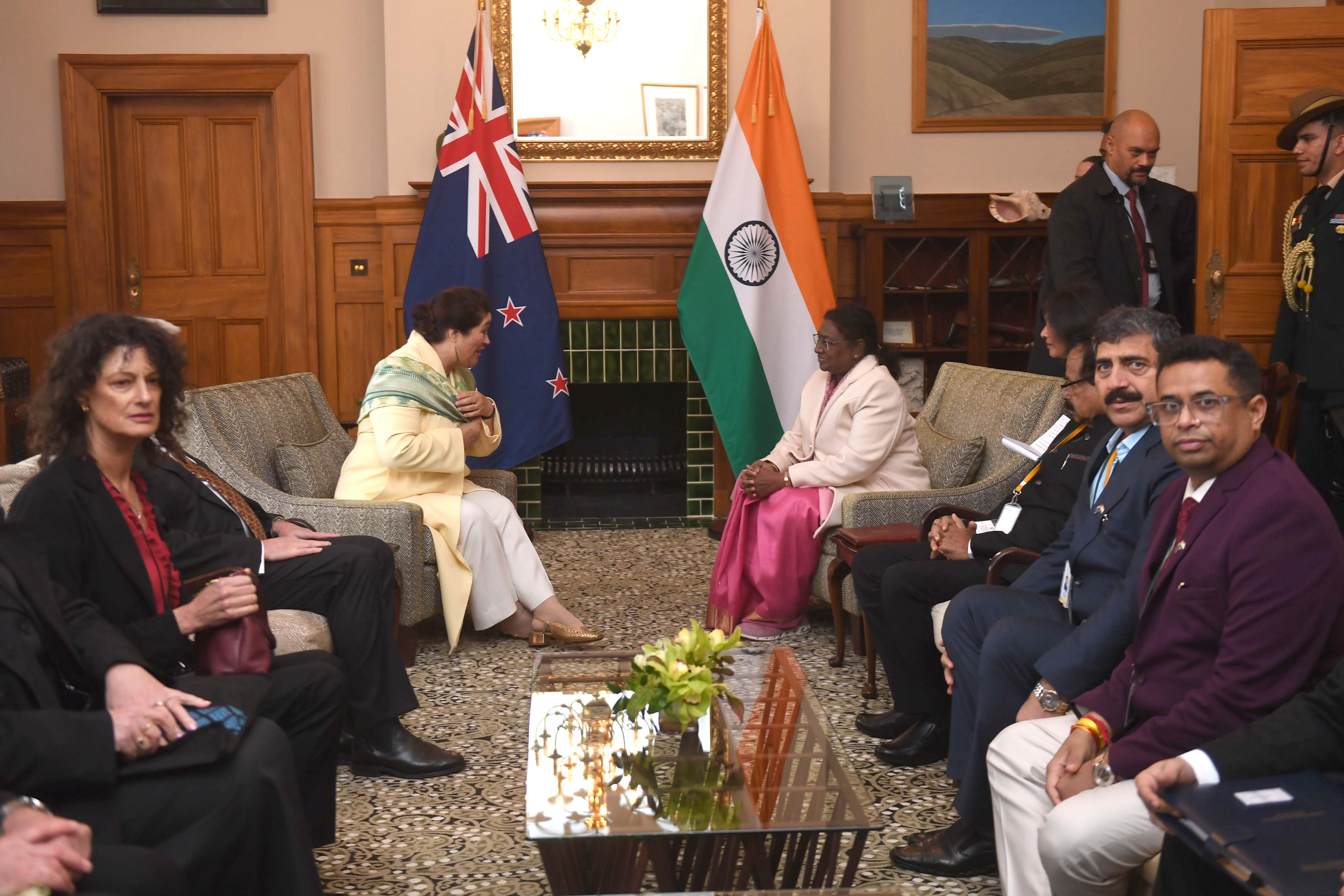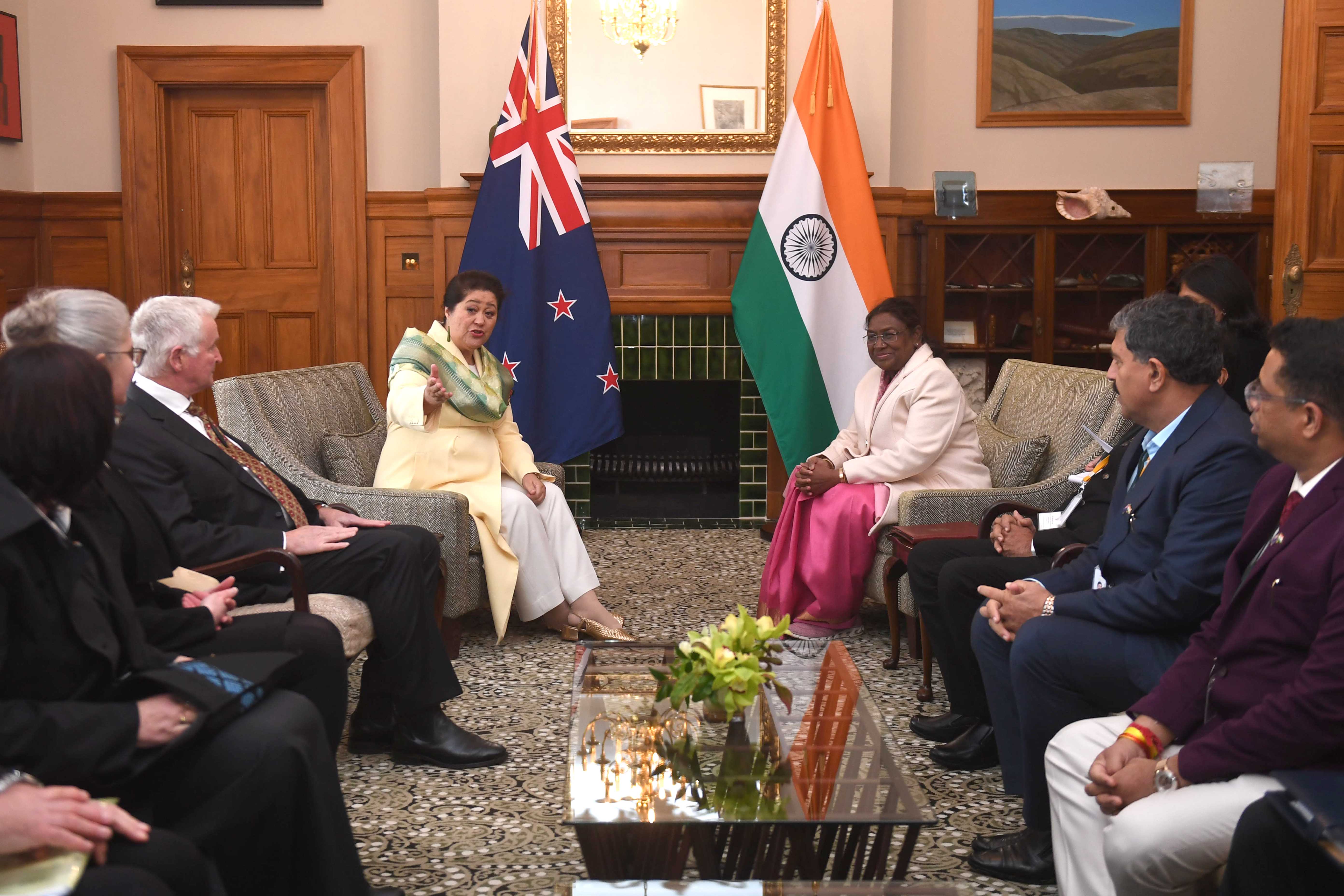 | Caption: | The President of India, Smt. Droupadi Murmu meeting with H.E. Rt. Hon. Dame Cindy Kiro, Governor General of New Zealand at Government House, Wellington , New Zealand on August 8, 2024. |