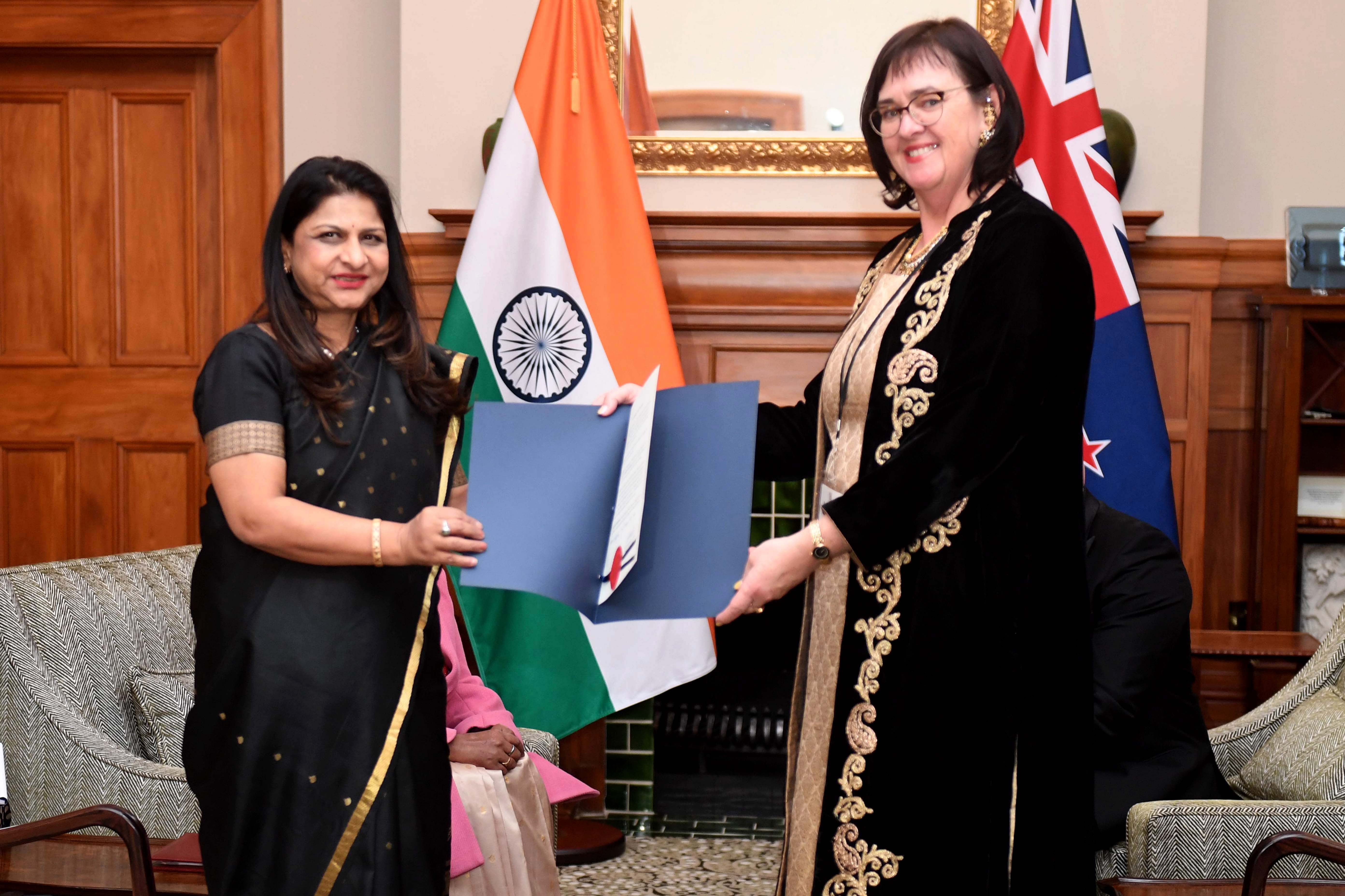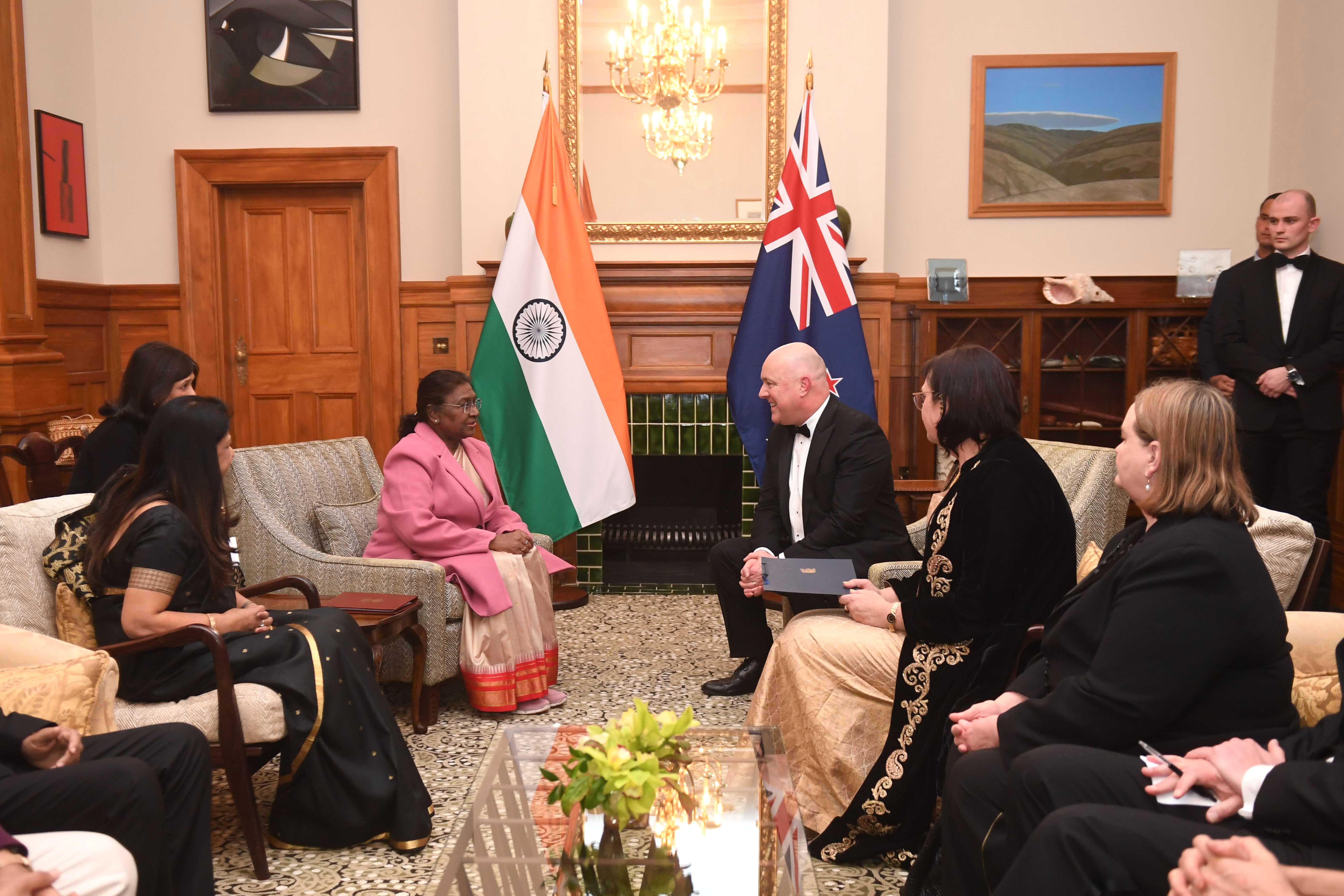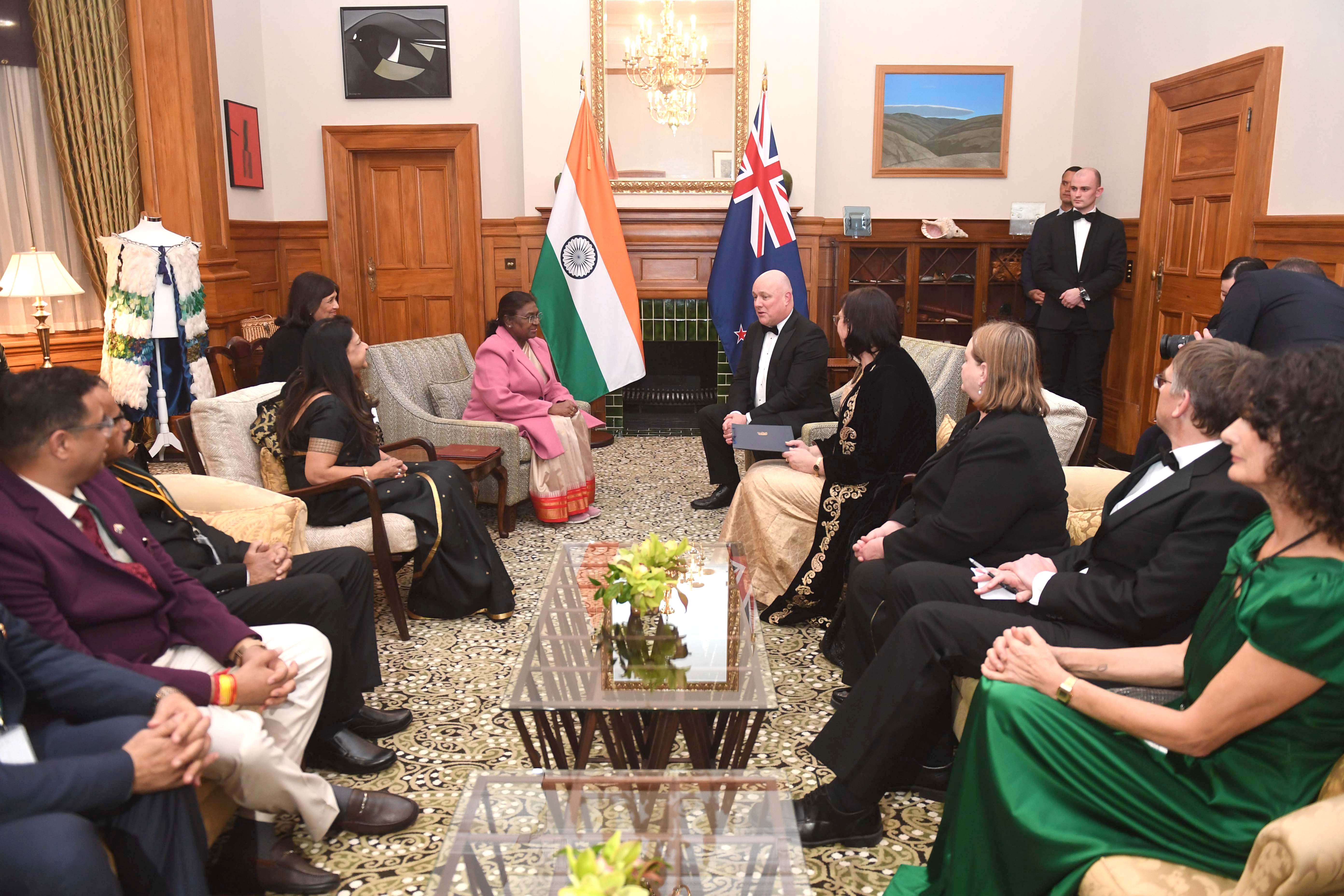 | Caption: | The Prime Minister of New Zealand, Rt. Hon. Christopher Luxon called on the President of India, Smt. Droupadi Murmu at Government House, Wellington , New Zealand on August 8, 2024. |