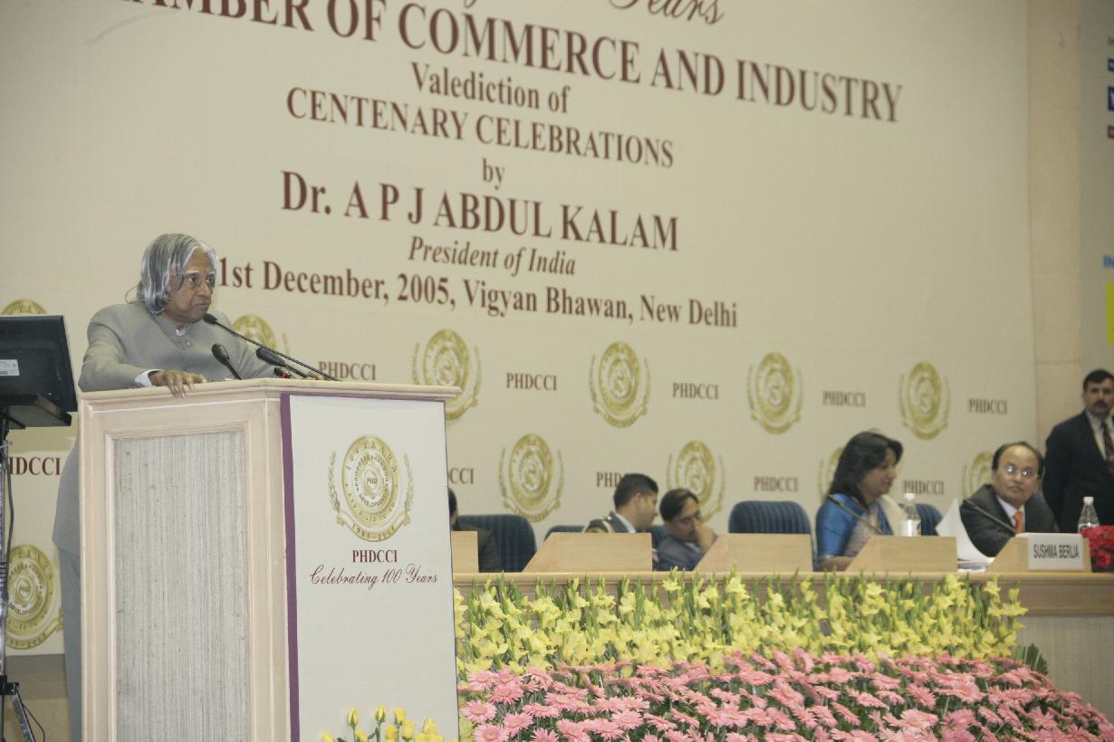 | Caption: | The President of India, Dr A P J Abdul Kalam at the Function "India - Vision 2020" being organized by the PHD Chamber of Commerce and Industry at Vigyan Bhavan New Delhi on Dec 21, 2005 |