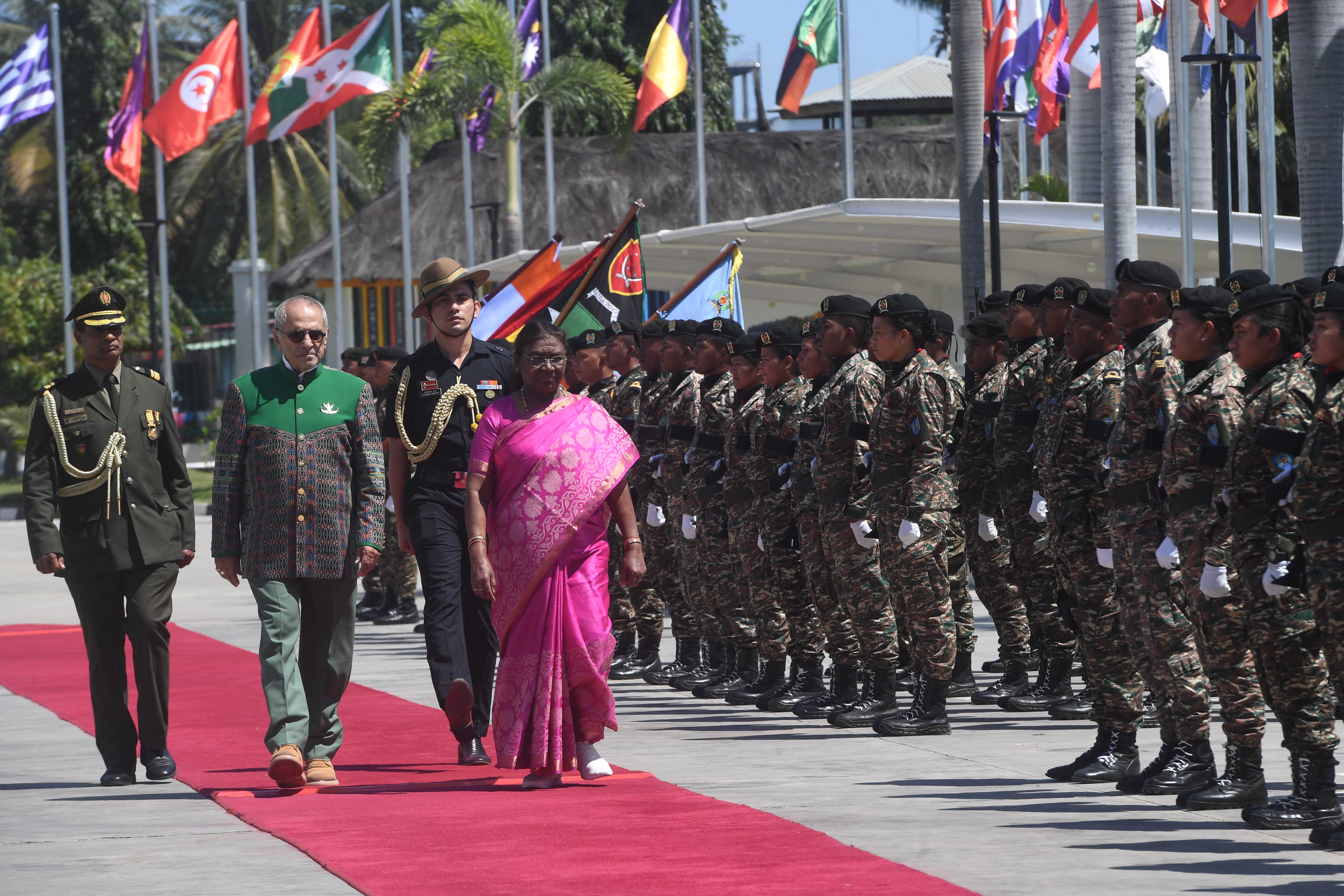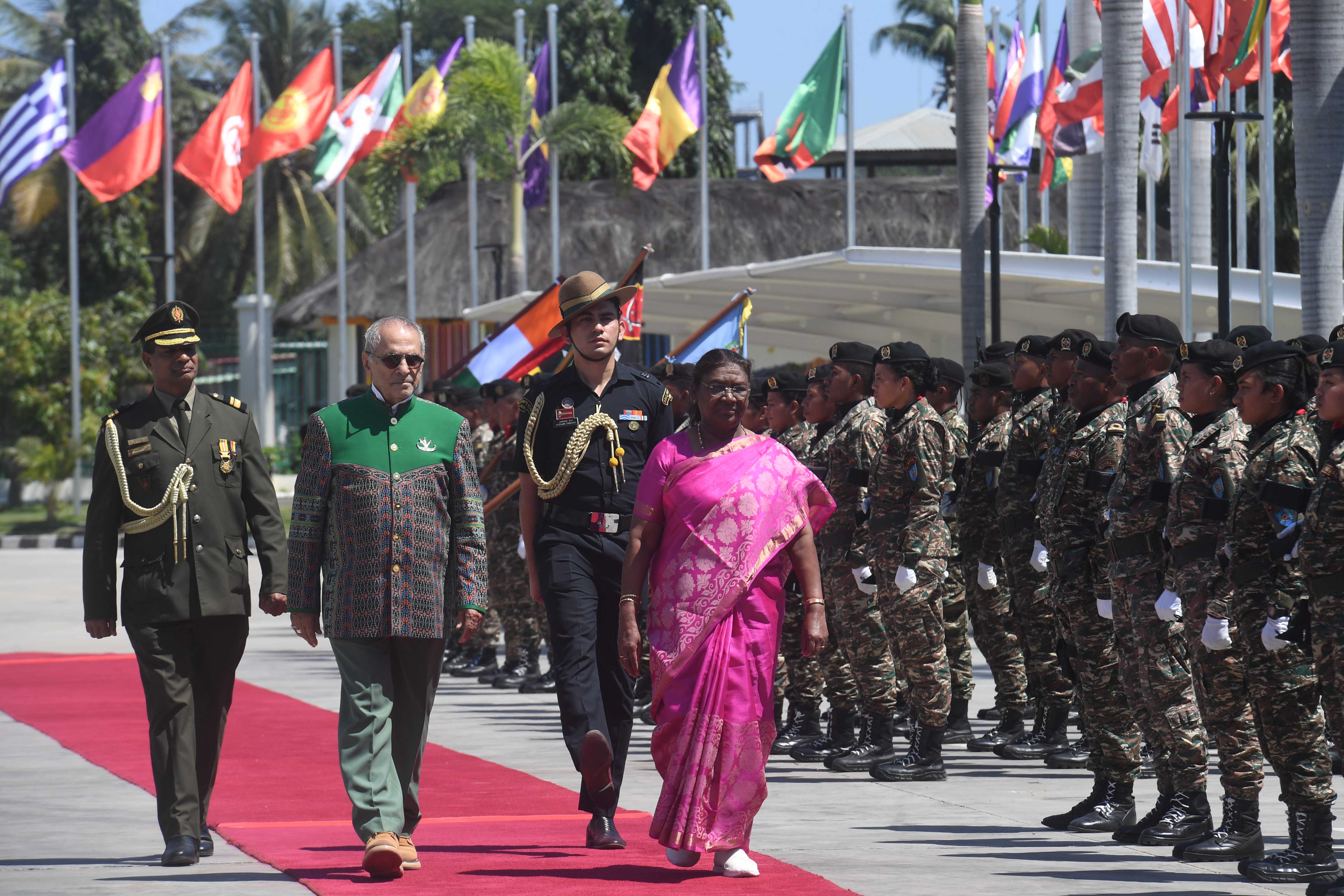 | Caption: | The President of India Smt. Draupadi Murmu accorded a ceremonial welcome and Guard of Honour at Rashtrapati Bhavan in Dili, Timor-Leste on August 10, 2024 |