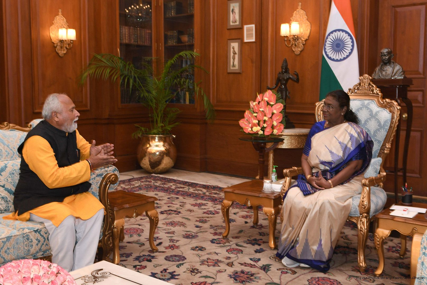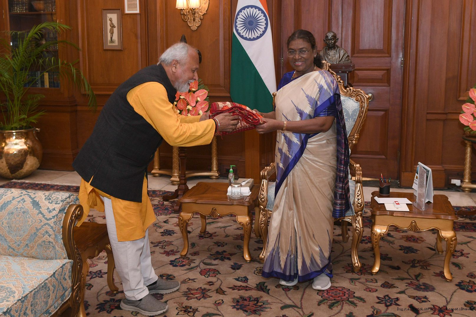 | Caption: | Prof. Raghavendra P. Tiwari, Vice-Chancellor, Central University of Punjab, Bathinda meeting with the President of India Smt. Droupadi Murmu at Rashtrapati Bhavan on August 13, 2024. |
