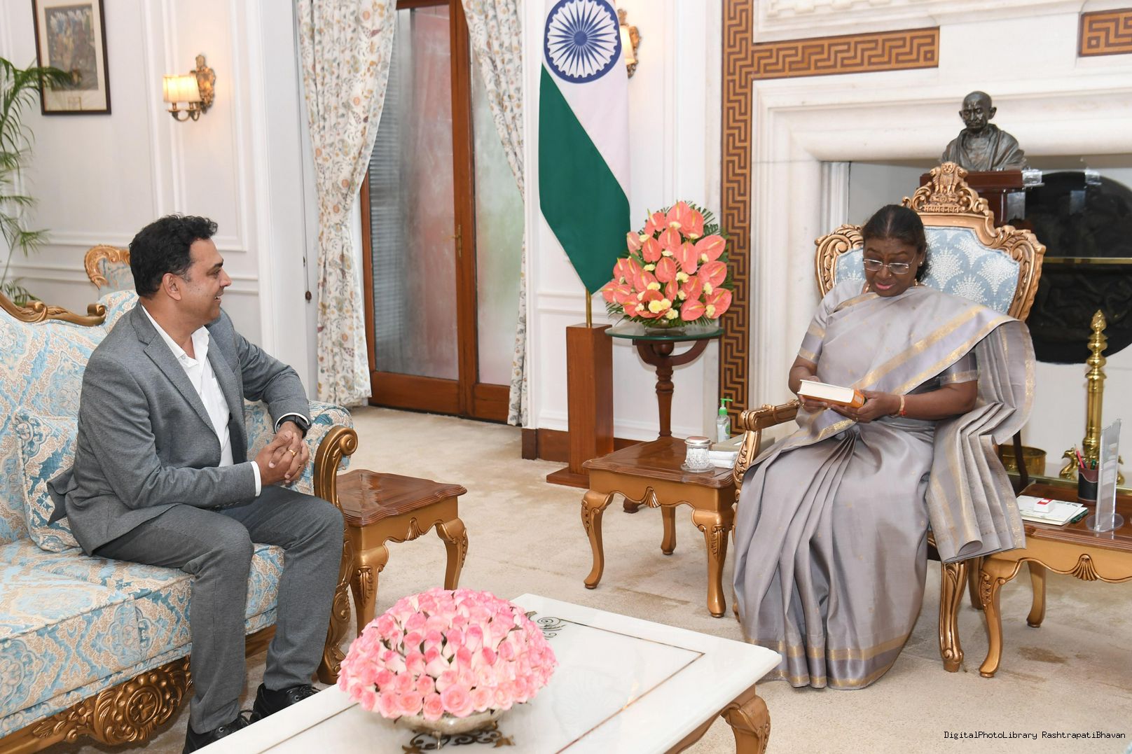 | Caption: | Dr. Krishnamurthy Subramanian,, Executive Director, International Monetary Fund (Former Chief Economic Advisor, Govt of India) meeting with the President of India Smt. Droupadi Murmu at Rashtrapati Bhavan on August 13, 2024. |
