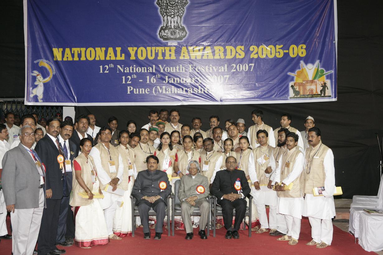 | Caption: | The President of India, Dr A P J Abdul Kalam presenting the National Youth Awards at Balewadi, Pune in Maharashtra on Jan 16, 2007 |
