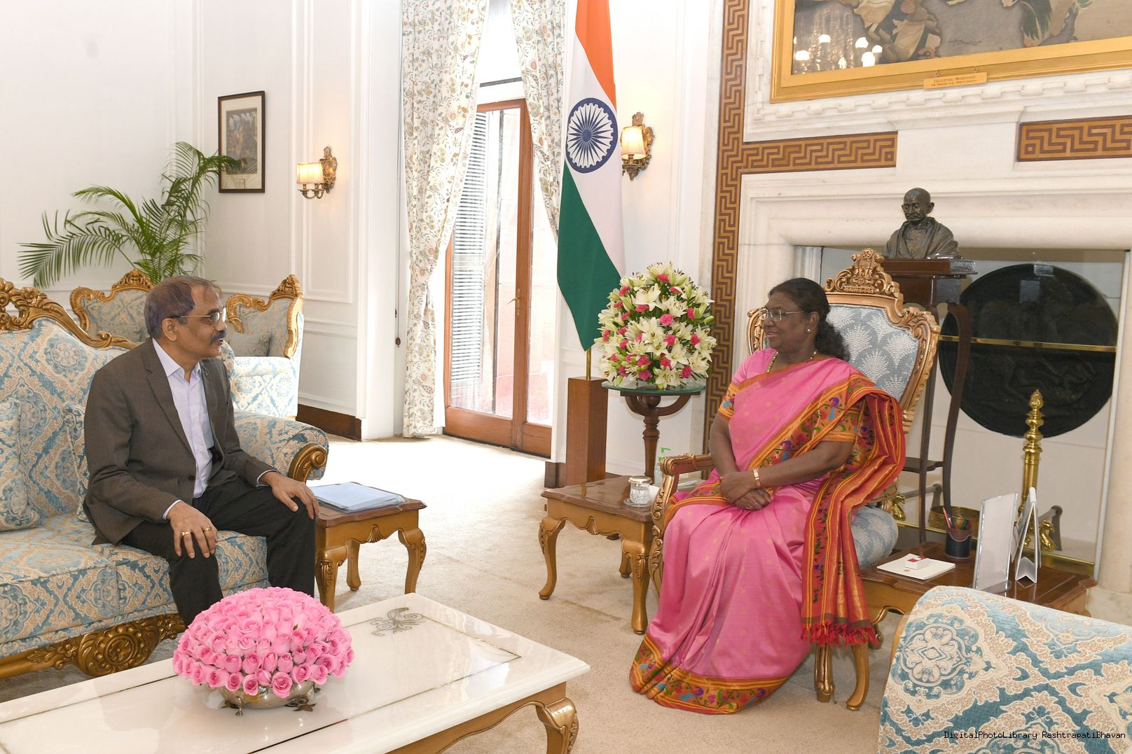 | Caption: | Shri Basanta K. Pradhan, Director Vice Chancellor, Indira Gandhi Institute of Development Research, Mumbai meeting with the President of India Smt. Droupadi Murmu at Rashtrapati Bhavan on August 14, 2024. |