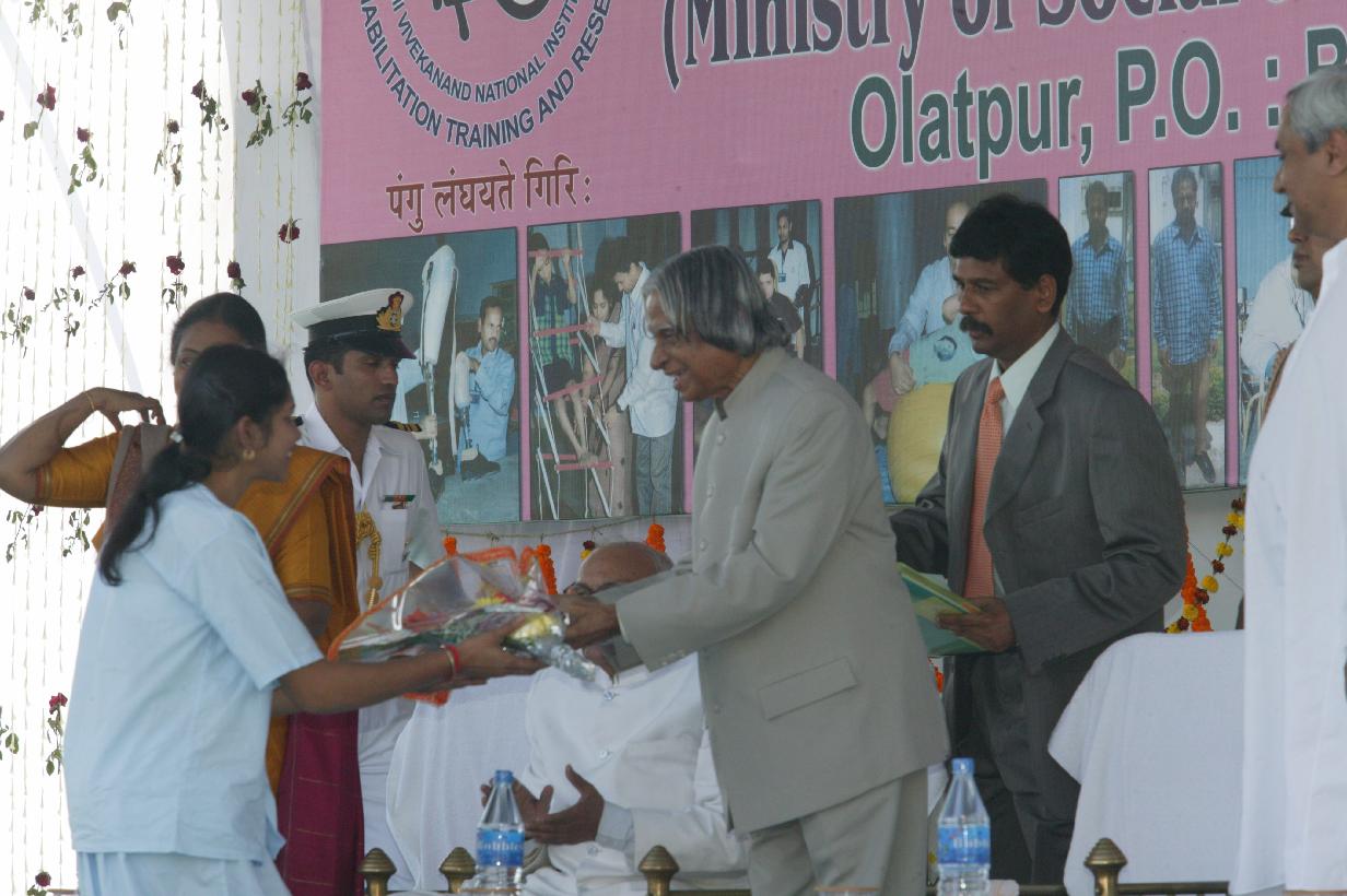 | Caption: | The President of India, Dr A P J Abdul Kalam at the National Institute of Rehabilitation Training at Bhubaneswar in Orisha on Dec 27, 2005 |