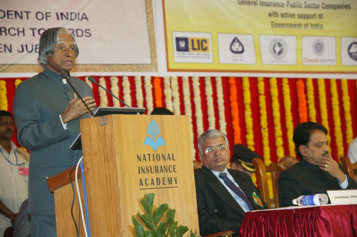 | Caption: | The President of India, Dr A P J Abdul Kalam during the Silver Jubilee Celebrations of National Insurance Academy at Pune in Maharashtra on Jan 17, 2007 |