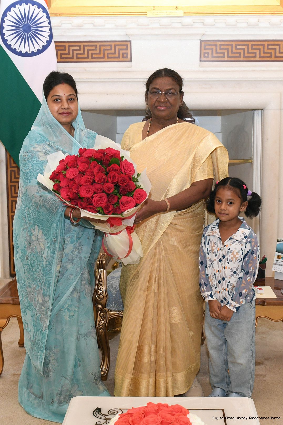 | Caption: | Smt. Himadri Singh, MP (Lok Sabha) from Shahdol Constituency along with daughter Baby Girisha Singh (5 years) meeting with the President of India Smt. Droupadi Murmu at Rashtrapati Bhavan on August 16, 2024. |