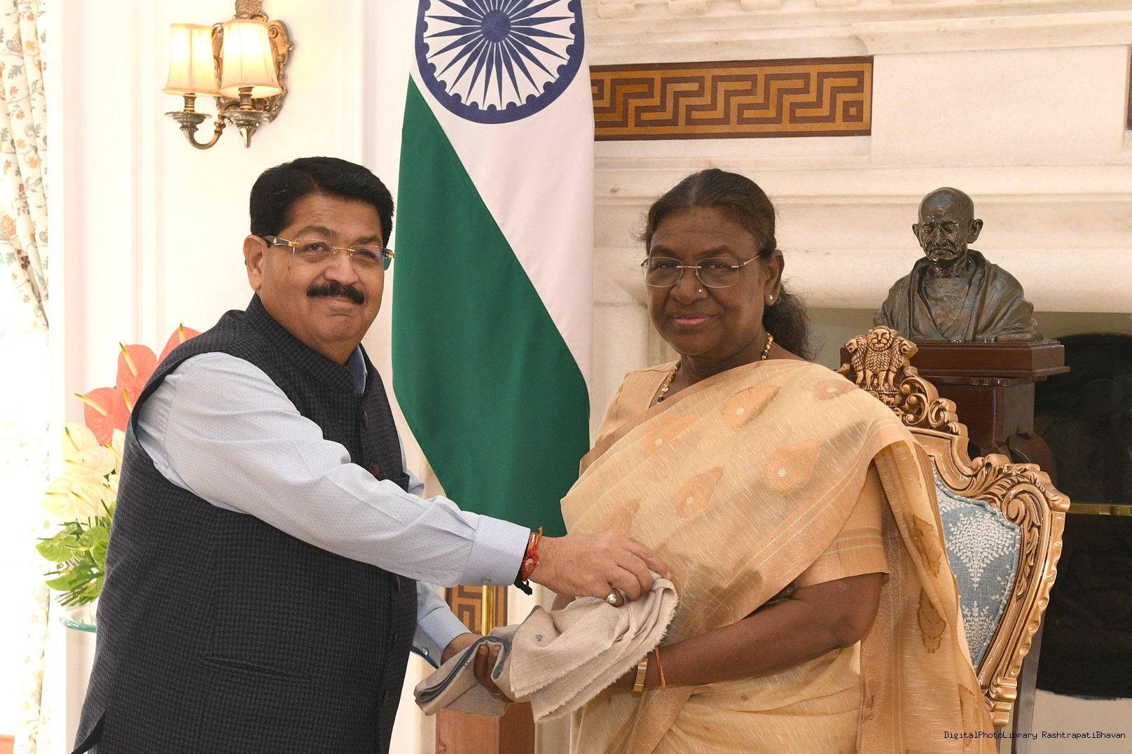 | Caption: | Shri Parimal Nathwani, Memnber of Parliament (Rajya Sabha) meeting with the President of India Smt. Droupadi Murmu at Rashtrapati Bhavan on August 16, 2024. |